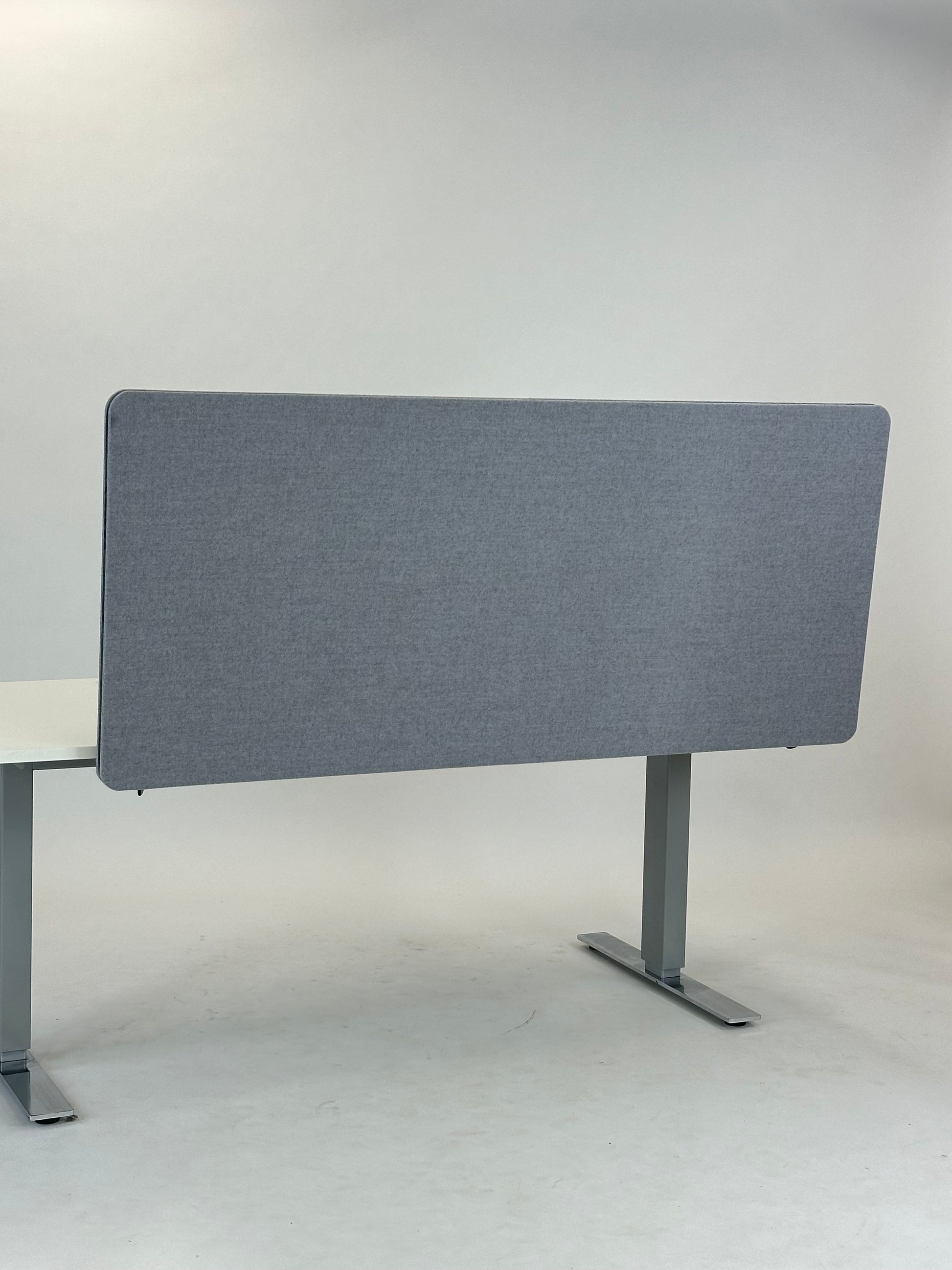 - Polstring: Skærmen er beklædt med et elegant, lysegråt stof, der harmonerer med forskellige kontorindretninger.
