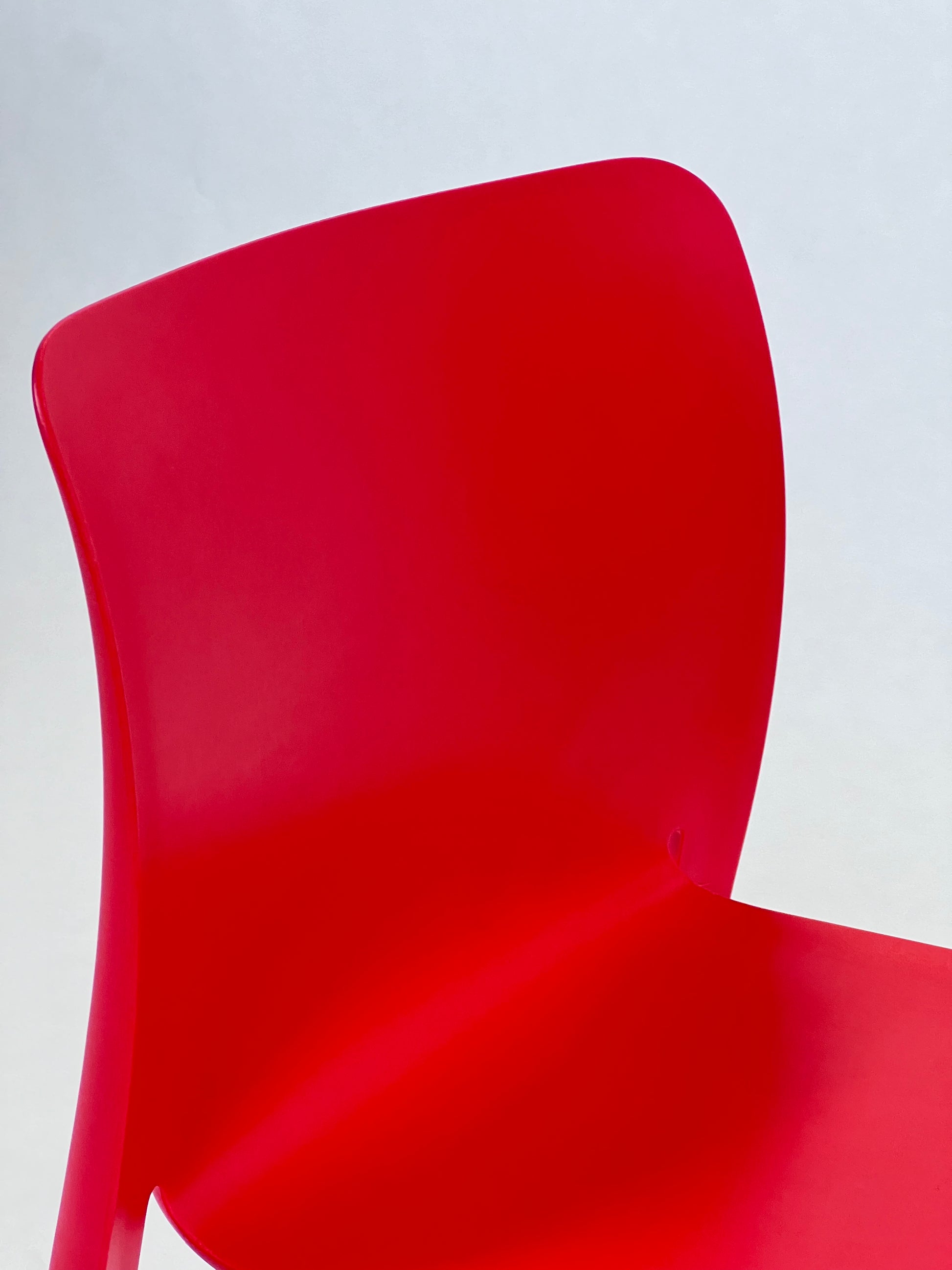 First konferencestolen fra Magis er et moderne og minimalistisk møbel, der kombinerer funktionalitet med et strømlinet design. Stolen er fremstillet af let, men robust polypropylen, hvilket gør den ideel til både indendørs og udendørs brug. Med sit enkle formsprog passer den perfekt ind i konferencerum, kantiner, mødelokaler og kreative arbejdsområder.