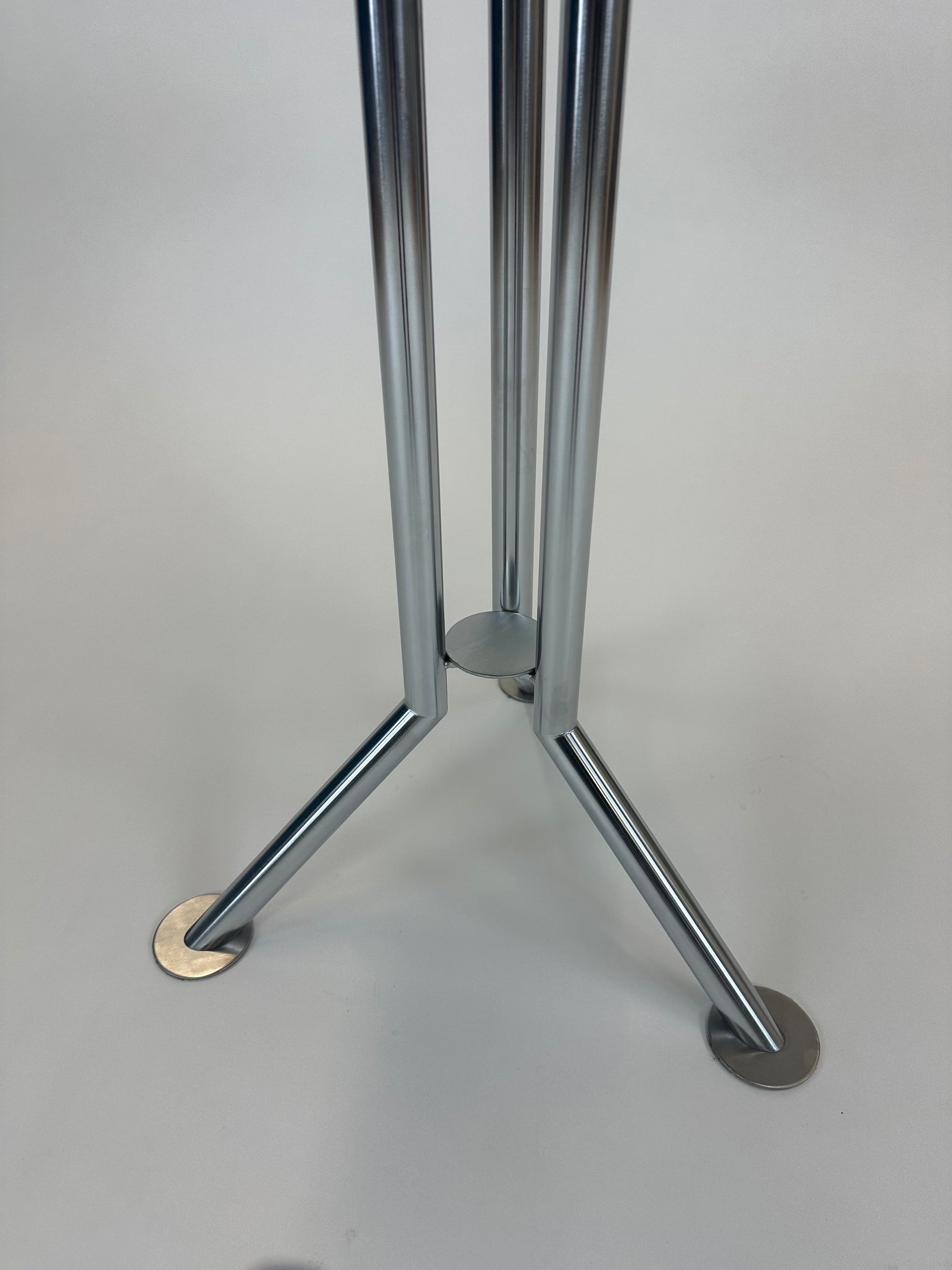 - Stel: Krombelagt stålstel med tre skråtstillede ben, som sikrer stabilitet og et let, elegant udtryk.