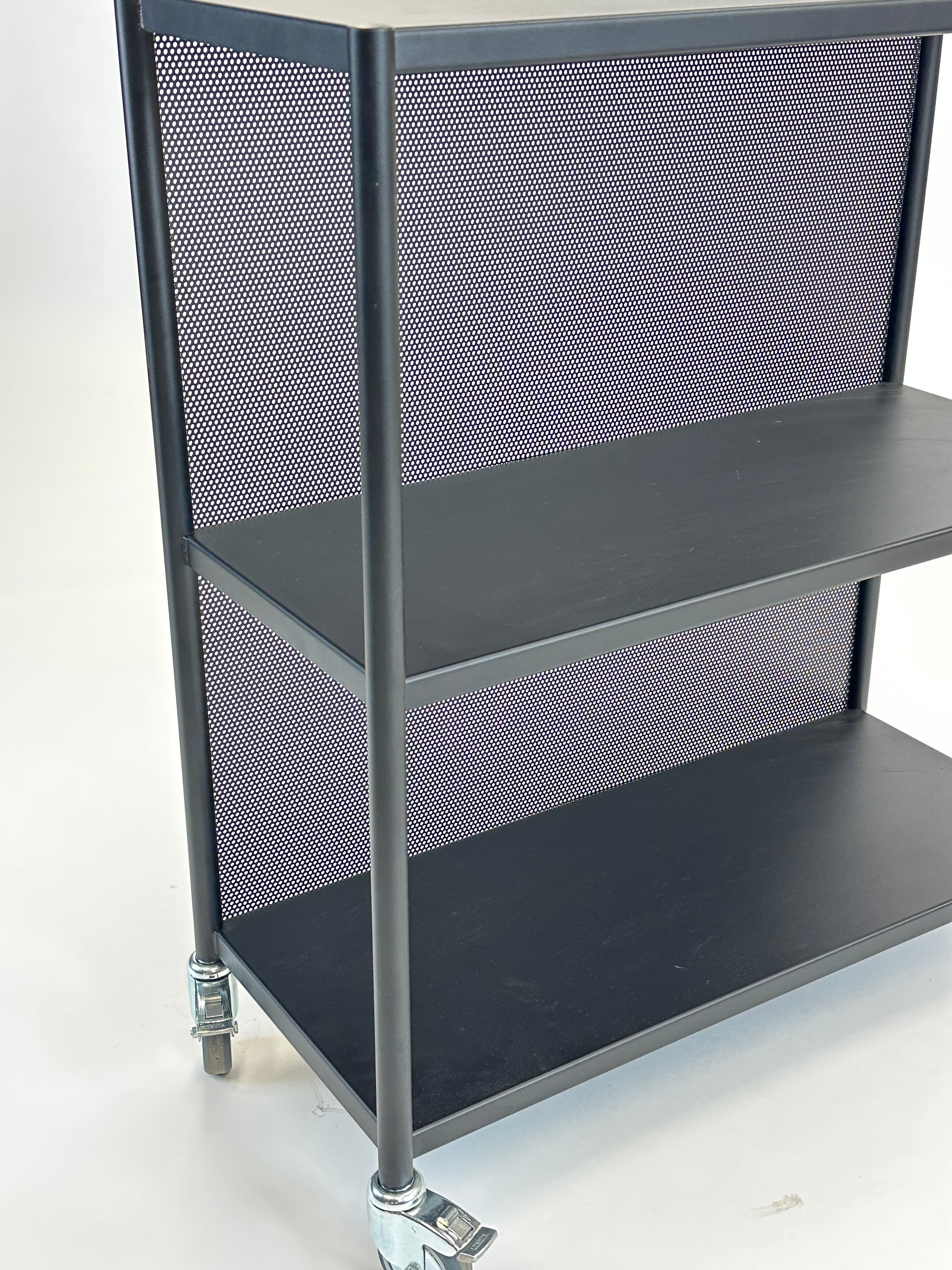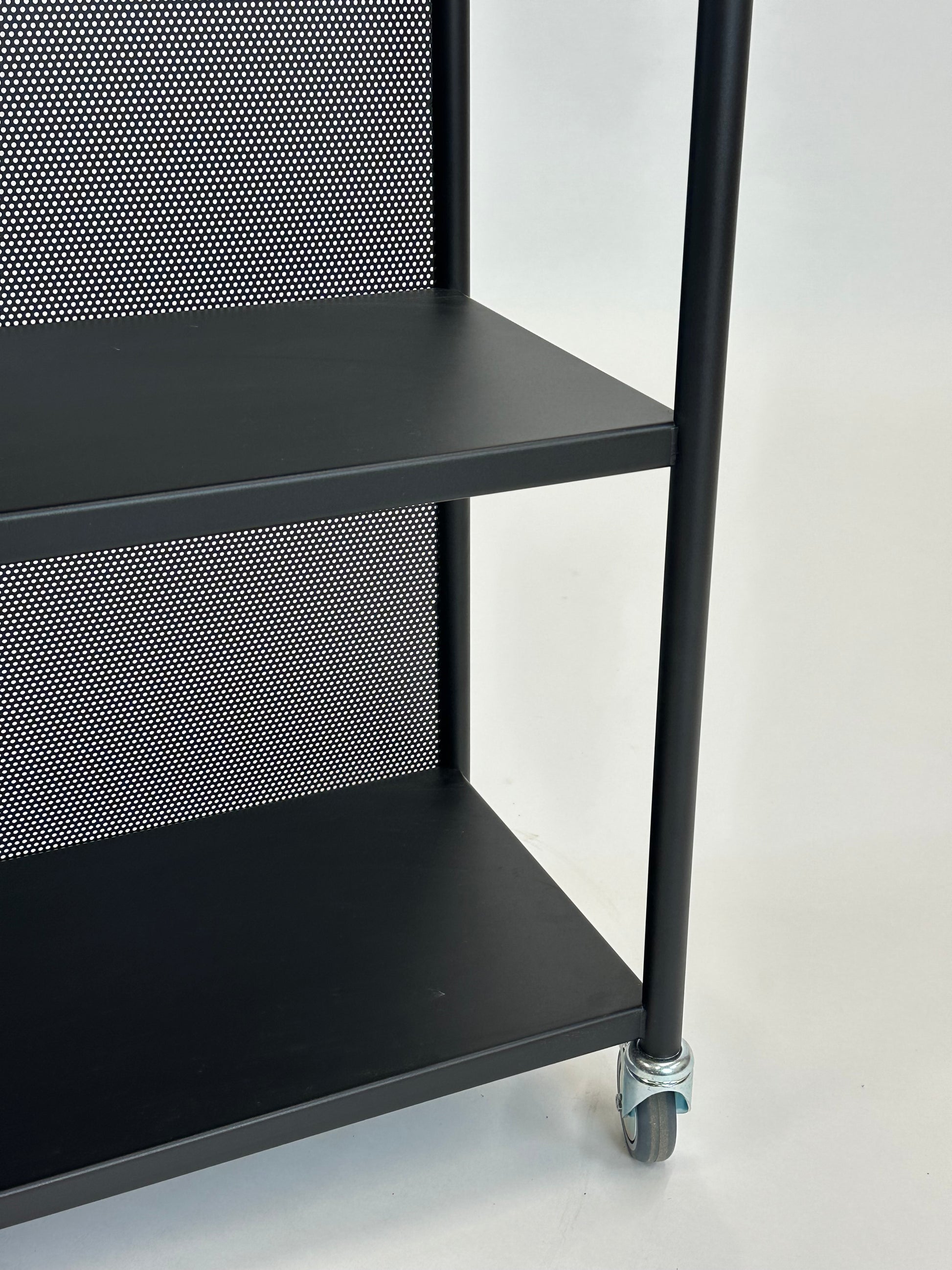 Arkiv Reolen fra Million er et stilsikkert og funktionelt opbevaringsmøbel, der kombinerer industriel æstetik med praktisk fleksibilitet. Reolen er fremstillet i sortlakeret stål med perforerede sidepaneler, der giver et let og moderne udtryk, samtidig med at konstruktionen er robust og holdbar.