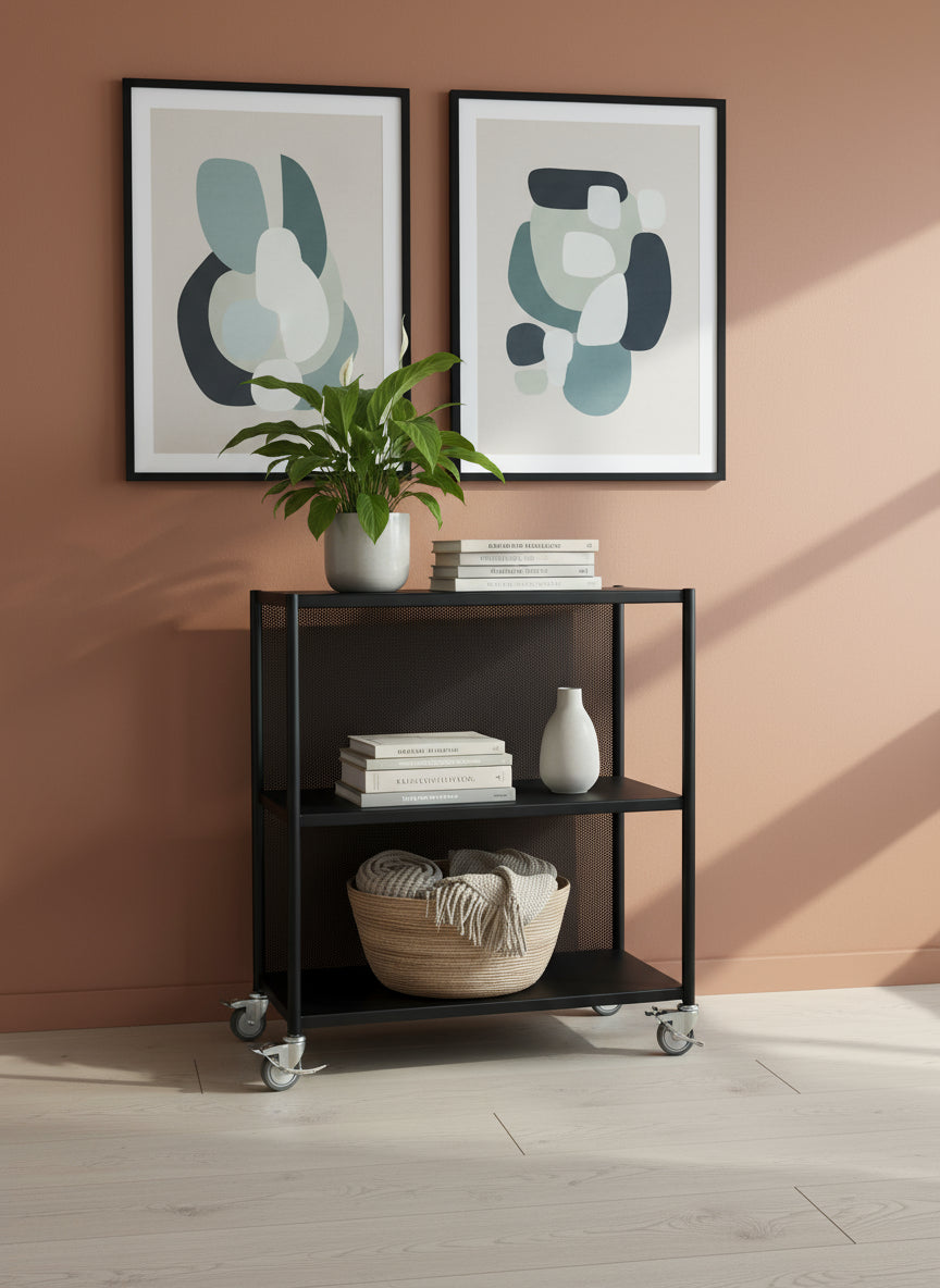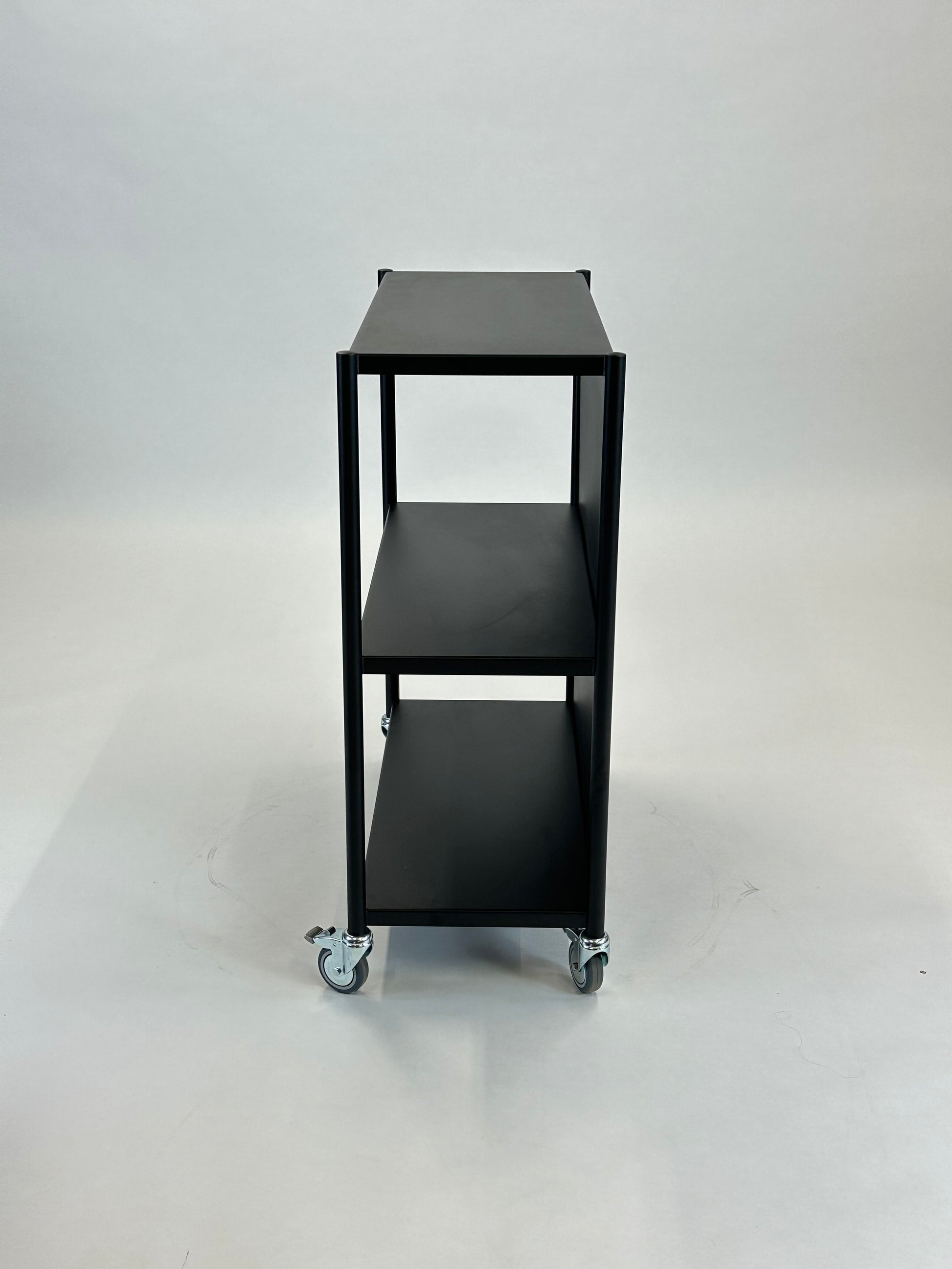 De tre rummelige hylder giver god plads til opbevaring af mapper, bøger eller kontorartikler, mens de fire hjul gør reolen nem at flytte rundt – perfekt til kontorer, kreative studier, receptionsområder eller hjemmearbejdspladser.