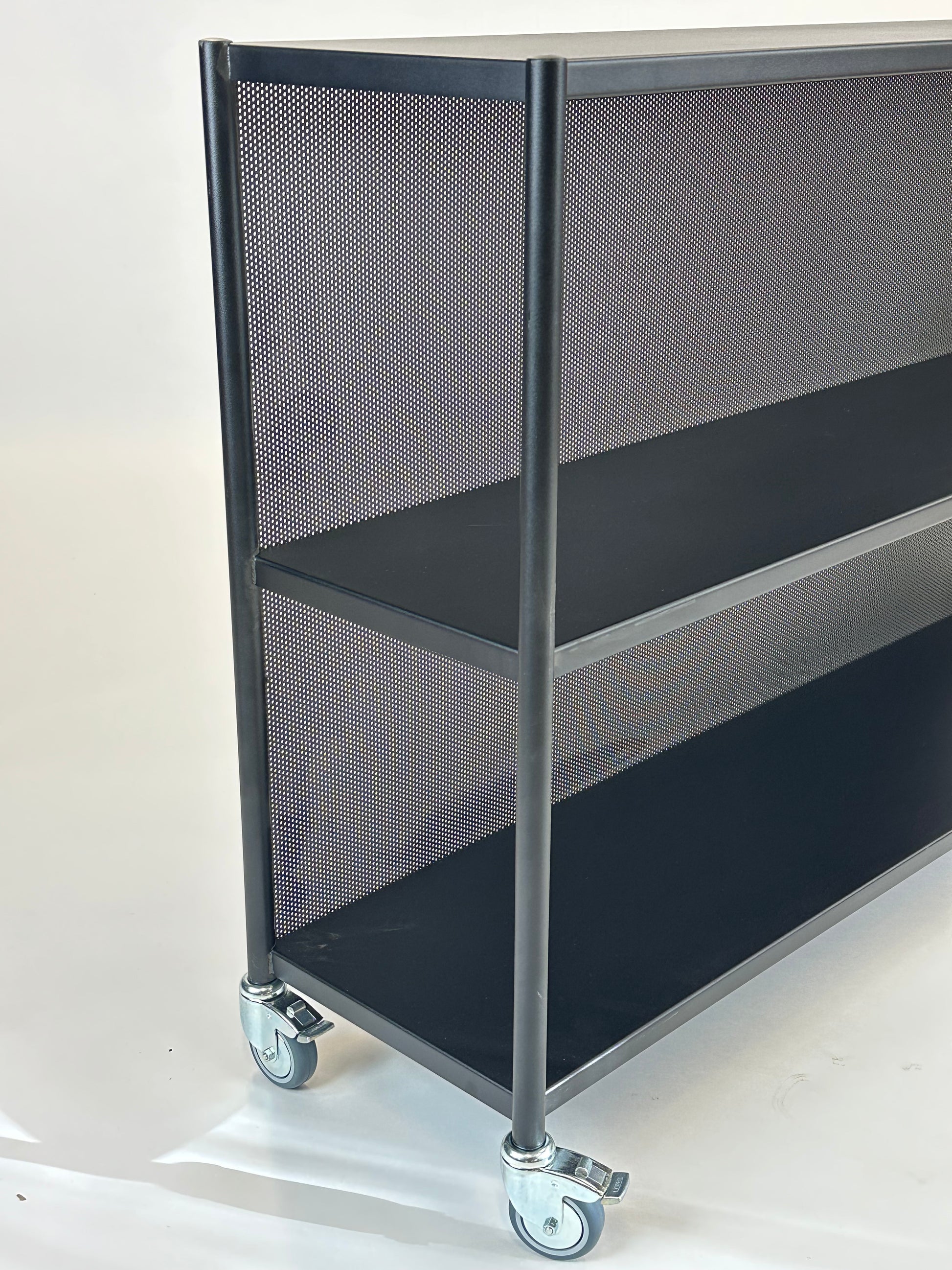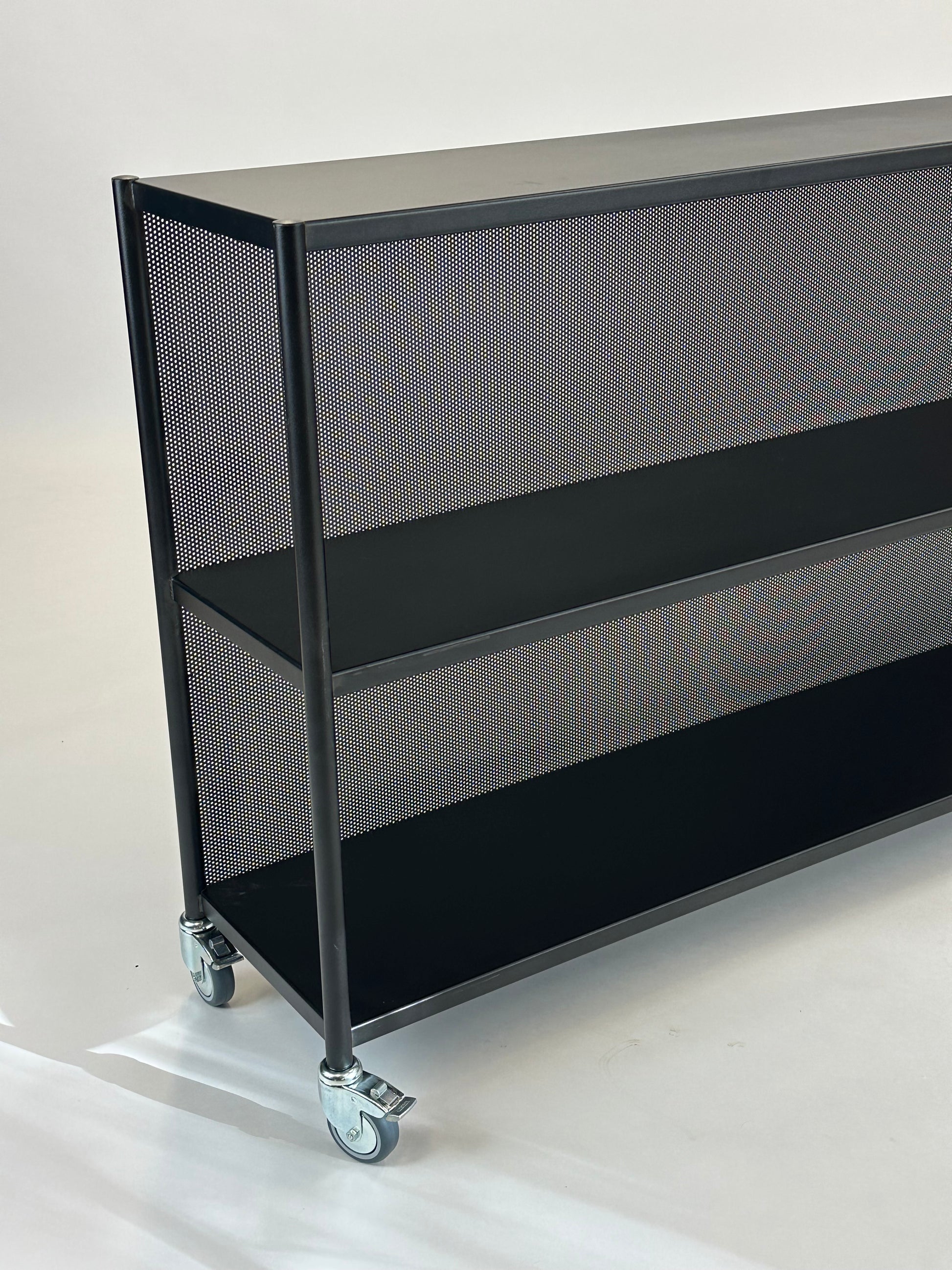 Arkiv Reolen fra Million kombinerer rå funktionalitet med raffineret skandinavisk minimalisme. Fremstillet i sortlakeret stål med perforerede sidepaneler, fremstår reolen både robust og visuelt let, hvilket gør den ideel til moderne kontor- og erhvervsmiljøer.