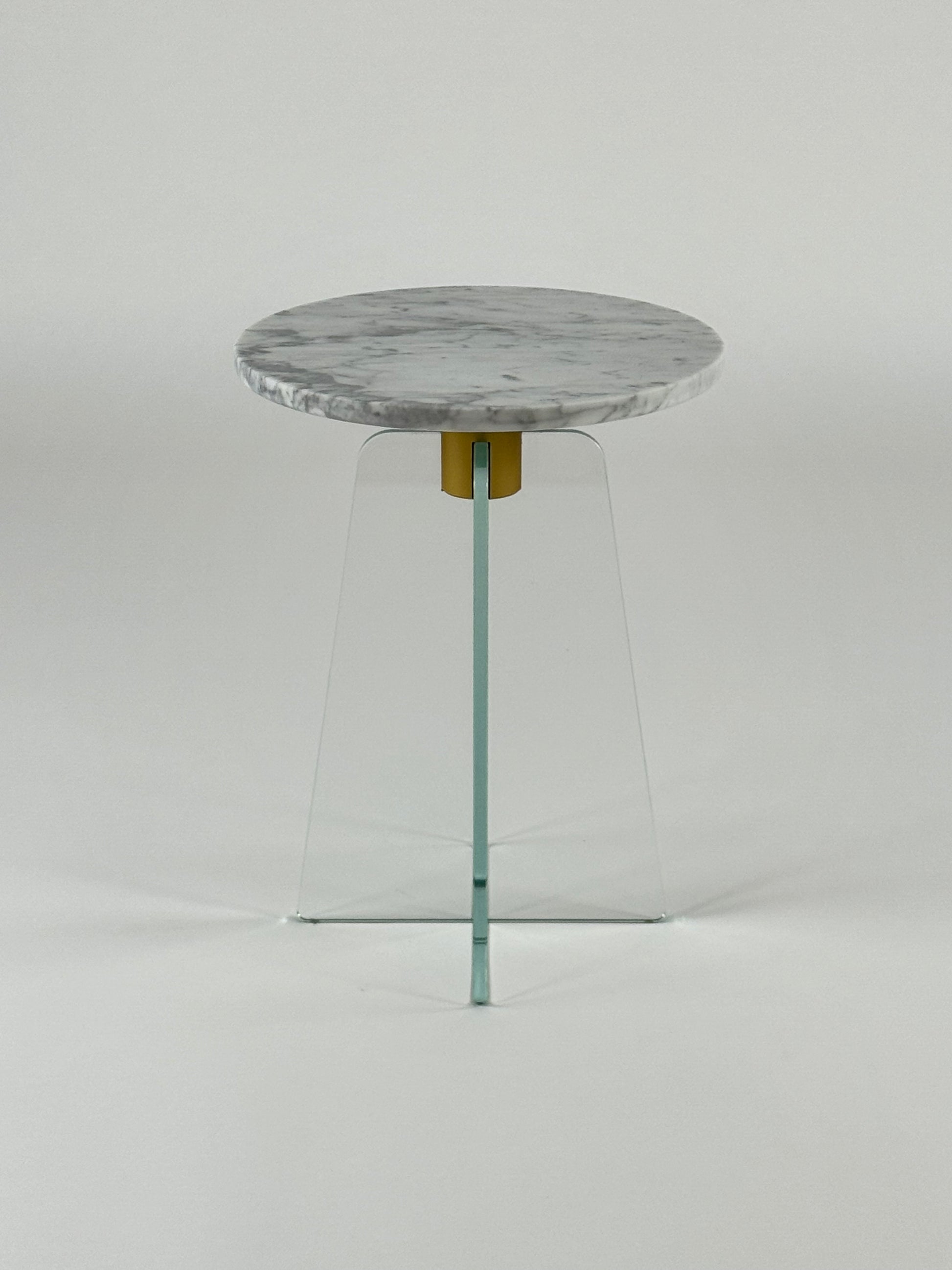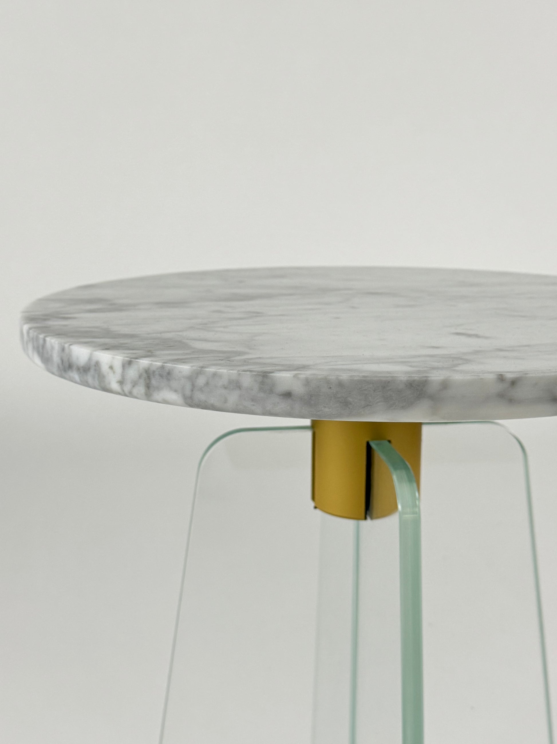 Cupola sofabordet fra Million er et markant designmøbel, der kombinerer luksuriøse materialer med et let og elegant udtryk. Million er kendt for deres moderne tilgang til klassisk skandinavisk design, og Cupola-serien er et tydeligt eksempel på dette. Bordets runde bordplade i hvid marmor tilfører tyngde og eksklusivitet, mens det slanke understel i transparent glas skaber en næsten svævende effekt. Den gyldne samling mellem top og stel tilfører en raffineret detalje, der understreger bordets eksklusive karakter.