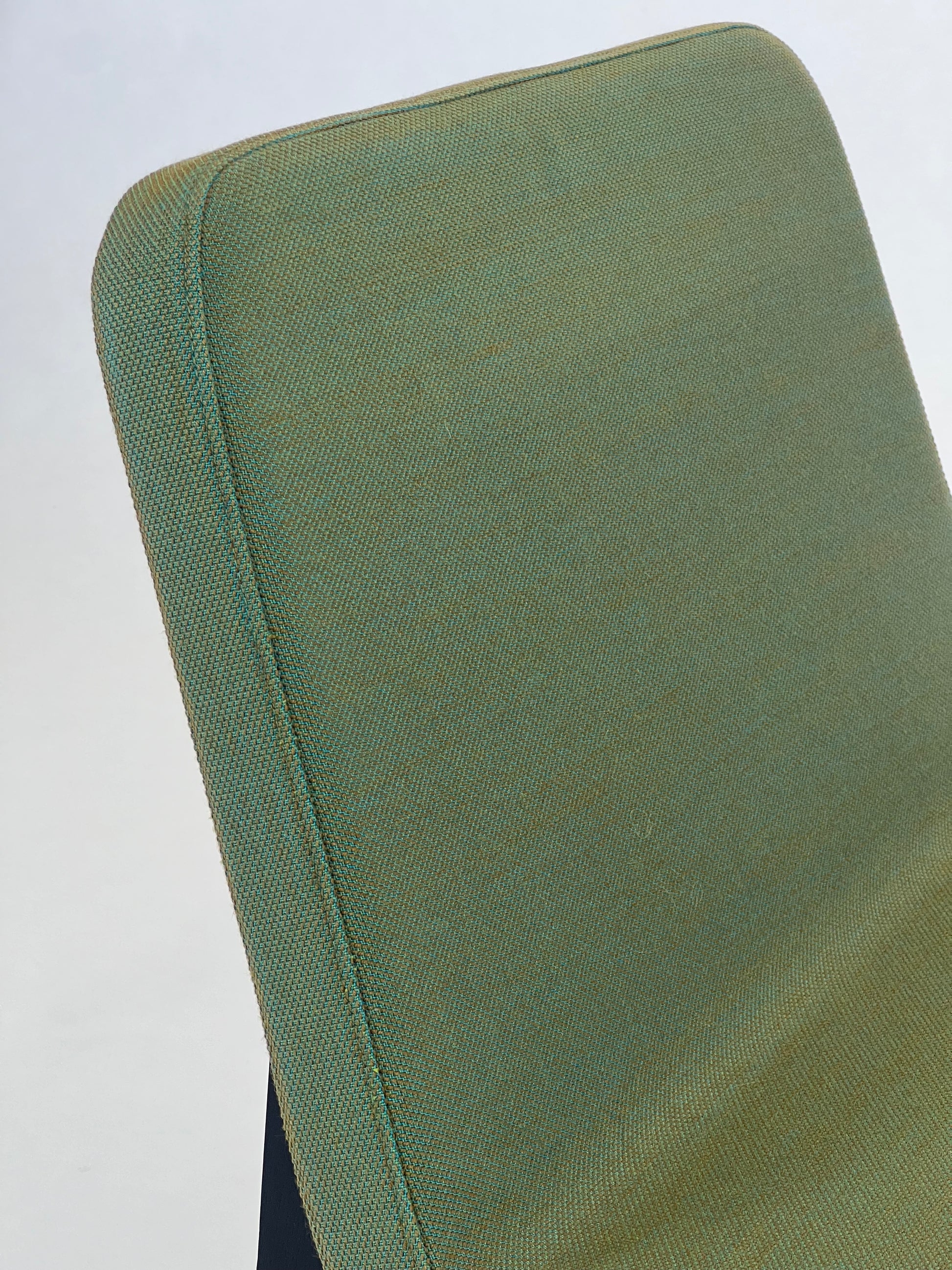 Stolens polstring er lavet i flere farver, som giver en perlemor effekt, hvor stolen skifter i Grønne og brune nuancer - se close-up billeder