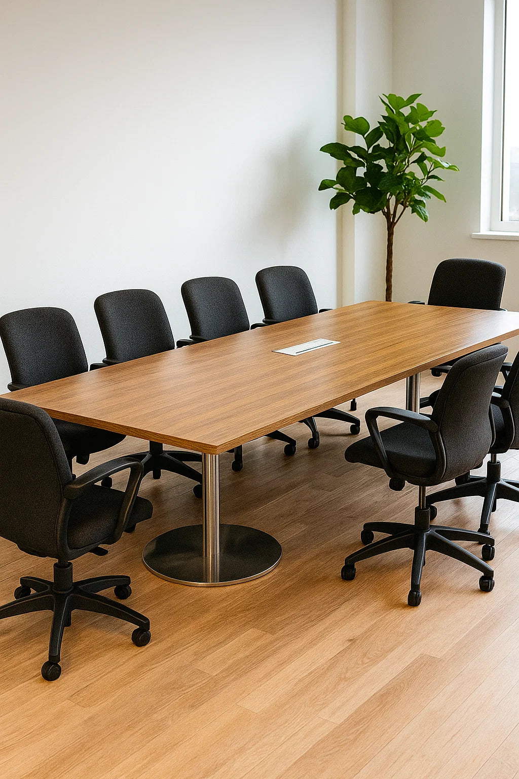 Det rummelige design gør det muligt at samle mange mennesker omkring bordet – perfekt til møder, workshops, konferencer eller samarbejdsområder.