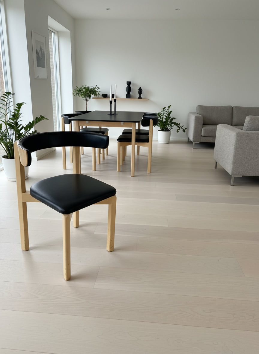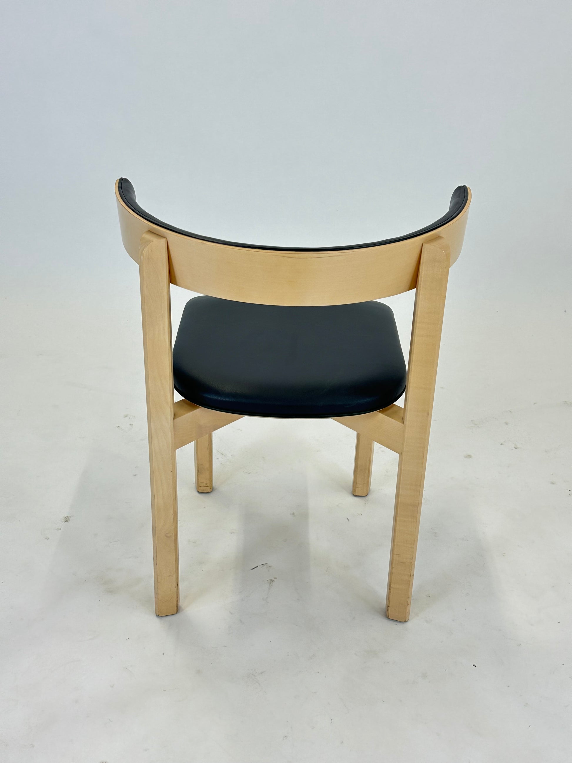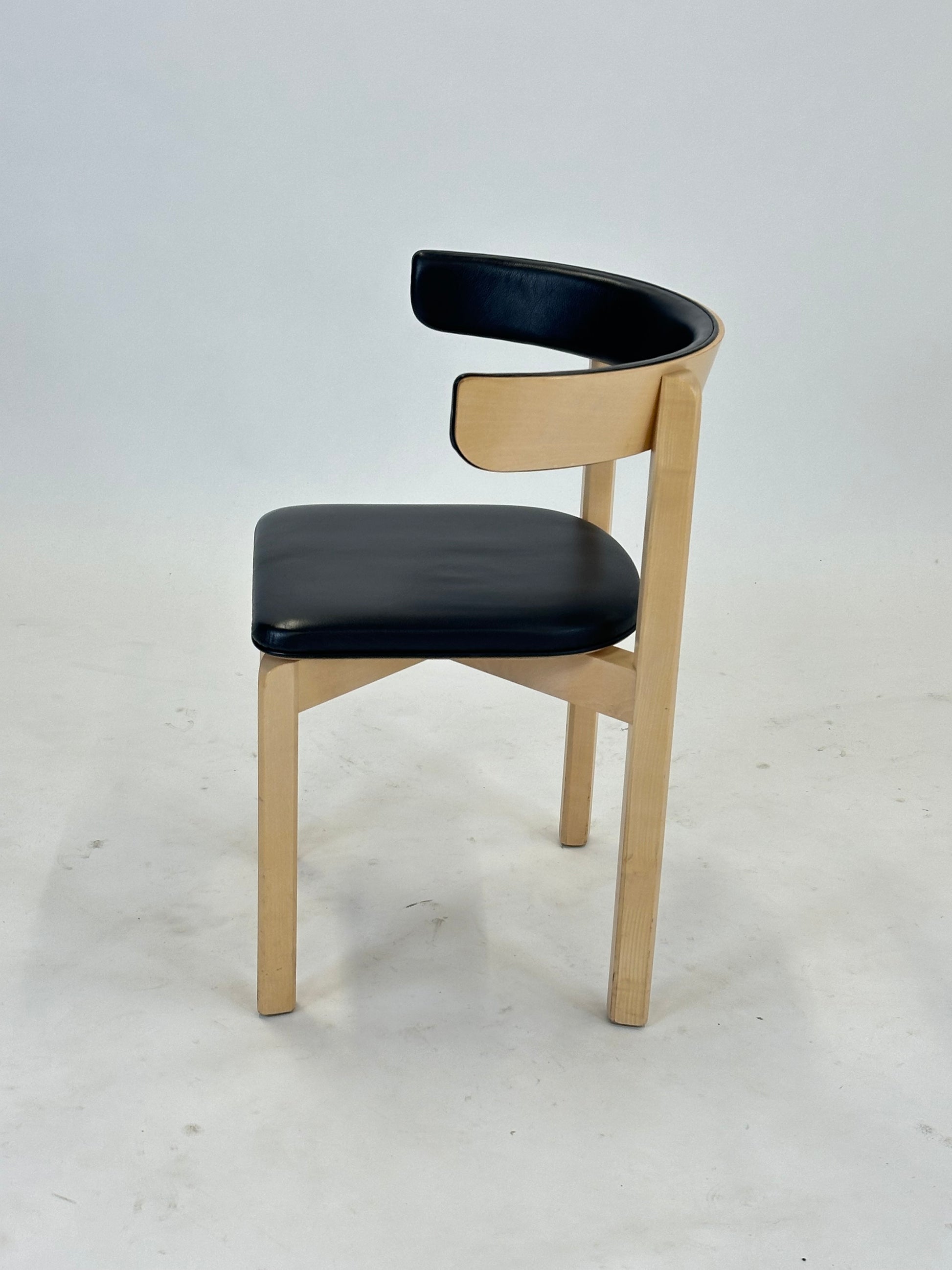 Det karakteristiske, buede ryglæn giver både visuel lethed og god støtte, mens den solide trækonstruktion vidner om dansk håndværk i højeste kvalitet. Kombinationen af naturlige materialer og minimalistisk form gør Model 5 velegnet til både mødelokaler, spiseområder og kontorer, hvor komfort og design går hånd i hånd.