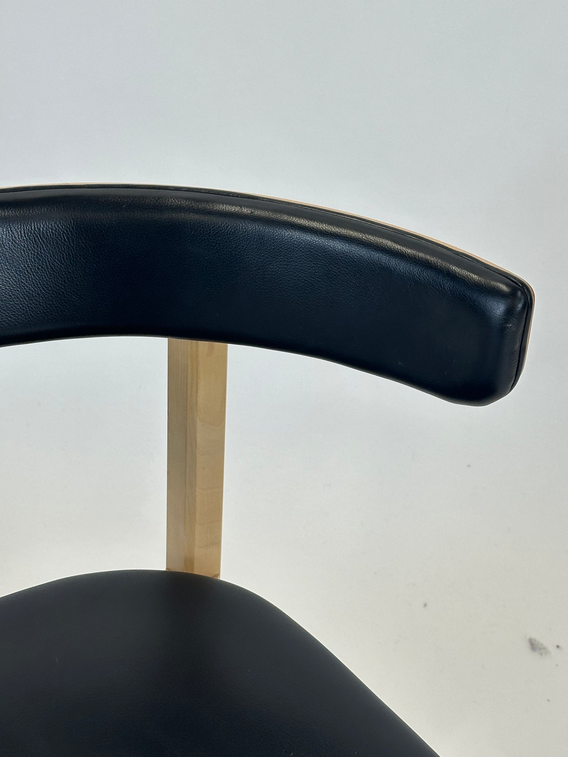 Model 5 er en ikonisk stol designet af Jørgen Gammelgaard for Sorø Møbelfabrik, der forener enkelhed, funktion og tidløs skandinavisk æstetik. Stolen er udført i lyst træ med sort polstret sæde og ryglæn i læder, som tilsammen skaber et smukt og klassisk udtryk.