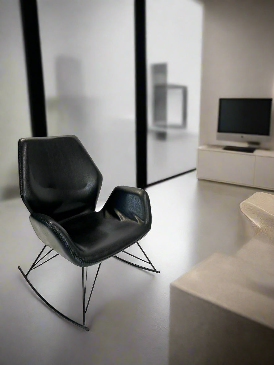 Denne moderne gyngestol kombinerer et elegant, stilrent design med høj komfort og er ideel til loungeområder, receptioner, kreative kontorer og private hjem. Stolen giver en afslappende siddeoplevelse og tilfører samtidig et moderne udtryk til enhver indretning.
