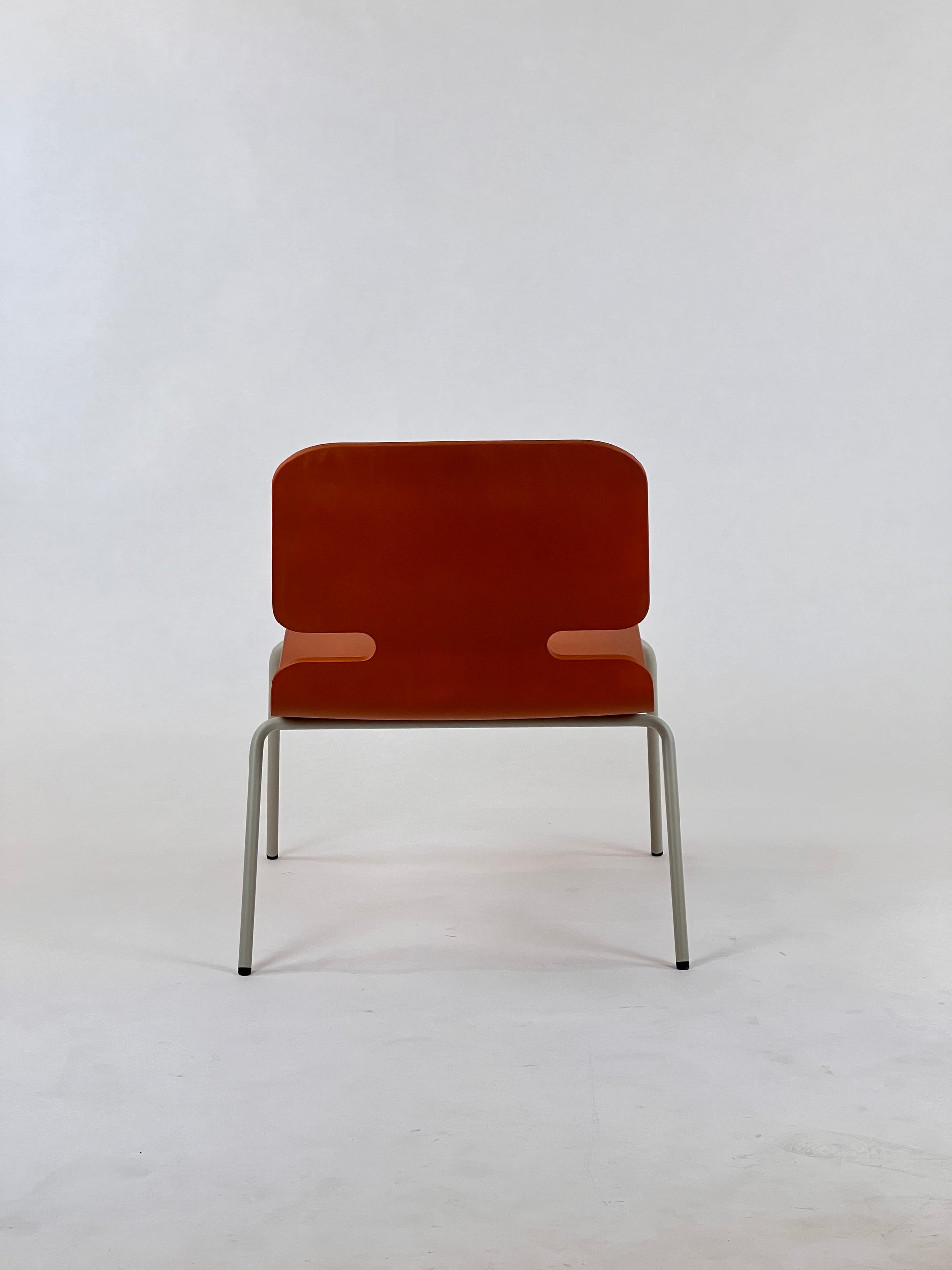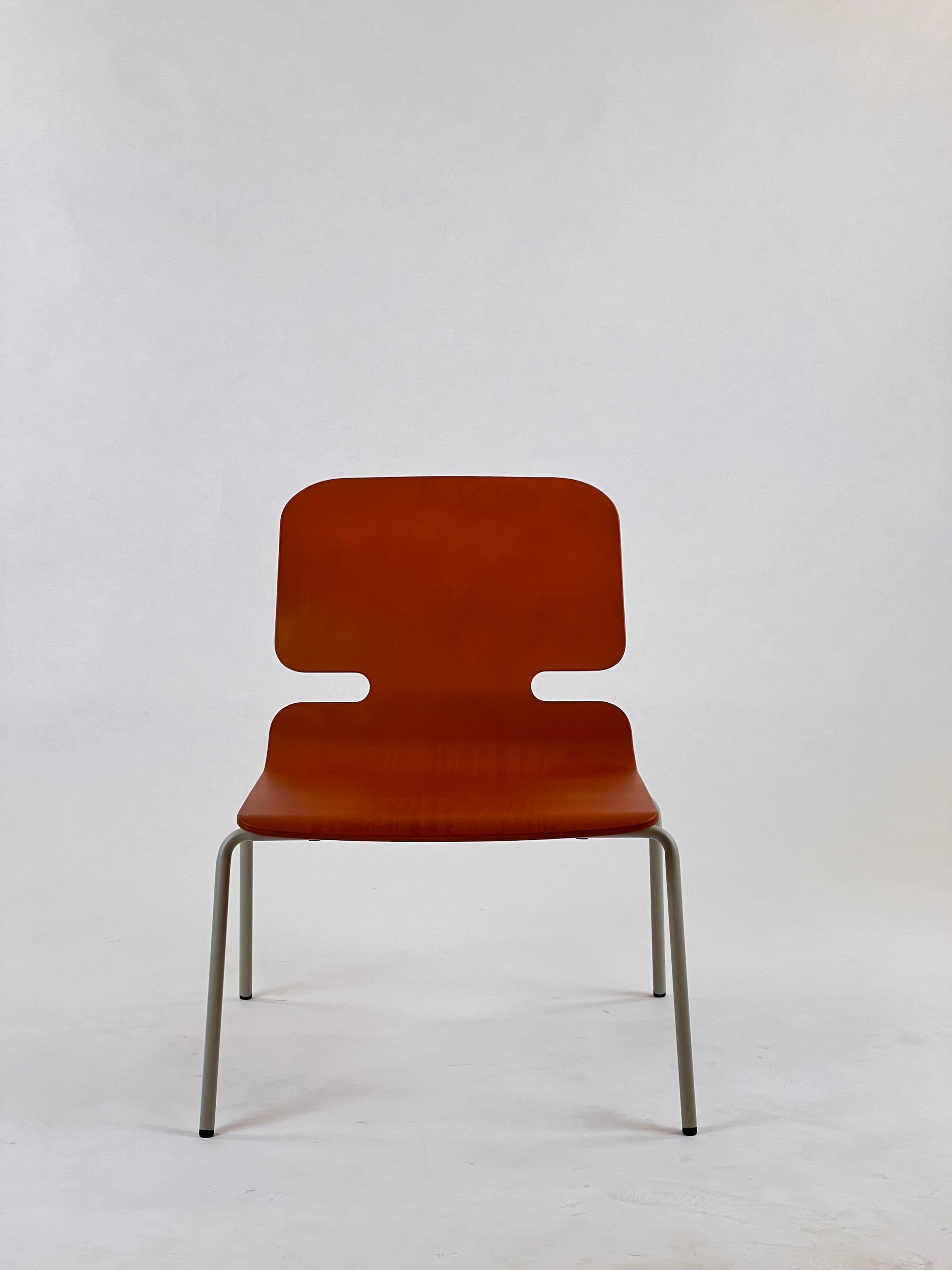 - Sæde og Ryglæn: Fremstillet af formpresset træ med en dyb orange træstruktur, der tilføjer varme og elegance til ethvert rum.