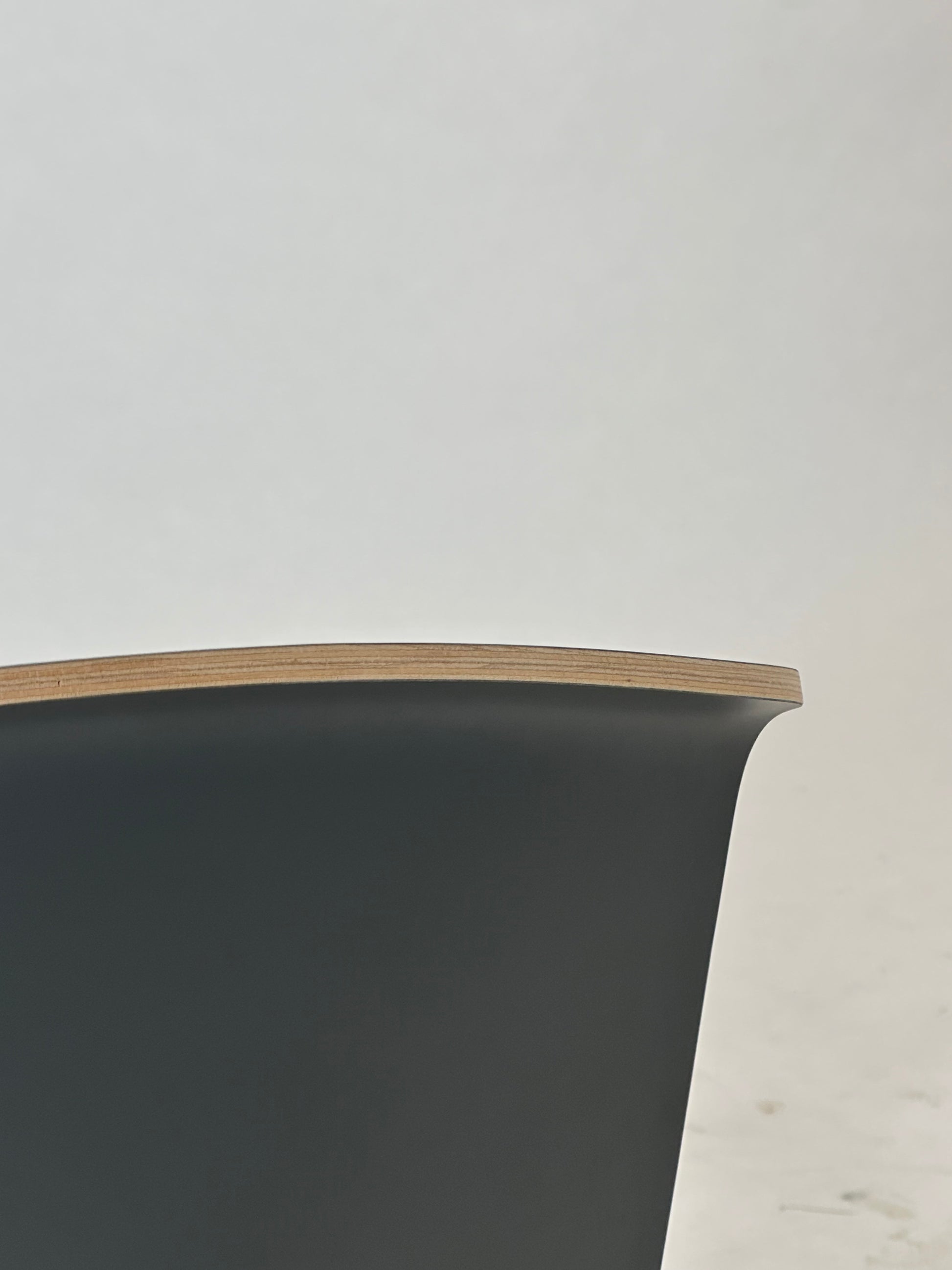 - Sæde og ryg: Formpresset finer med en sort laminat-finish, der giver et moderne og stilrent udtryk.