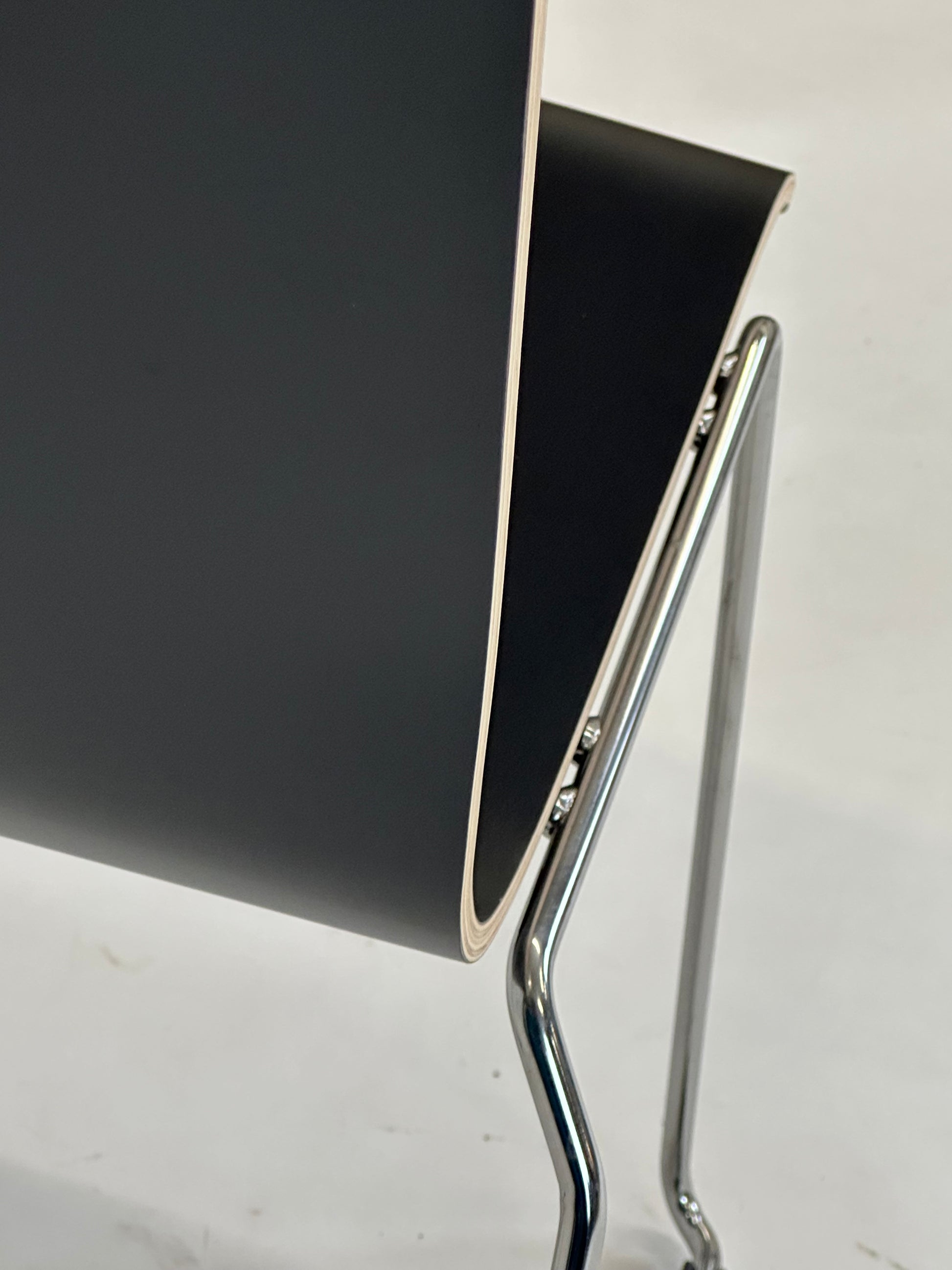 - Sæde og ryg: Formpresset finer med en sort laminat-finish, der giver et moderne og stilrent udtryk.