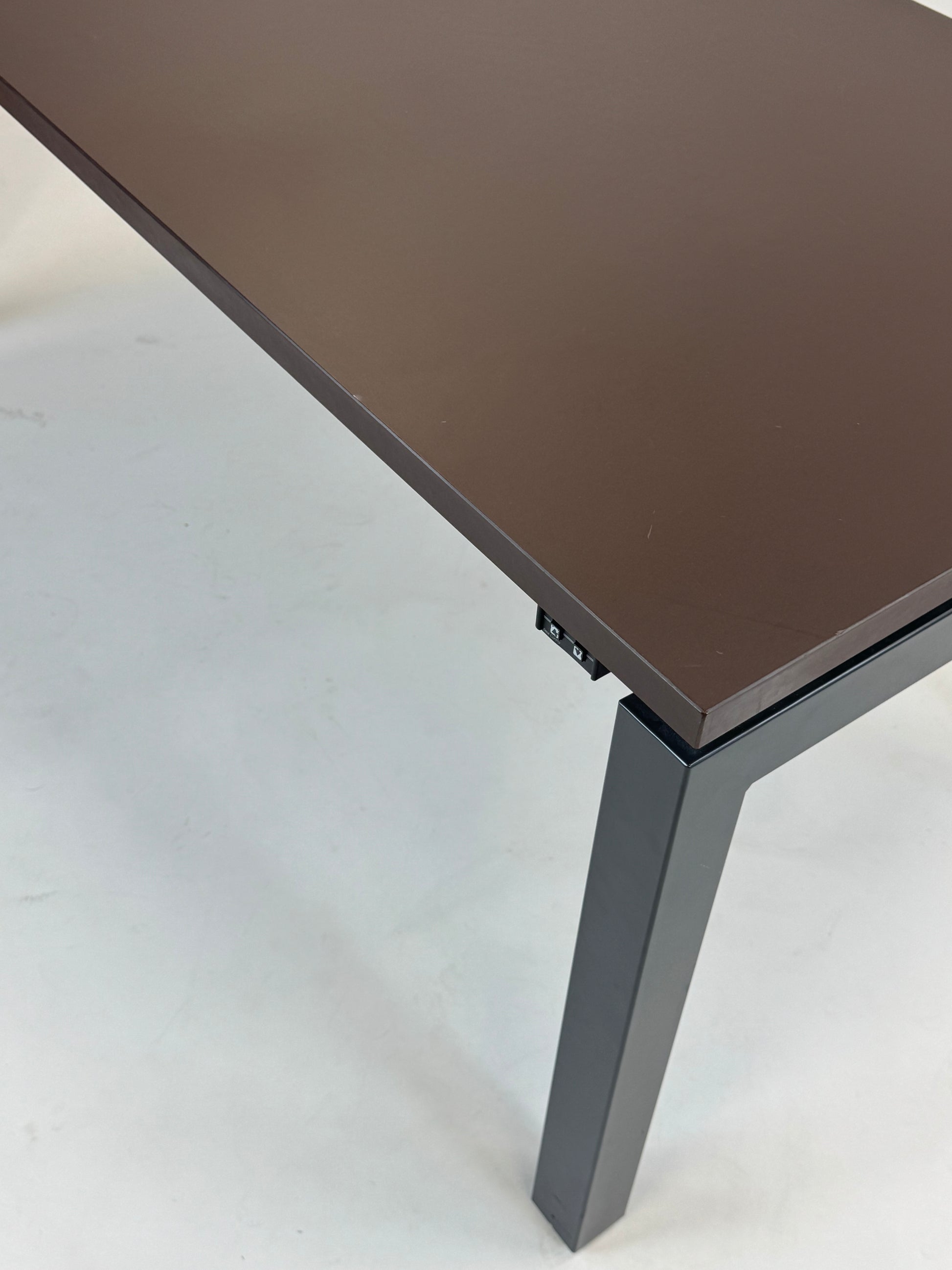 Den smukke brune bordplade tilføjer varme og karakter til rummet, mens det robuste stel sikrer stabilitet og lang levetid – selv ved daglig brug. PO40 er et alsidigt arbejdsbord, der giver dig en komfortabel og inspirerende arbejdsplads, uanset om det anvendes i et moderne kontorlandskab, et hjemmekontor eller et kreativt studie.