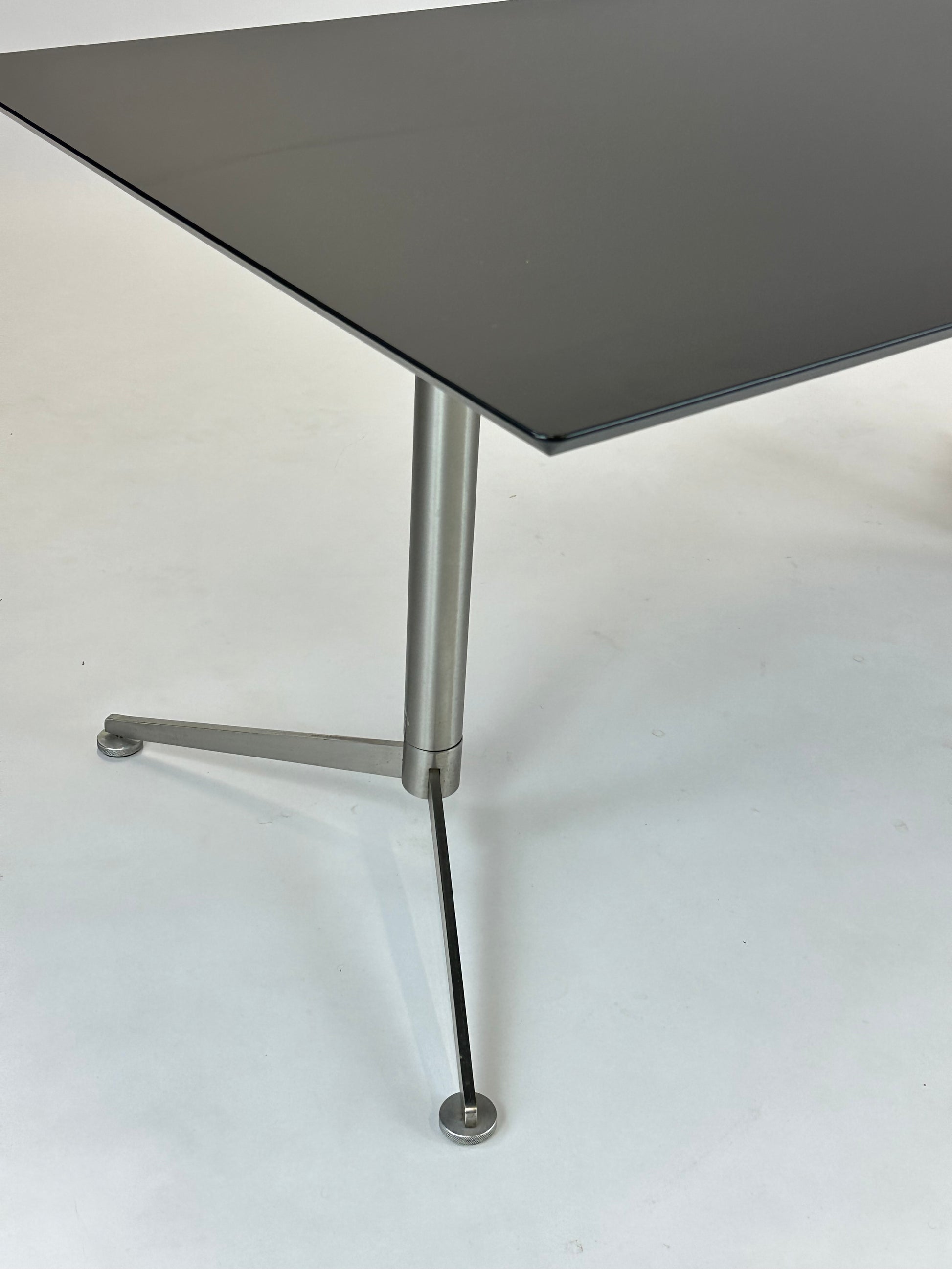 Dette Spinal mødebord fra Paustian kombinerer tidløst design med en opdateret bordplade, der tilføjer et moderne og stilrent udtryk. Paustians ikoniske stel i børstet stål sikrer en stabil og elegant base, mens den nye bordplade giver bordet et frisk og eksklusivt look. Perfekt til mødelokaler, kontormiljøer og hjemmearbejdspladser.
