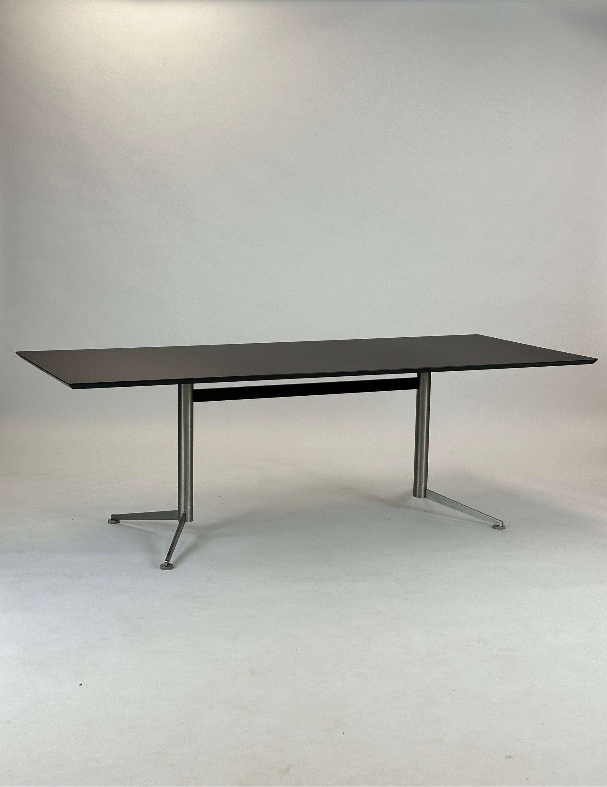 Dette Spinal mødebord fra Paustian kombinerer tidløst design med en opdateret bordplade, der tilføjer et moderne og stilrent udtryk. Paustians ikoniske stel i børstet stål sikrer en stabil og elegant base, mens den nye bordplade giver bordet et frisk og eksklusivt look. Perfekt til mødelokaler, kontormiljøer og hjemmearbejdspladser.
