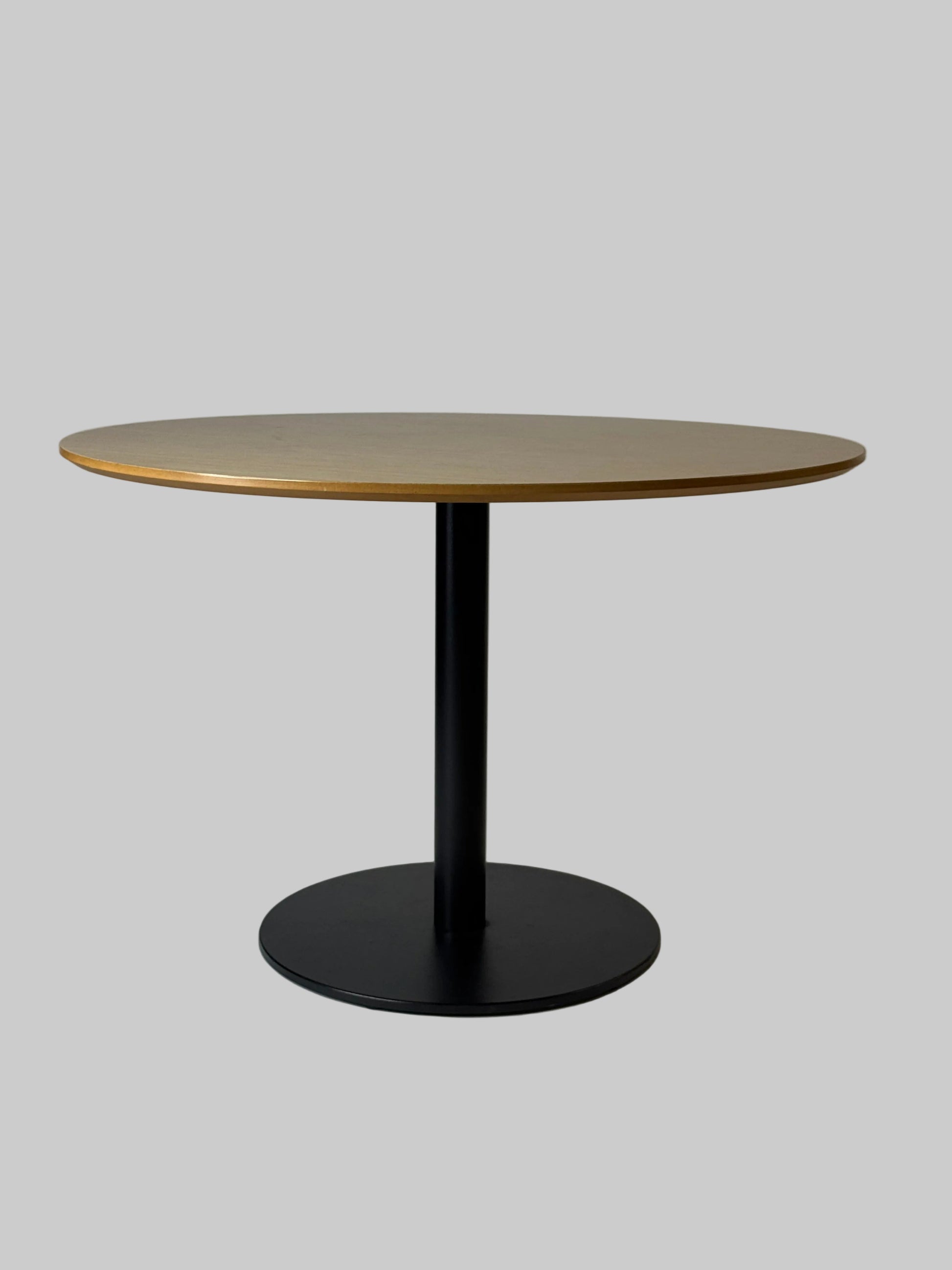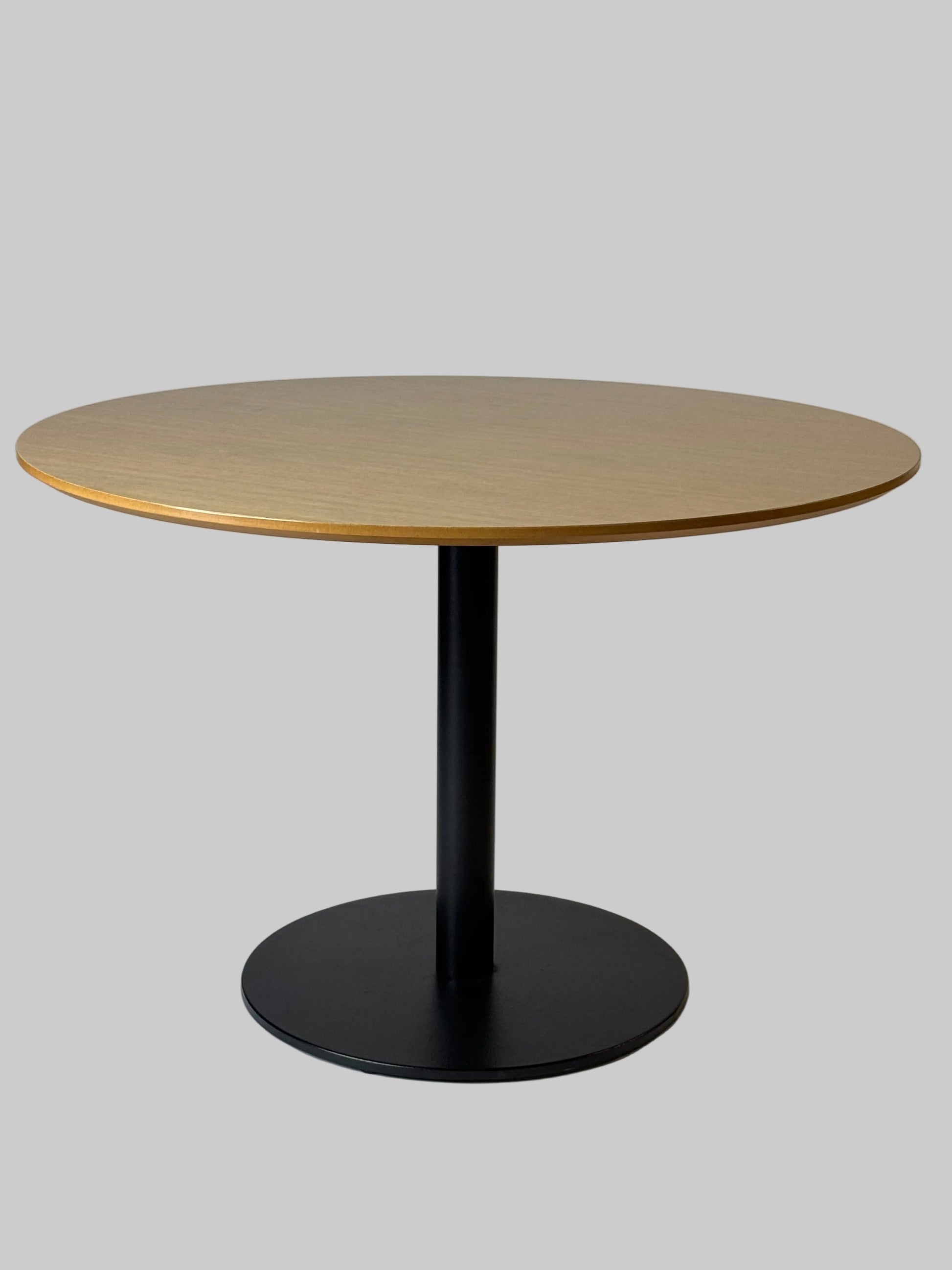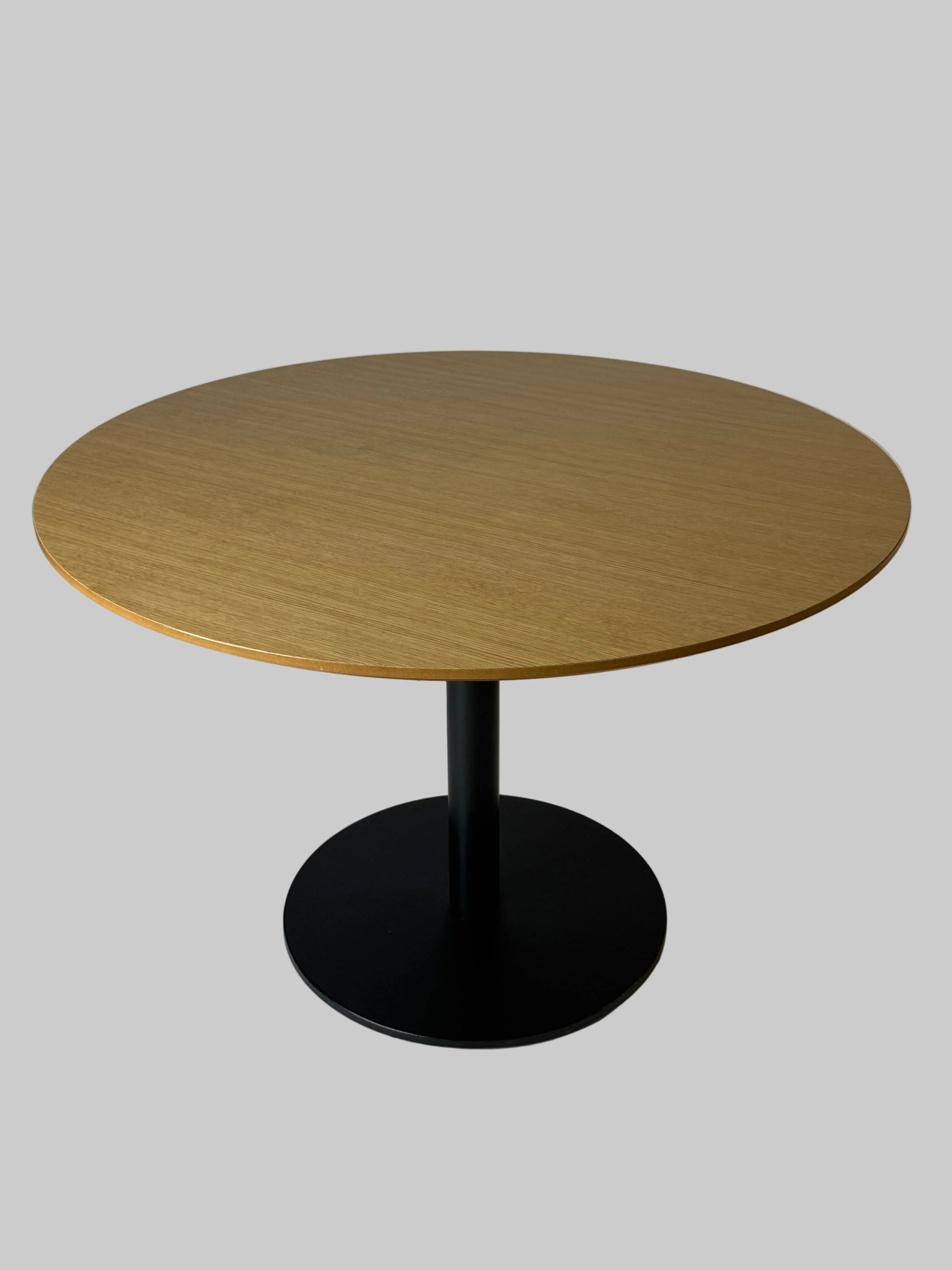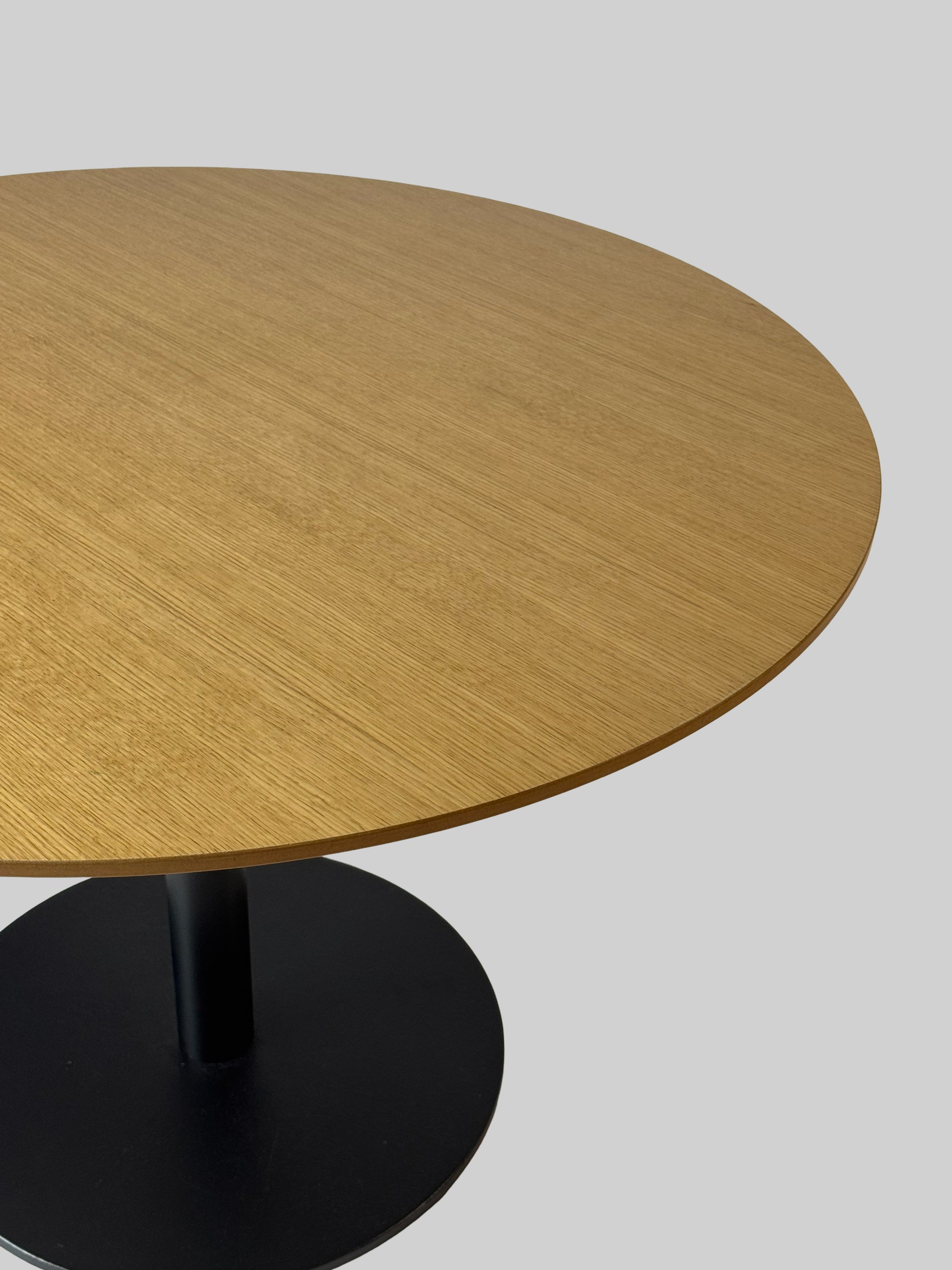 Inox Ø110 fra italienske Pedrali er et alsidigt og stilrent bord, der forener funktion og form i et minimalistisk design. Bordets runde bordplade i træfinér skaber en varm og indbydende overflade, mens den sorte søjlebase i pulverlakeret stål giver bordet et moderne og afbalanceret udtryk. Kombinationen af naturmaterialer og industrielle elementer gør Inox til et populært valg i både kontormiljøer, kantiner og møderum.