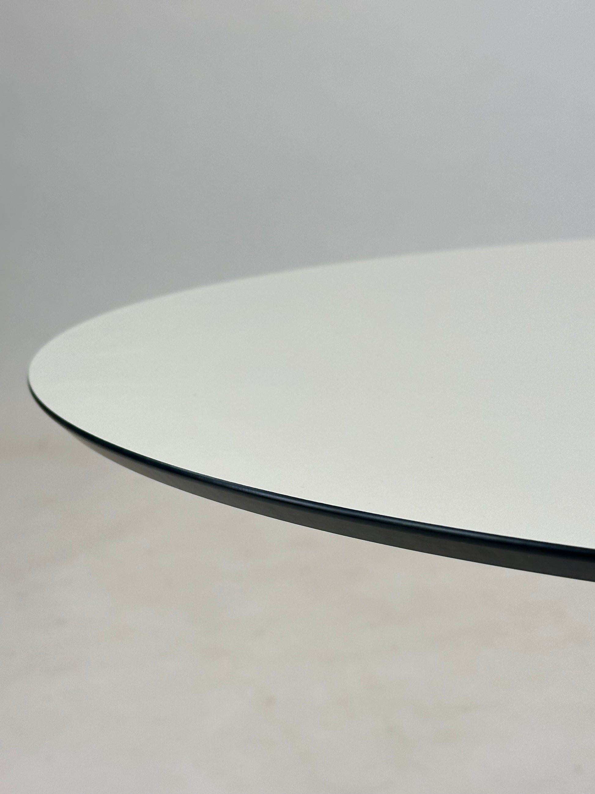 ✔ Bordplade: Rund bordplade i hvid laminat med sort kerne – slidstærk og nem at rengøre