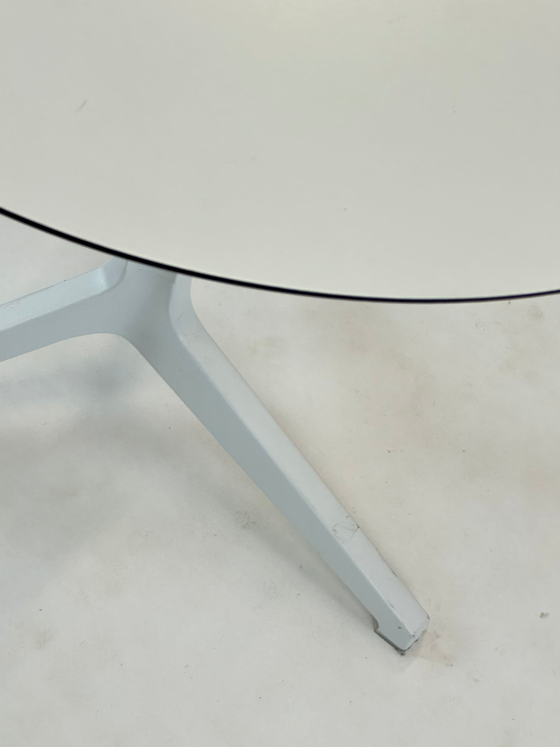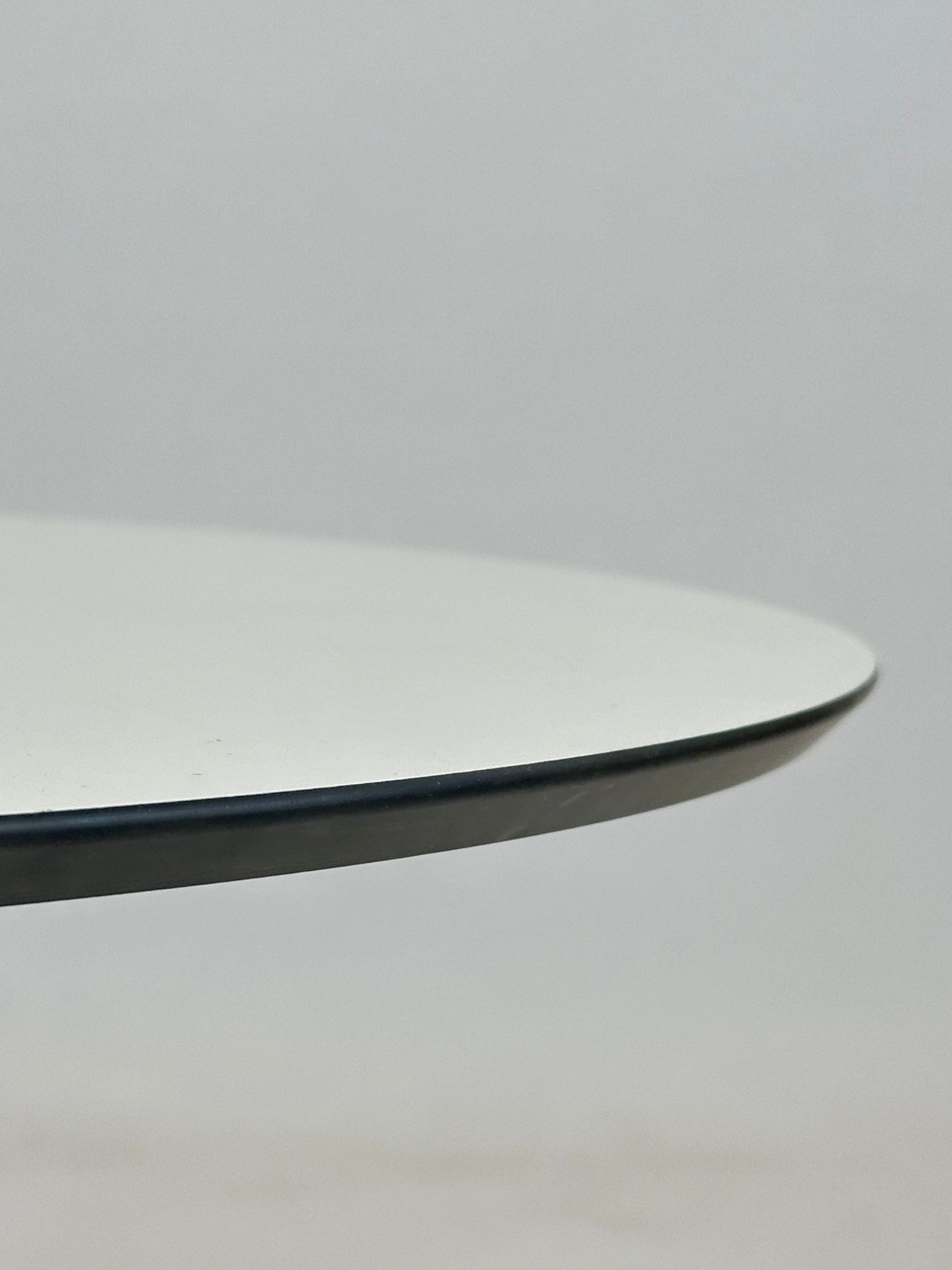 ✔ Bordplade: Rund bordplade i hvid laminat med sort kerne – slidstærk og nem at rengøre