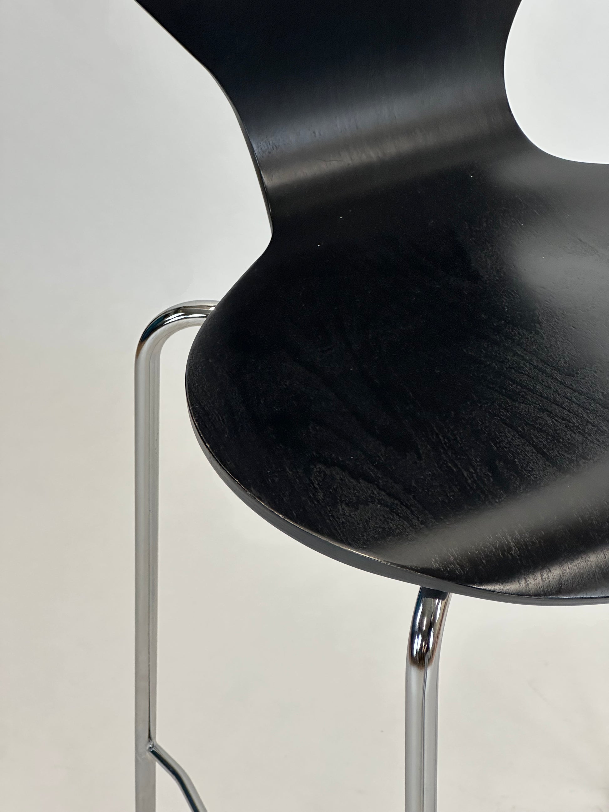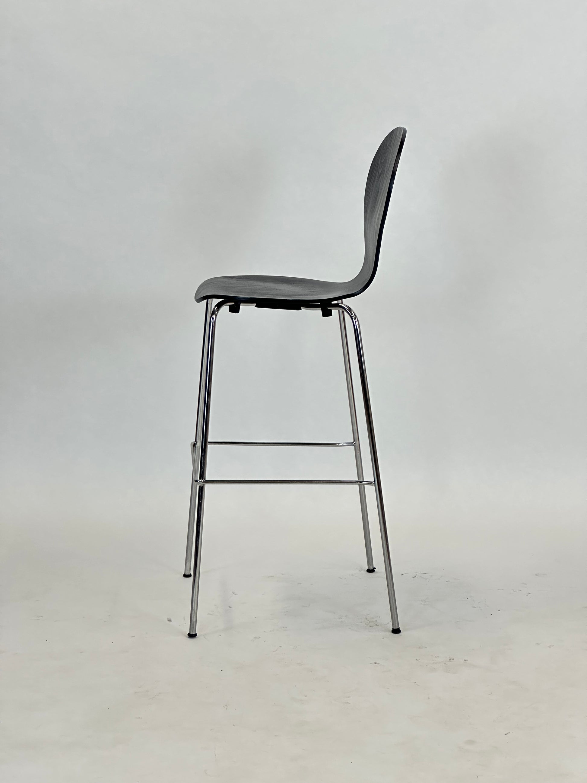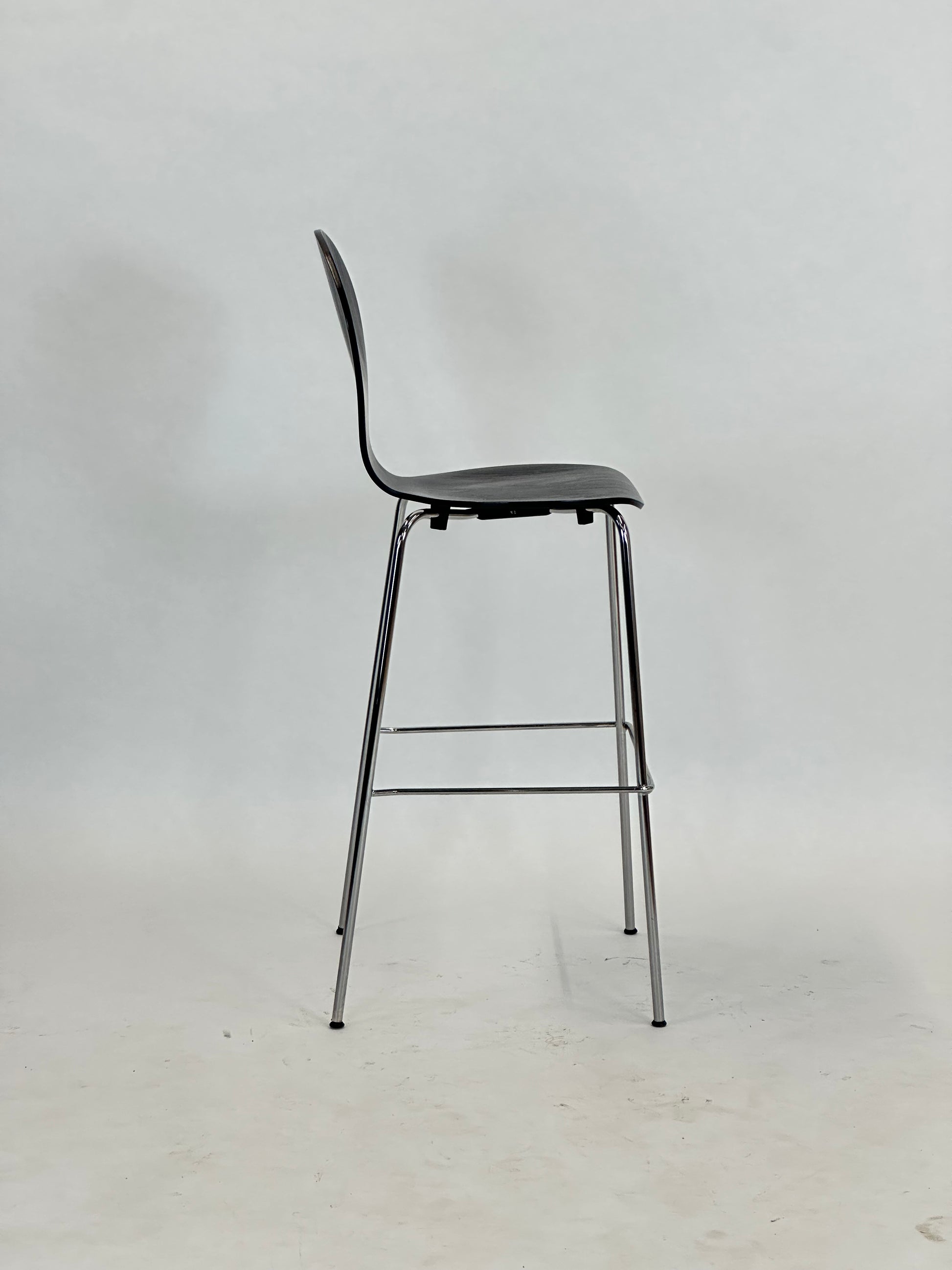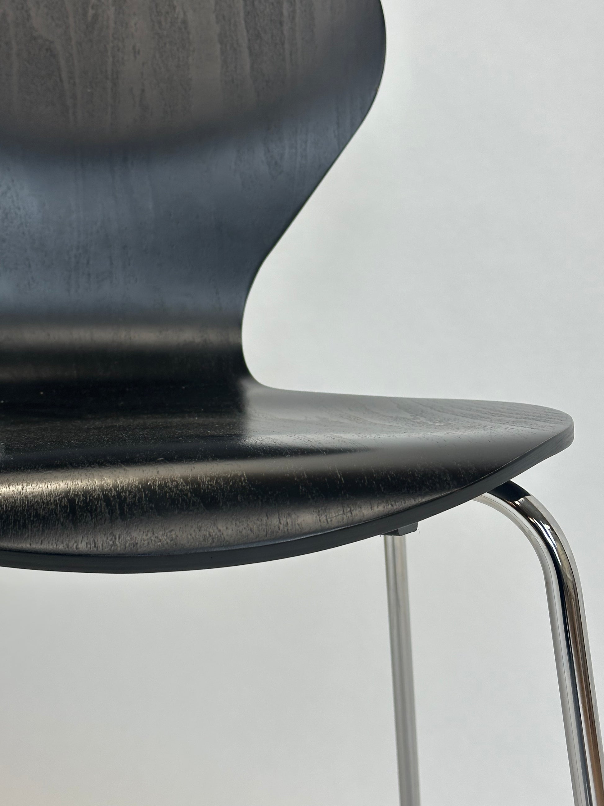 - Sæde: Det ikoniske, formpressede træsæde med sin karakteristiske runde ryg giver både visuel lethed og fremragende ergonomisk støtte. Den sorte finish tilføjer et tidløst og elegant udtryk.