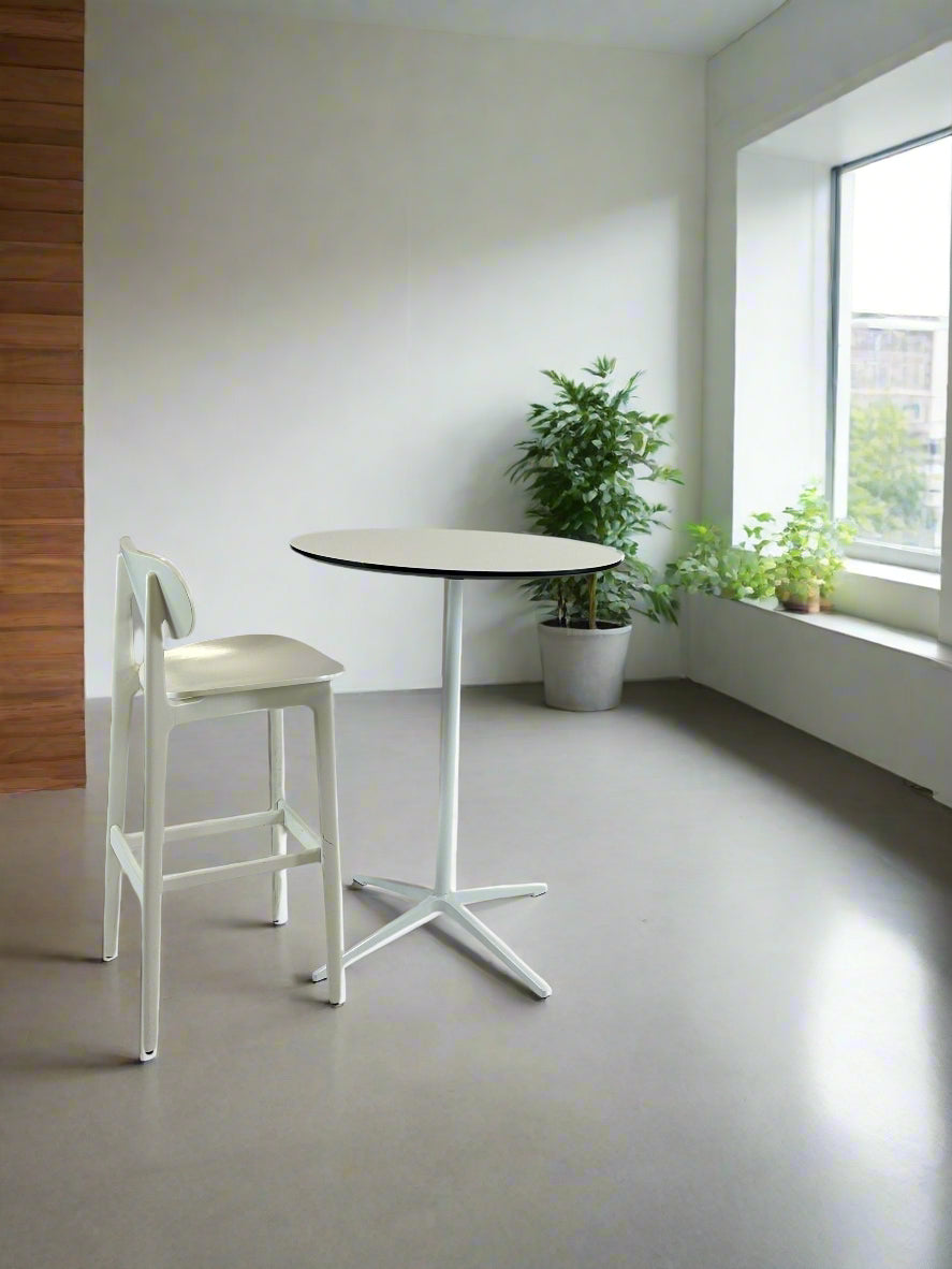 Dette stilrene højbord er ideelt til kontorer, kantiner, loungeområder og fællesarealer, hvor fleksibilitet og design går hånd i hånd. Med sin minimalistiske form og solide konstruktion skaber bordet en uformel og funktionel ramme for stående møder, kaffepauser eller korte arbejdssessioner.