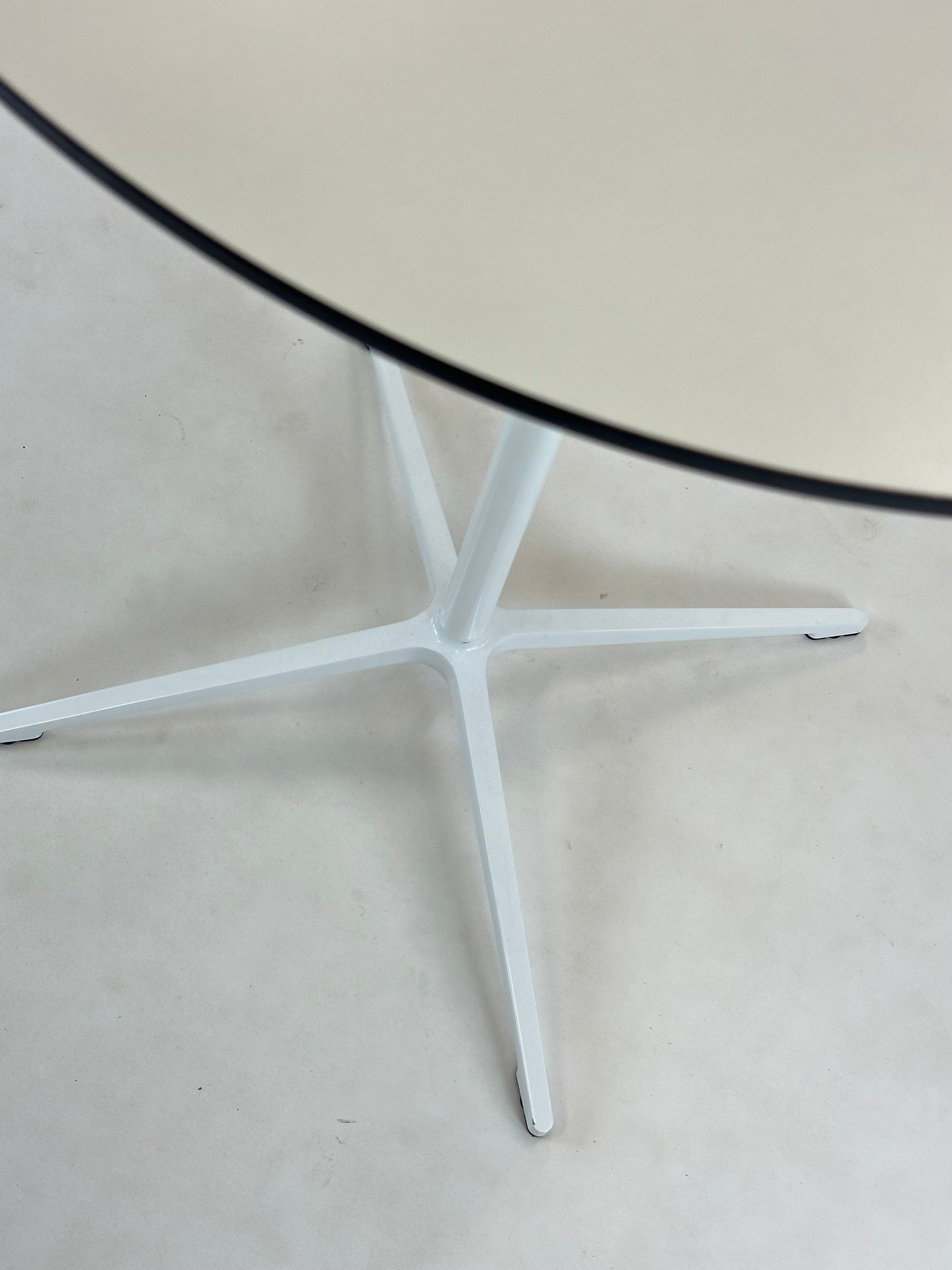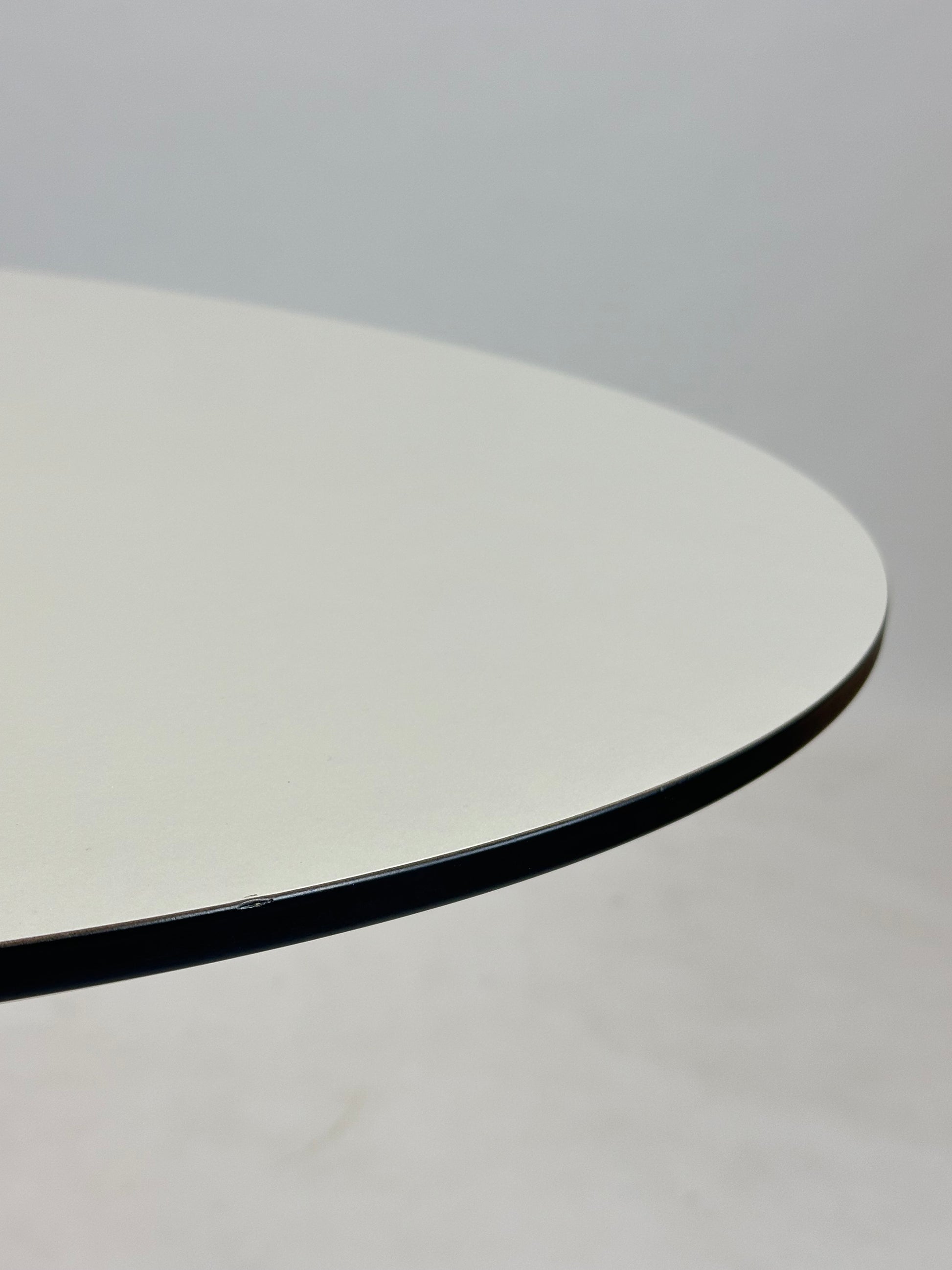 ✔ Bordplade: Rund, hvid laminatplade med sort kant – klassisk og slidstærkt valg