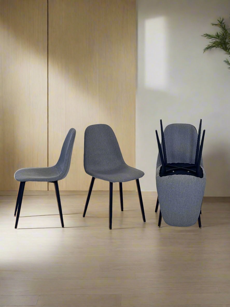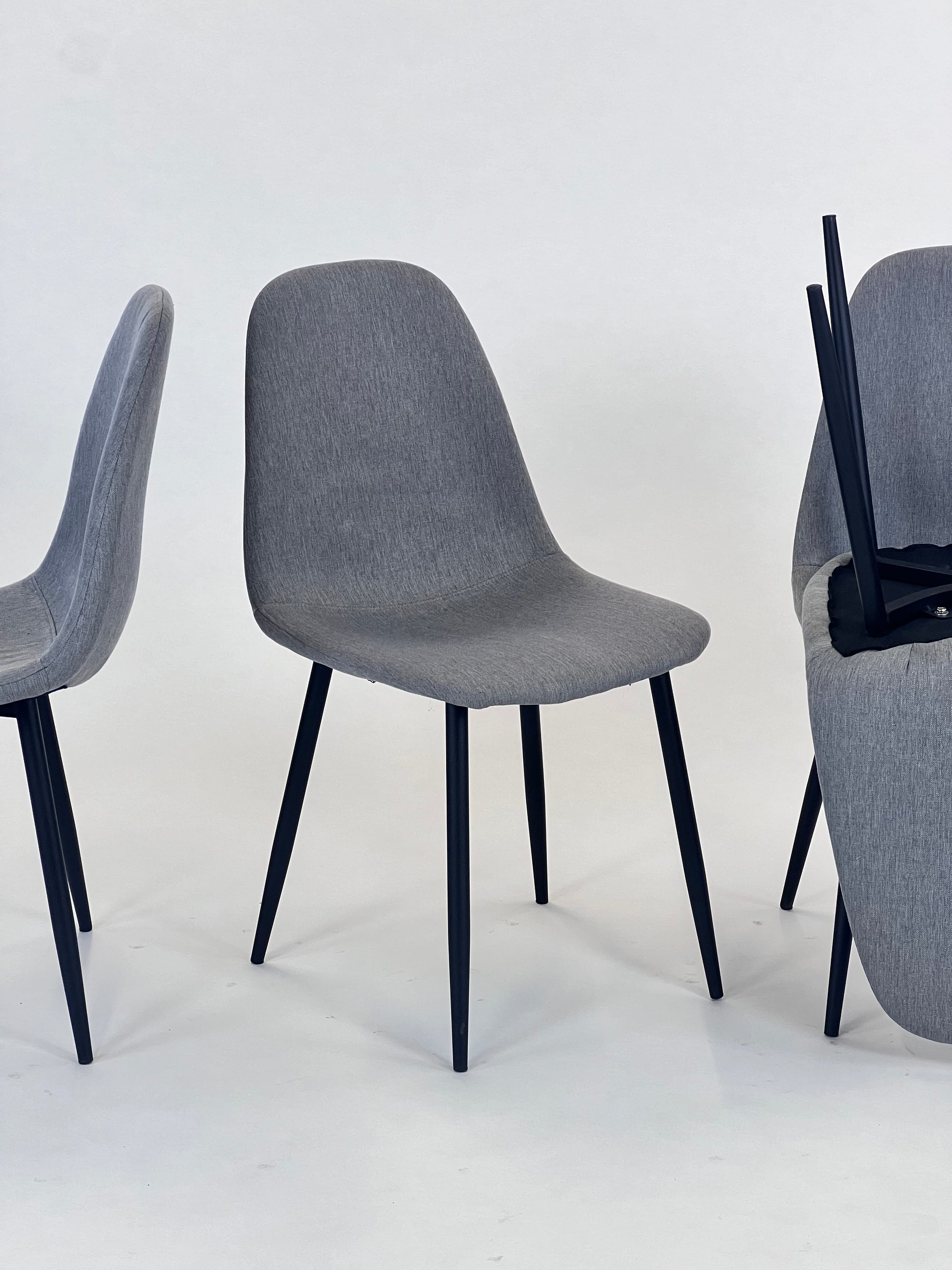 Dette sæt af fire elegante spisebordsstole kombinerer moderne design med høj komfort. Stolenes polstrede sæder og ergonomiske form gør dem ideelle til lange middage og hyggelige stunder ved spisebordet.