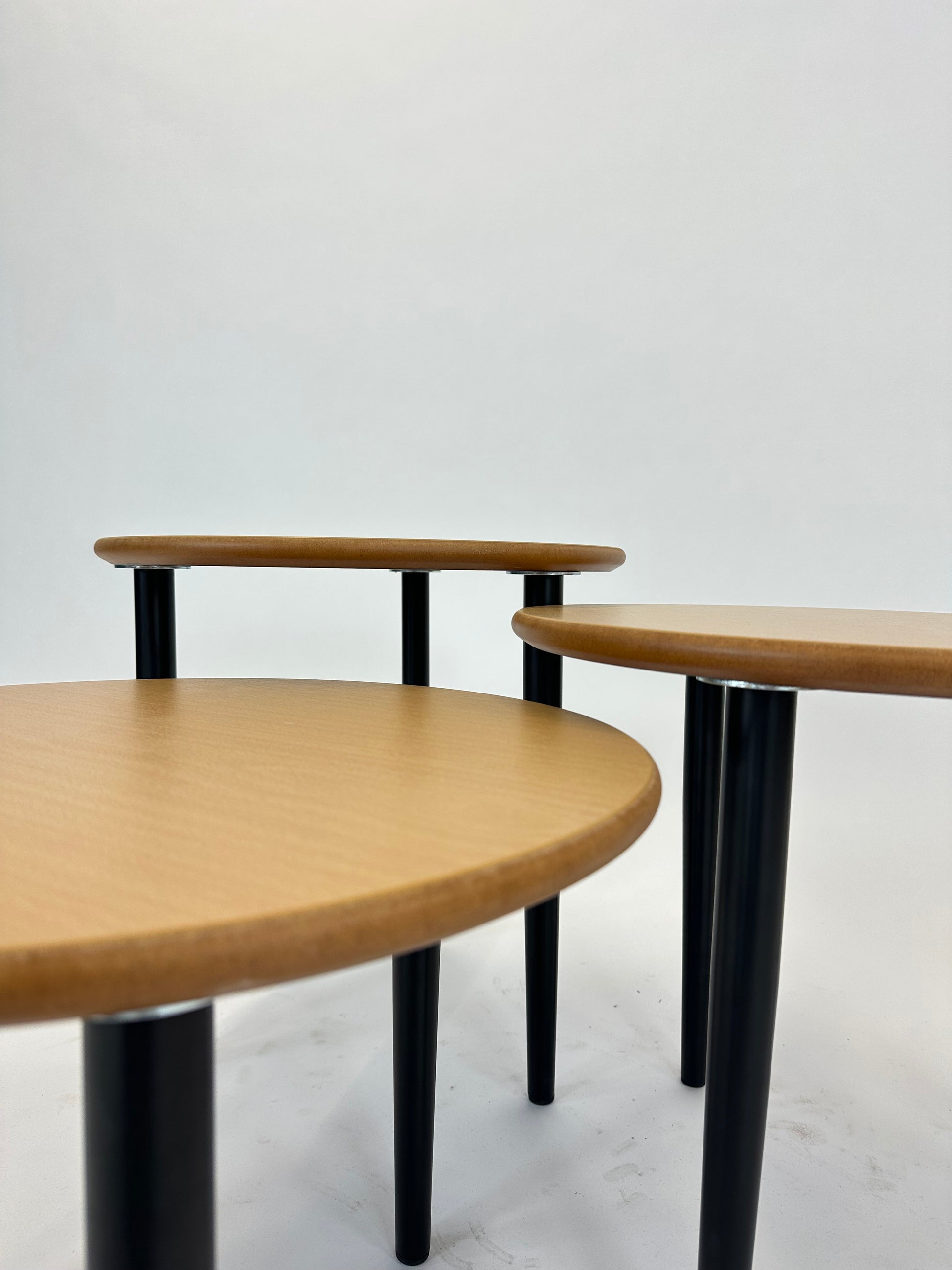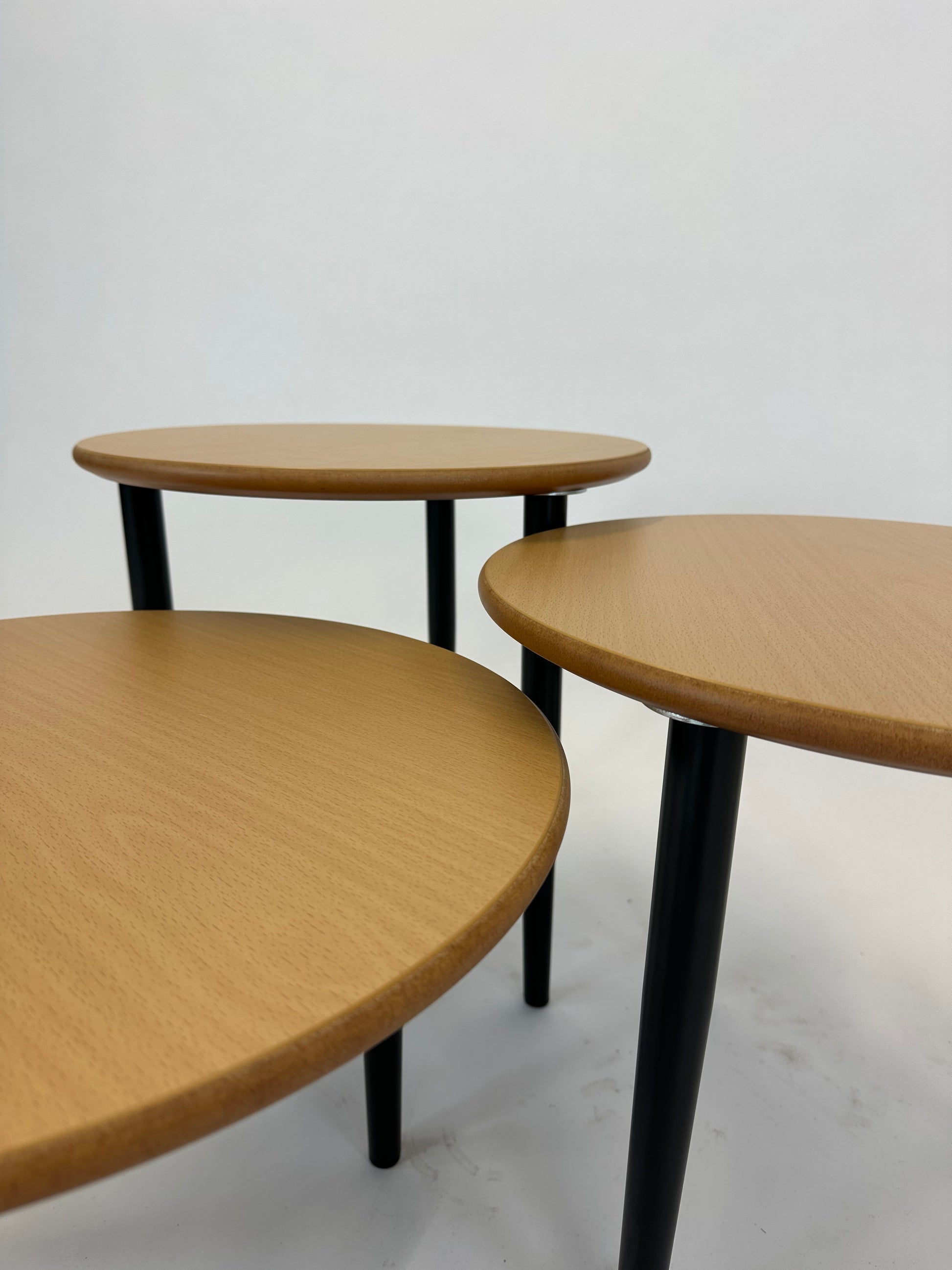 Dette sæt af tre loungeborde fra Magnus Olesen kombinerer funktionalitet og æstetik, hvilket gør dem til et perfekt valg til både kontormiljøer, receptioner og private hjem. Med deres harmoniske design og forskellige højder skaber bordene en dynamisk og fleksibel indretning.