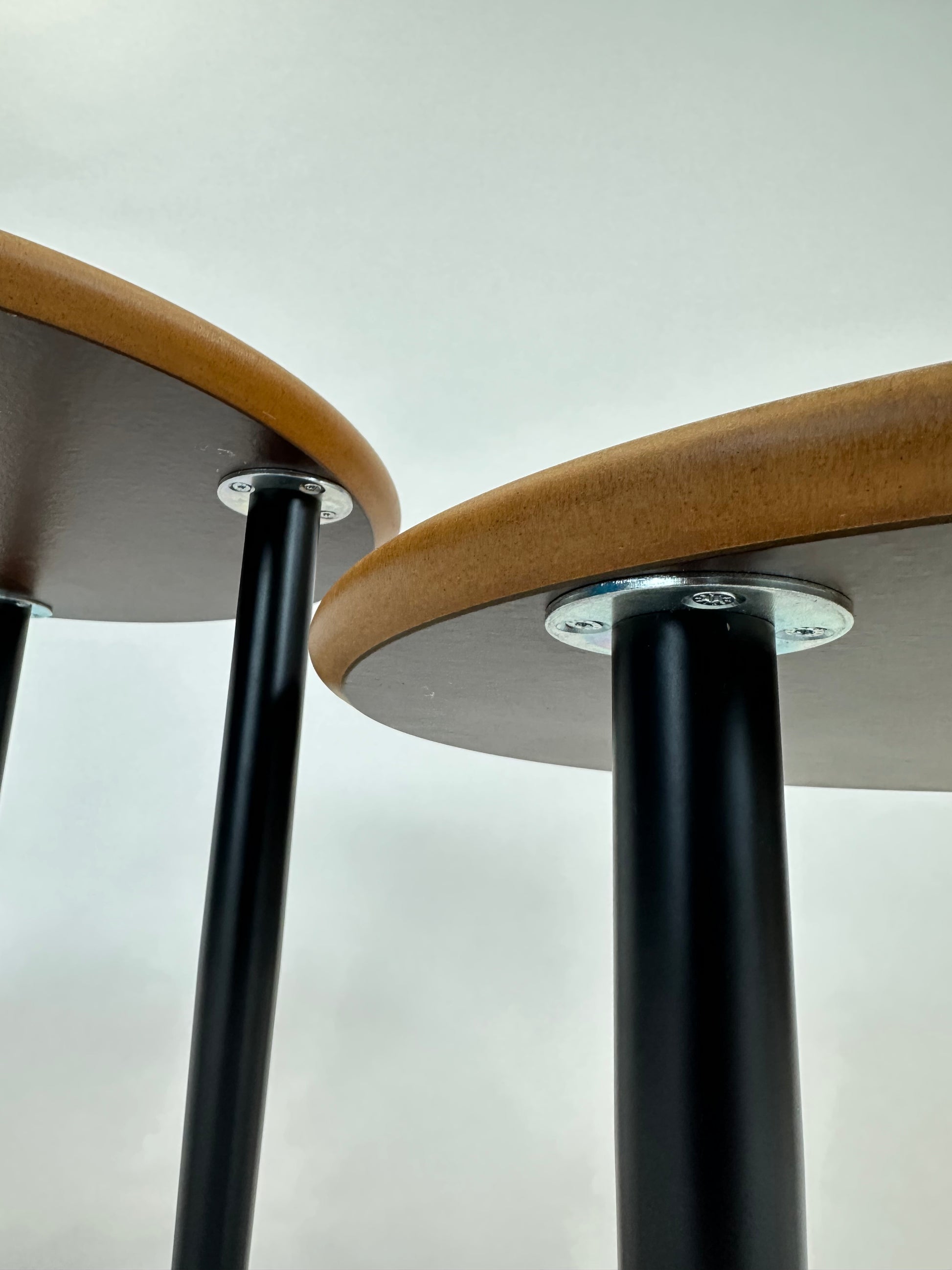- Ben: Slanke sorte metalben, som skaber en stilfuld kontrast til træoverfladen.