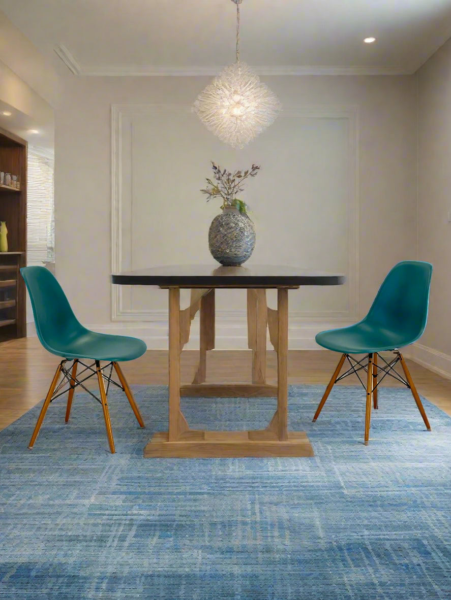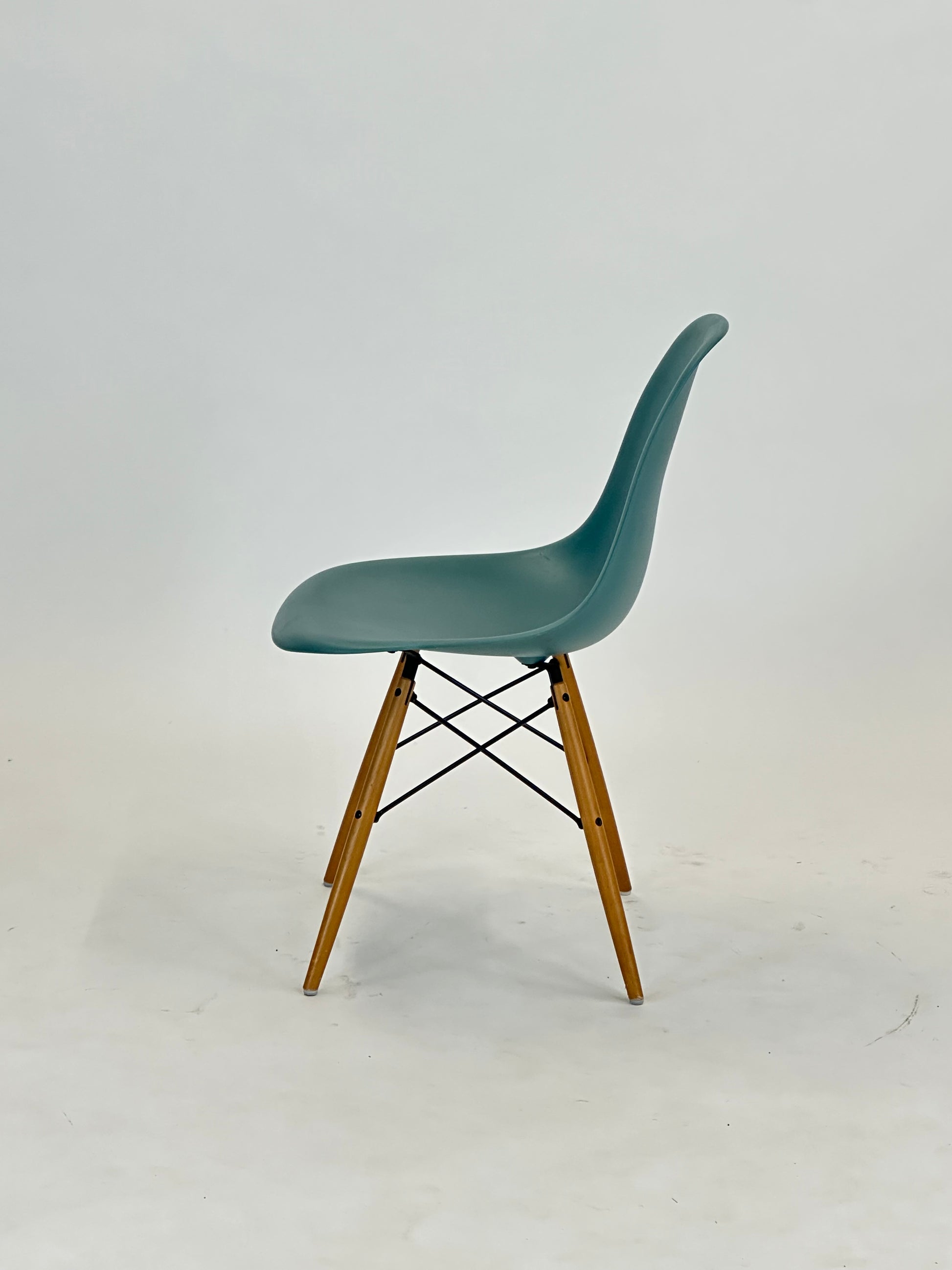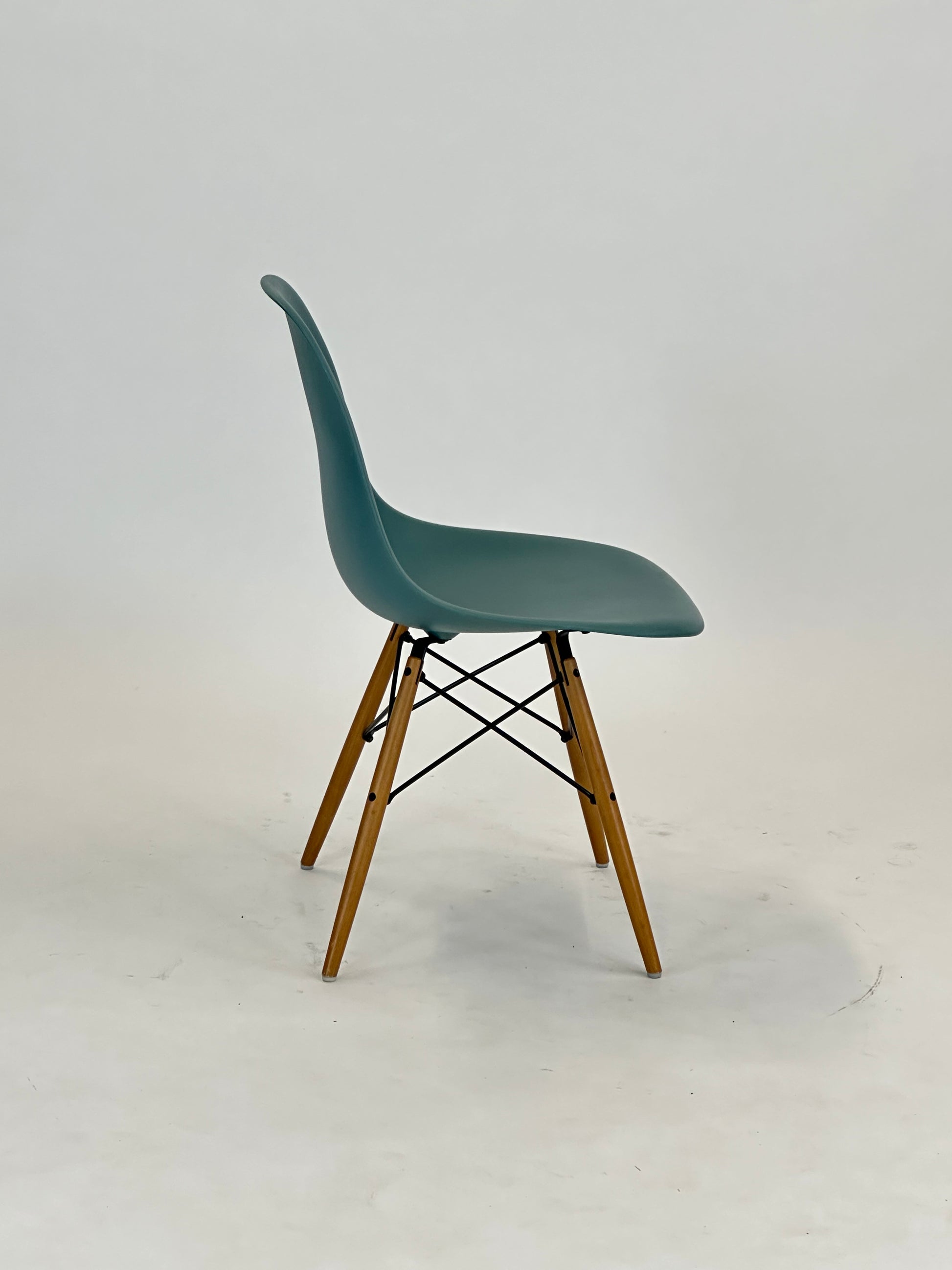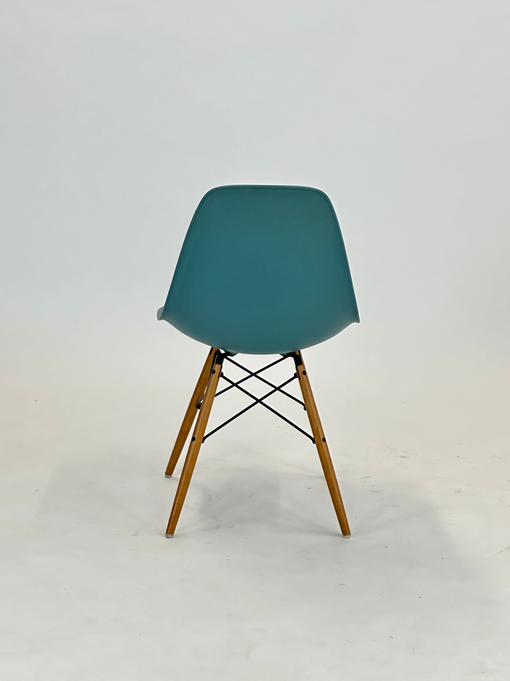 Den klassiske Vitra Eames DSW stol, designet af Charles og Ray Eames, er et ikon inden for moderne møbeldesign. Denne version i en frisk sea blue farve med træben tilføjer et strejf af personlighed og friskhed til ethvert rum, samtidig med at den bevarer sit tidsløse og funktionelle design.