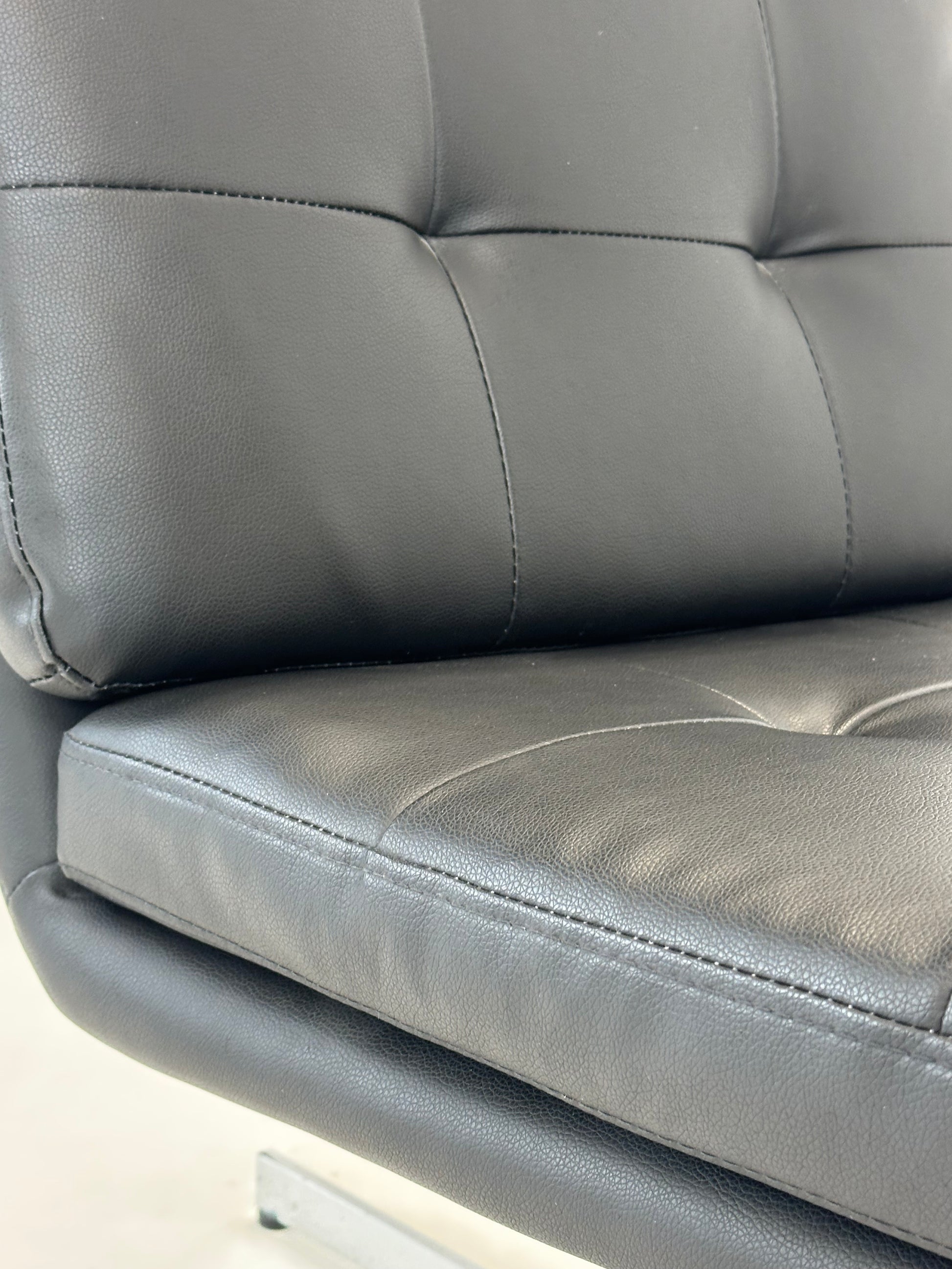 ✔ Polstring: Sort kunstlæder med kvadratsyninger for et sofistikeret, tidløst look.