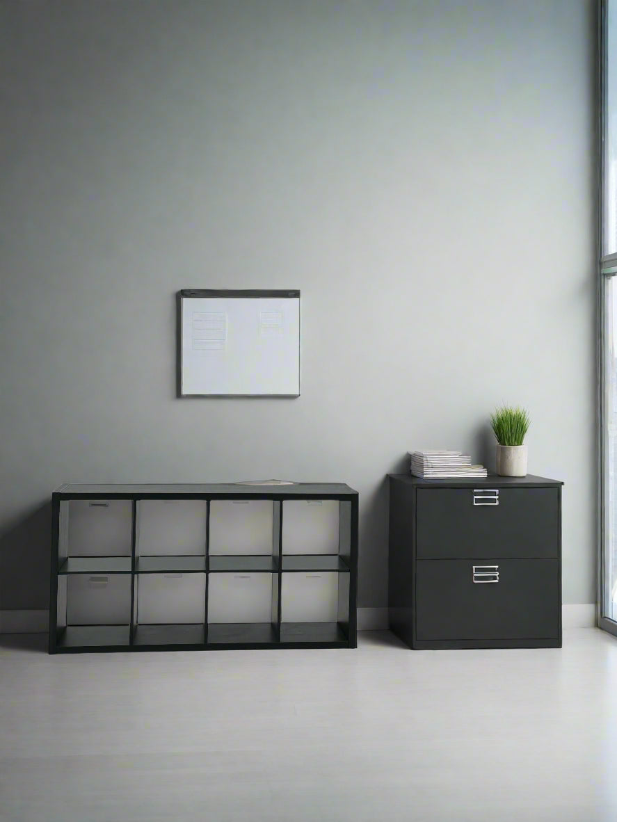 Denne stilrene og funktionelle modulreol i sort finish er den ideelle løsning til opbevaring og organisering i både kontor, hjemmekontor og private rum. Med sine otte kvadratiske rum tilbyder reolen en fleksibel og overskuelig opbevaringsløsning til alt fra mapper og bøger til dekorative genstande og opbevaringskasser.