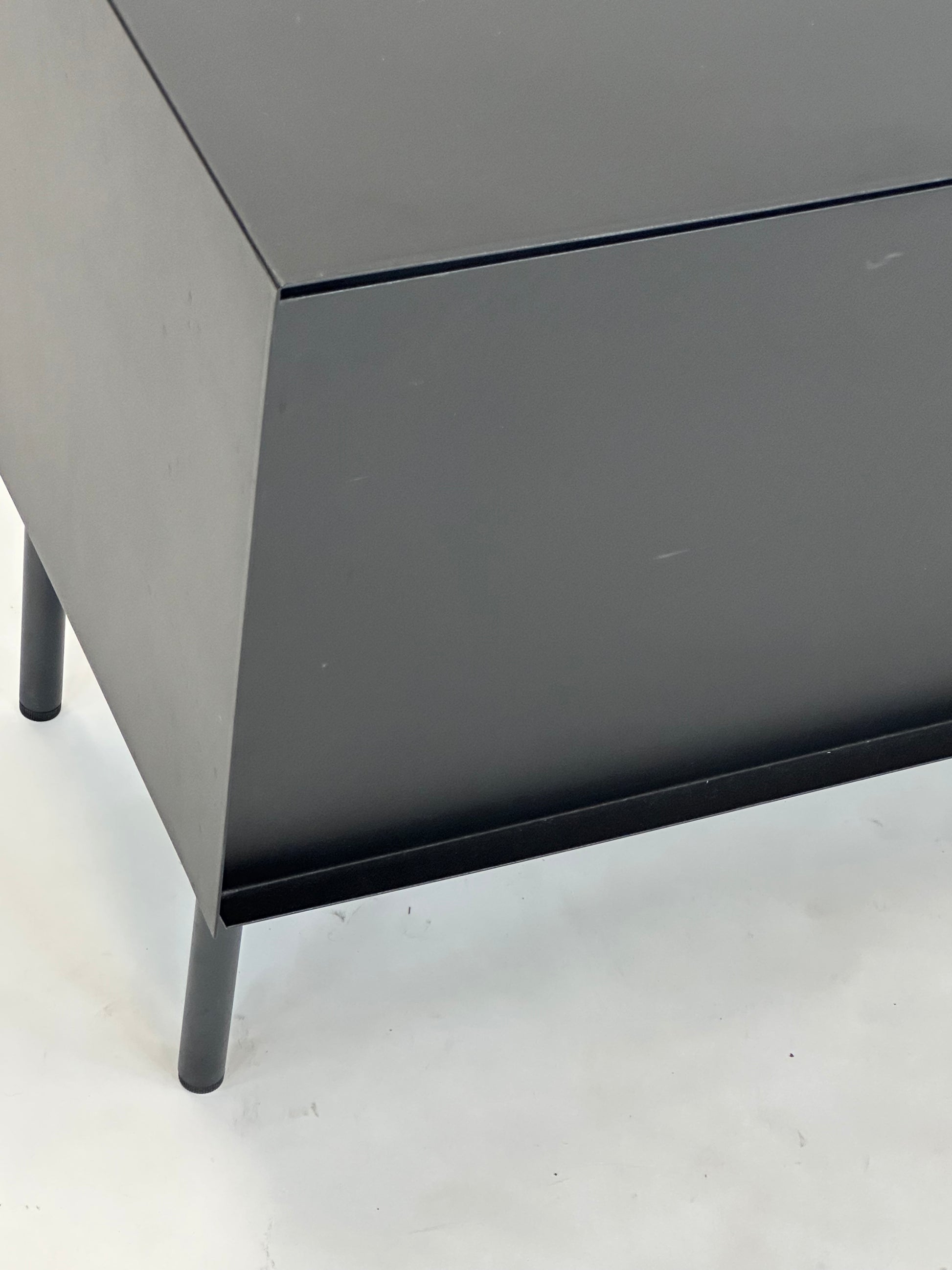 Dette elegante og minimalistiske opbevaringsmodul i sort finish er en alsidig og pladsbesparende løsning til både kontor- og hjemmemiljøer. Med en solid frontlåge sikrer modulet et ryddeligt og stilrent udtryk, mens det samtidig giver god skjult opbevaring.