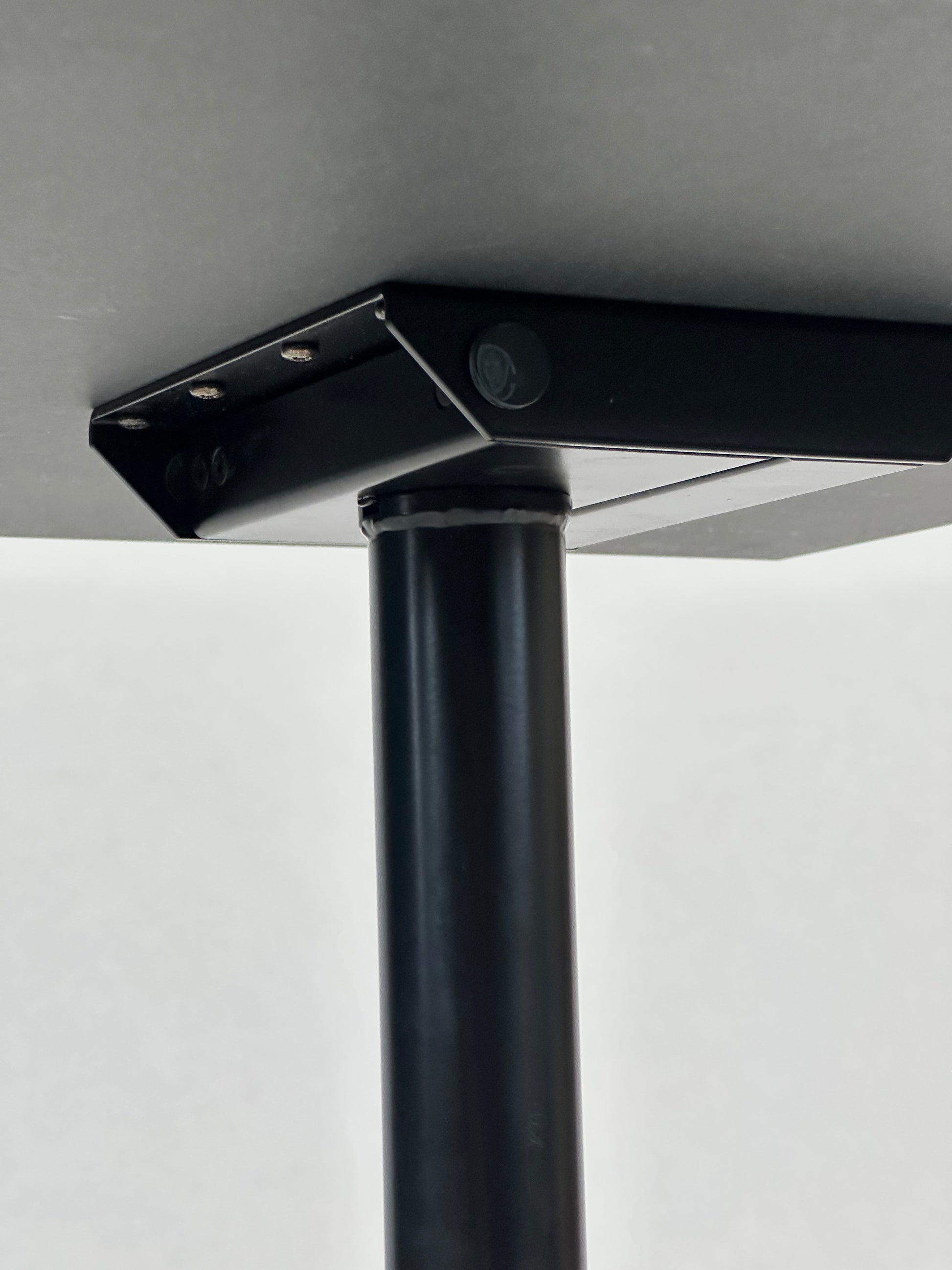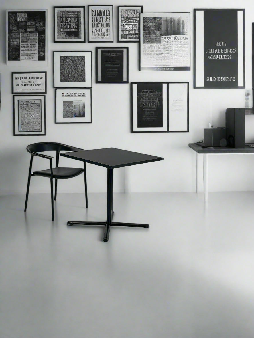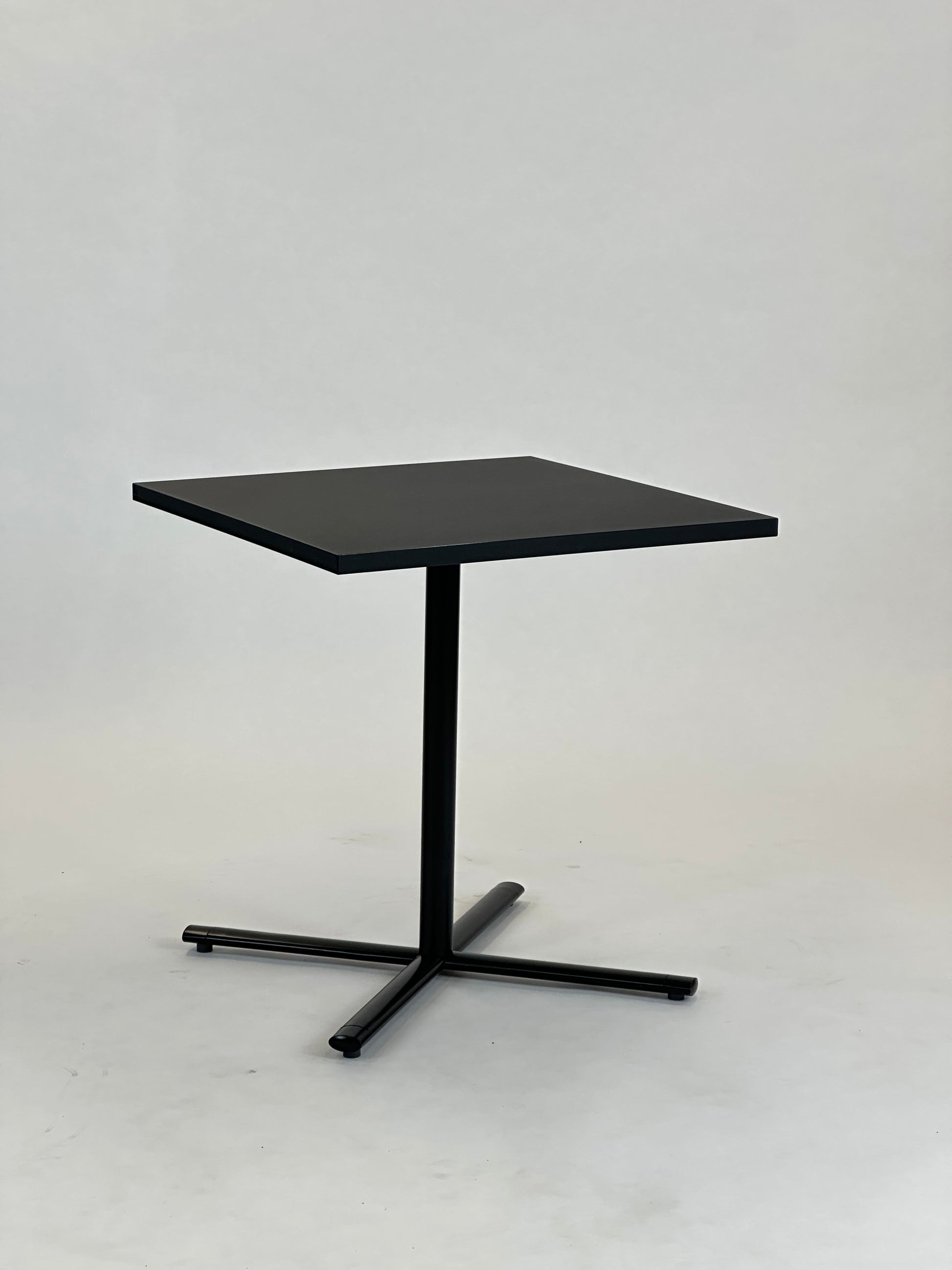 - Bordplade: Kvadratisk bordplade i sort, der skaber et stilrent og moderne udtryk. Den slidstærke overflade gør bordet modstandsdygtigt over for daglig brug.