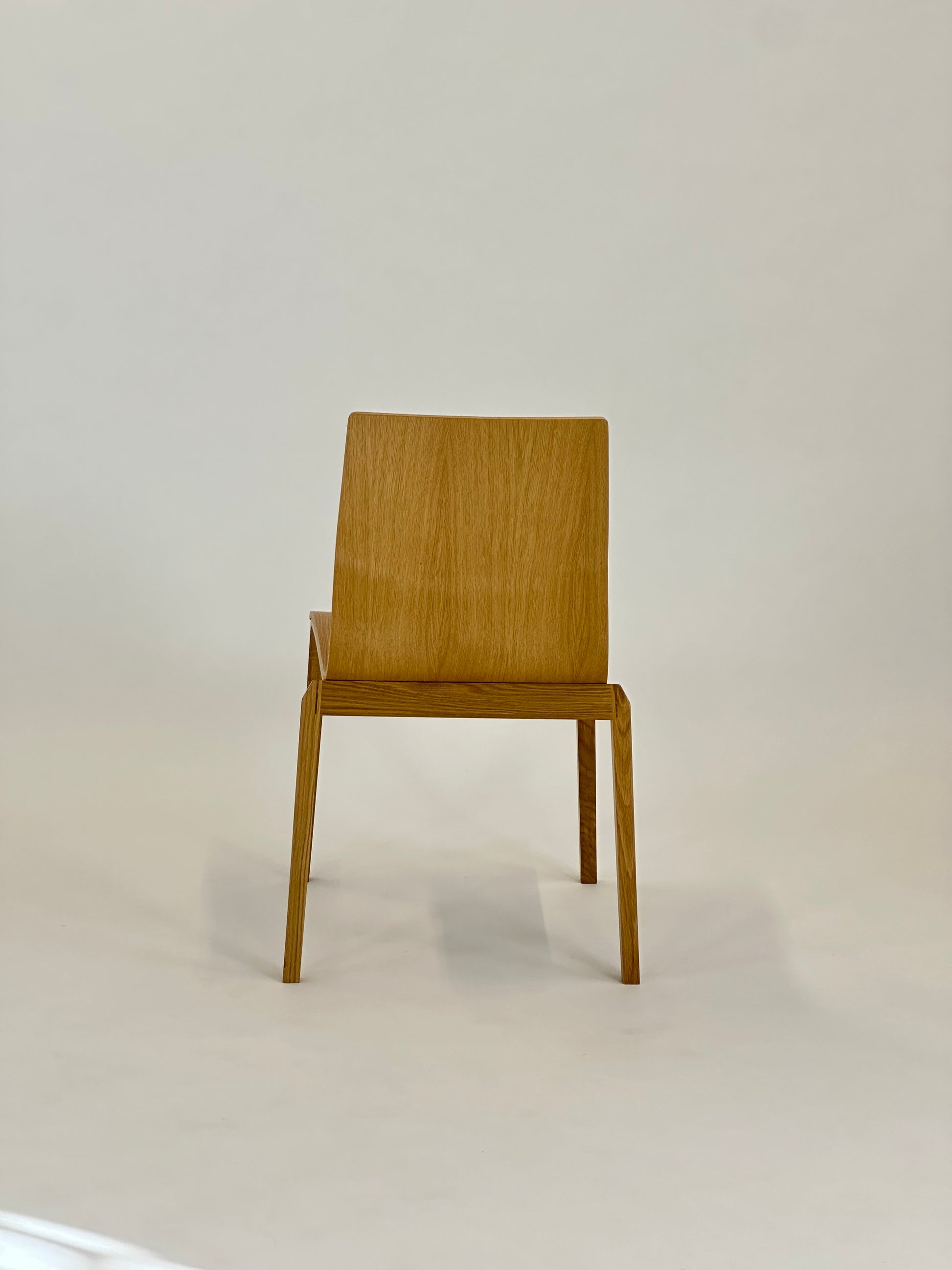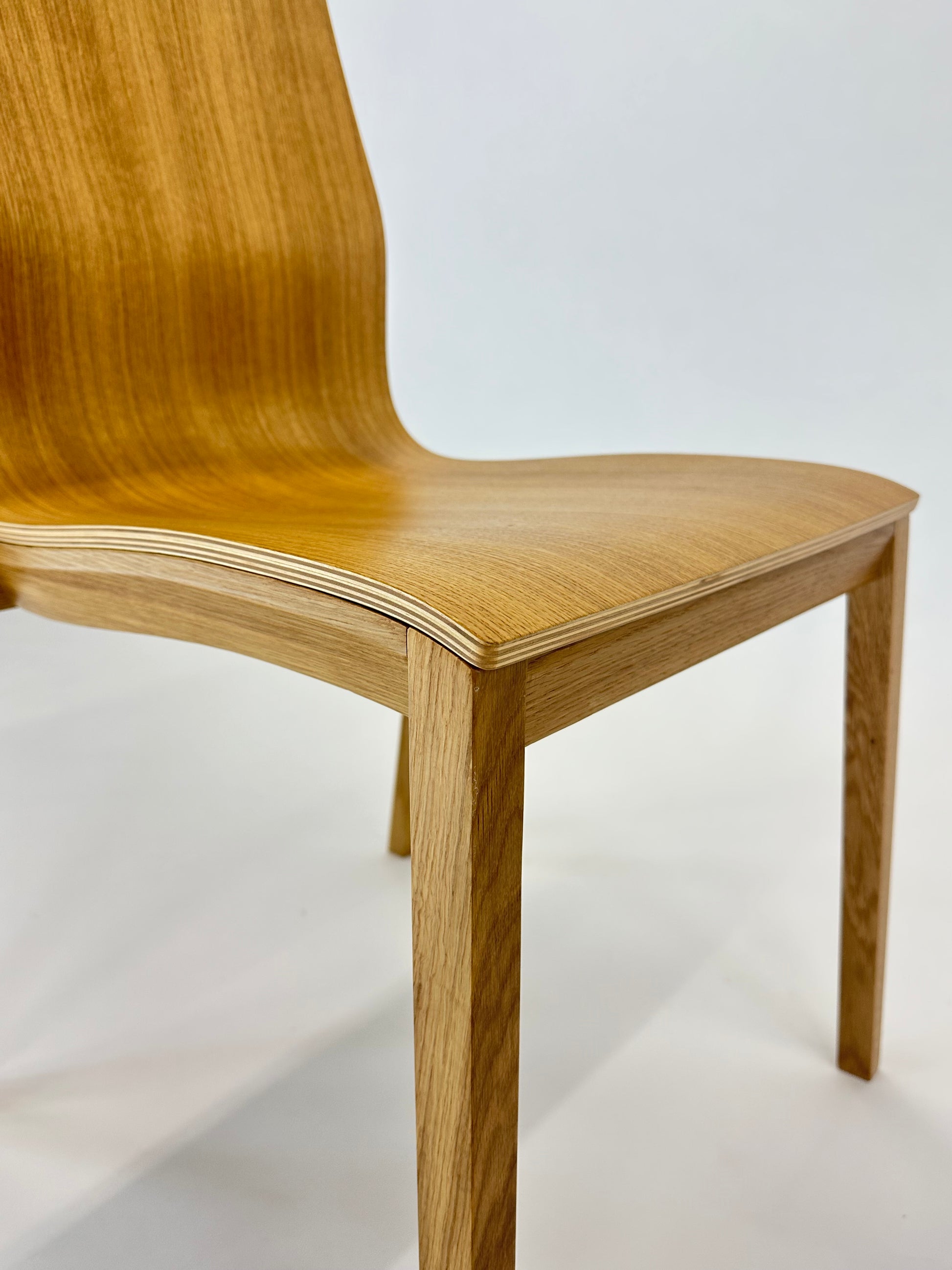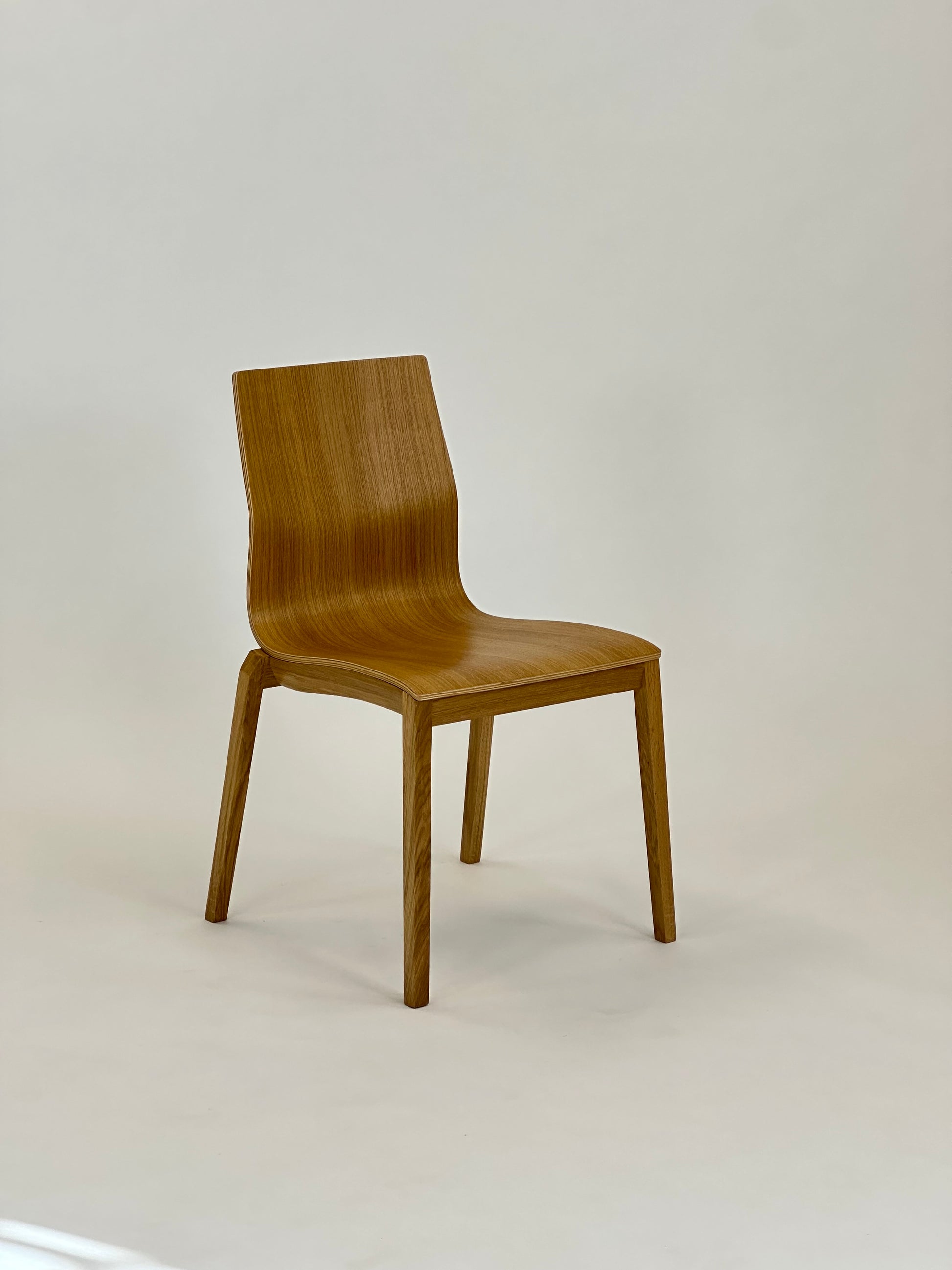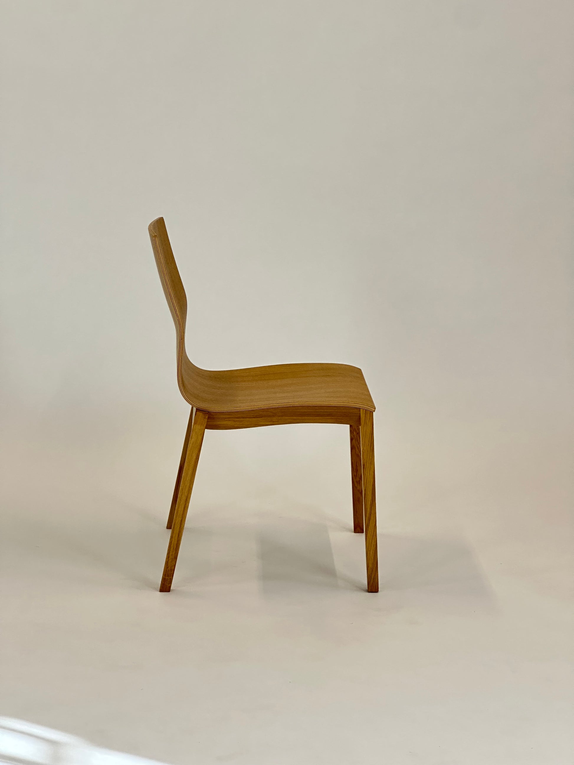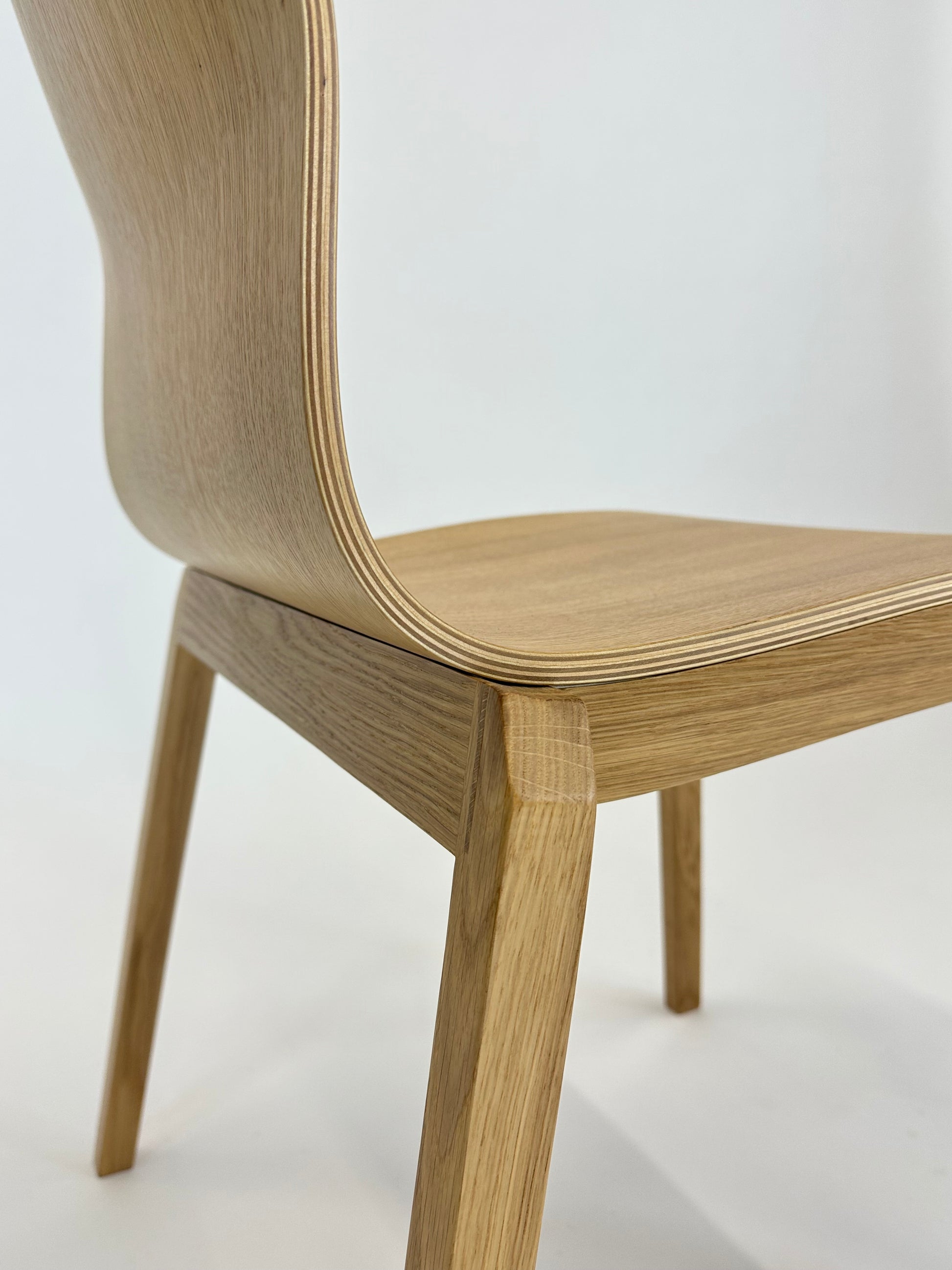 - Sæde & ryg: Formpresset træ med organisk buet form, der sikrer optimal komfort og støtte.