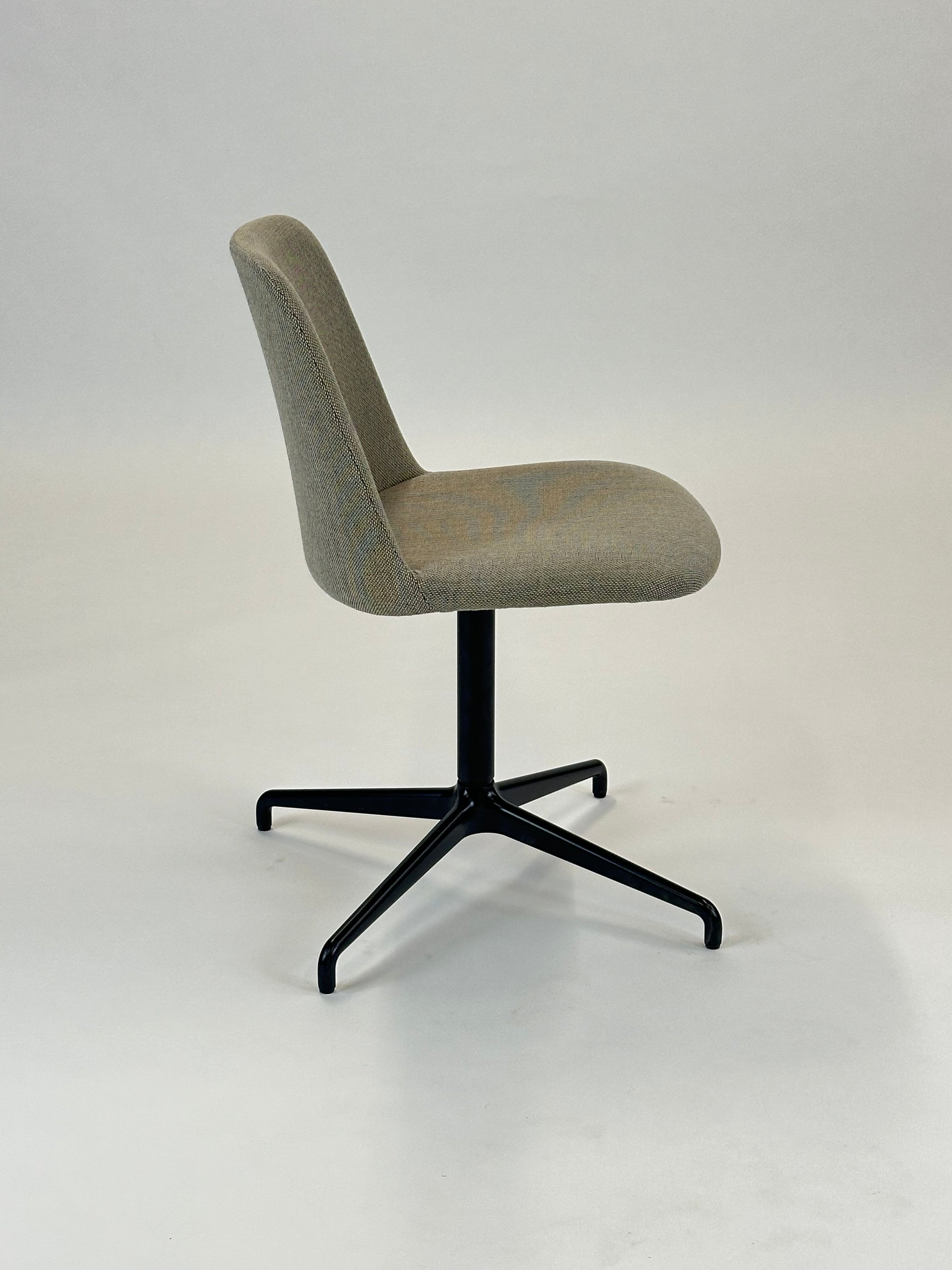 Rely mødestolen fra &tradition er en elegant og minimalistisk stol, der kombinerer skandinavisk design med funktionel komfort. Den slanke silhuet, fuldpolstrede sæde og ryg i beigefarvet tekstil samt det stabile, drejelige stel i sort giver stolen et sofistikeret udtryk, som passer perfekt ind i både mødelokaler og kontorlandskaber.