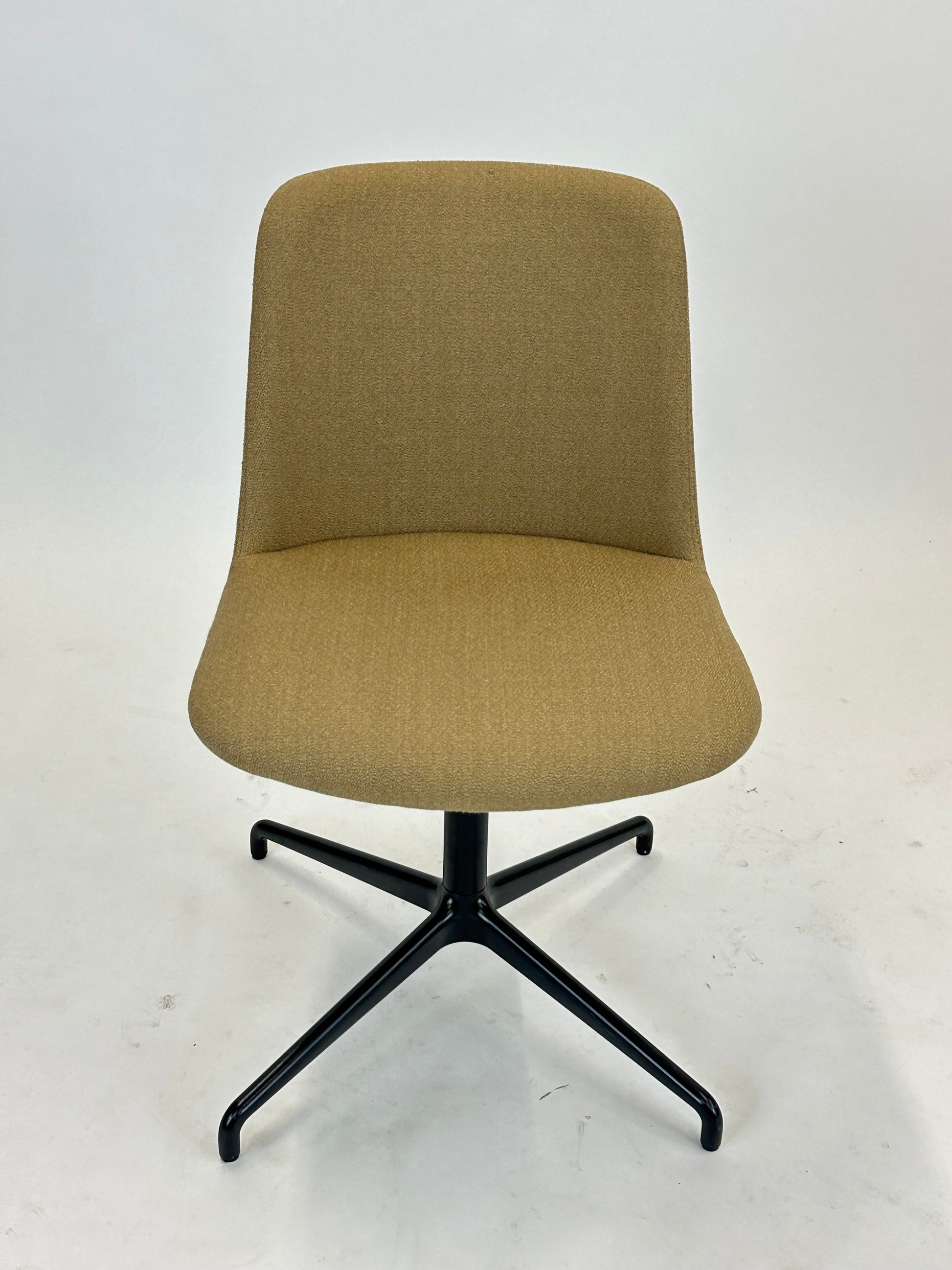 Rely mødestolen fra &tradition er en elegant og minimalistisk stol, der kombinerer skandinavisk design med funktionel komfort. Den slanke silhuet, fuldpolstrede sæde og ryg i sandfarvet tekstil samt det stabile, drejelige stel i sort giver stolen et sofistikeret udtryk, som passer perfekt ind i både mødelokaler og kontorlandskaber.