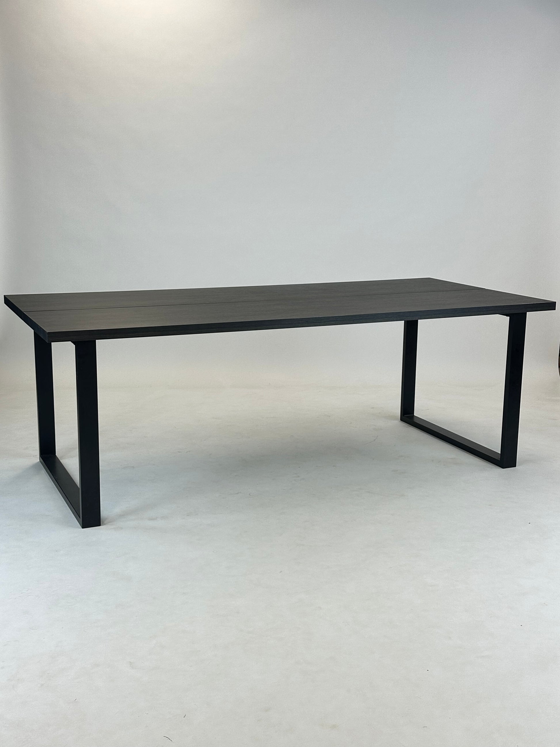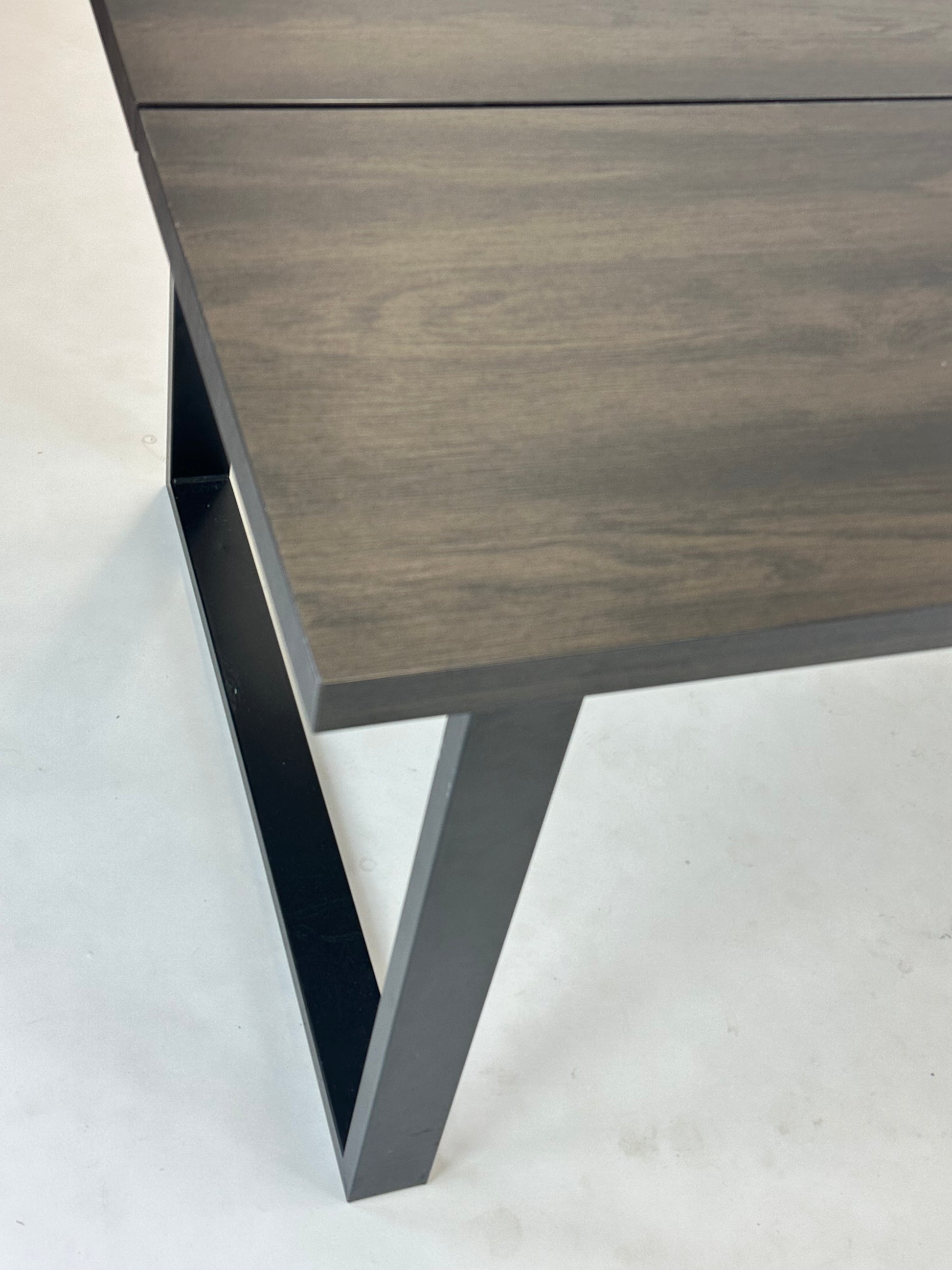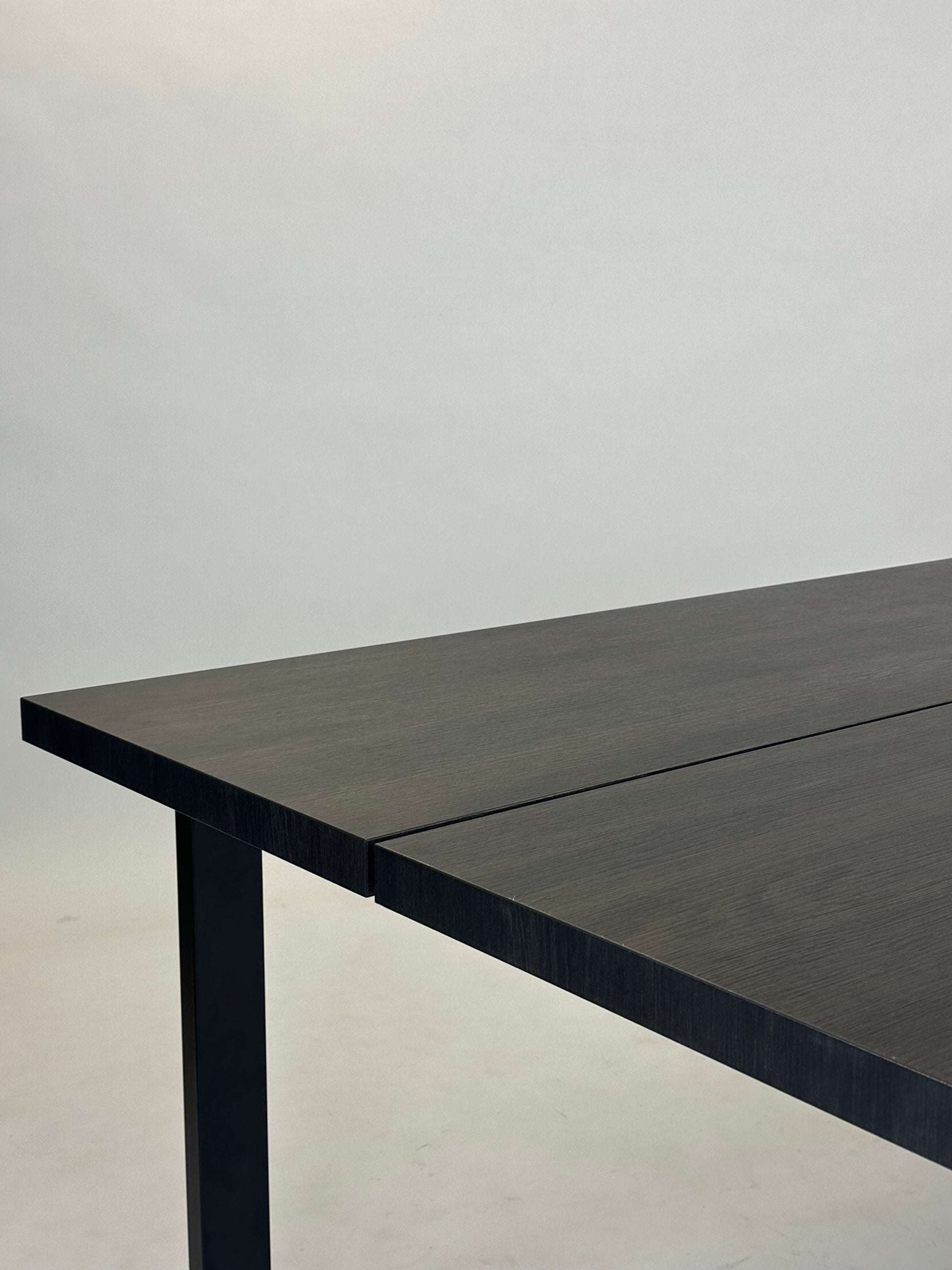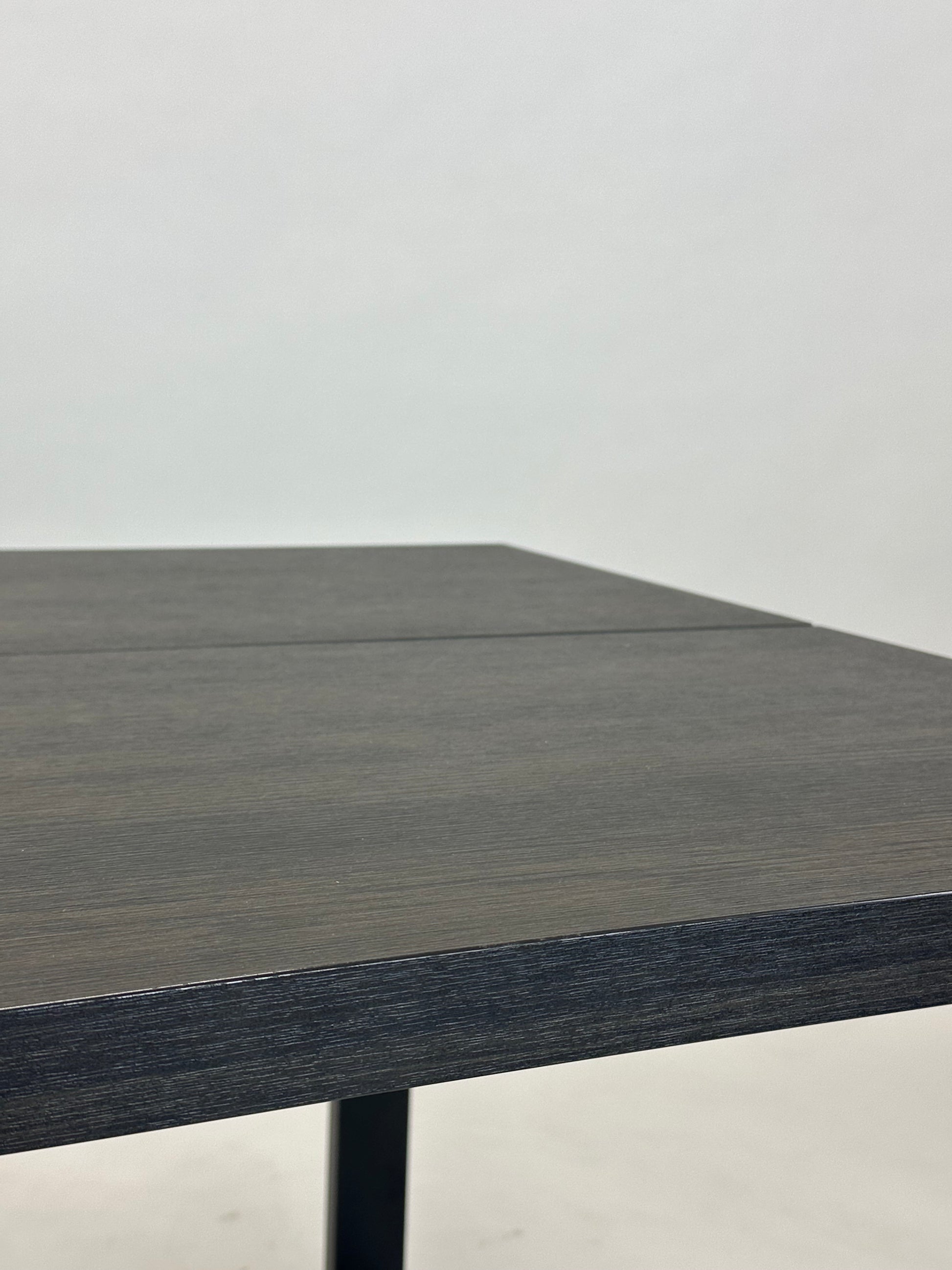 TRANEBO bordet fra IKEA kombinerer et stilrent og industrielt design med praktisk funktionalitet. Den sorte træfineroverflade og det pulverlakerede stel skaber et moderne bord, der passer perfekt ind i alt fra mødelokaler til kantiner eller større spisepladser.