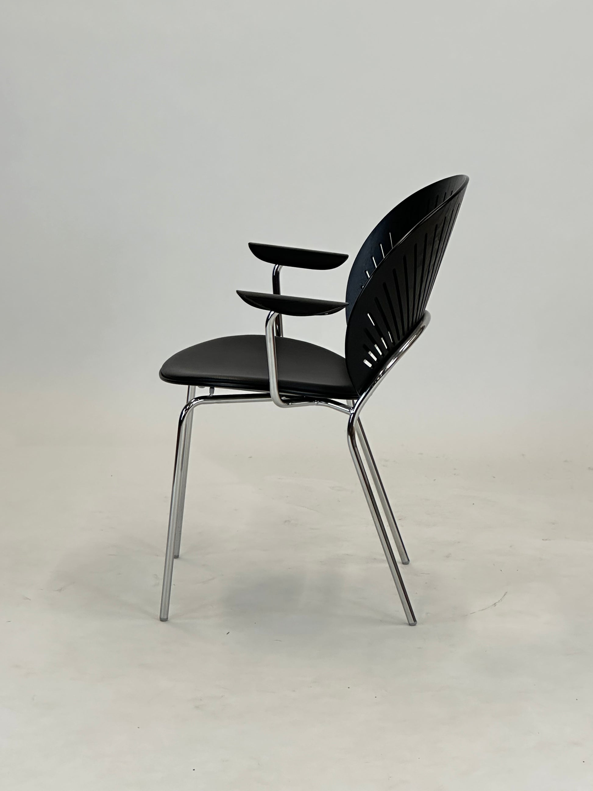Trinidad-stolen er et ikonisk designmøbel, der kombinerer elegance, komfort og funktionalitet. Designet af Nanna Ditzel i 1993, er denne stol kendt for sin karakteristiske vifteformede ryg med udskæringer, der ikke kun tilfører et let og luftigt udtryk, men også giver optimal ergonomisk støtte.