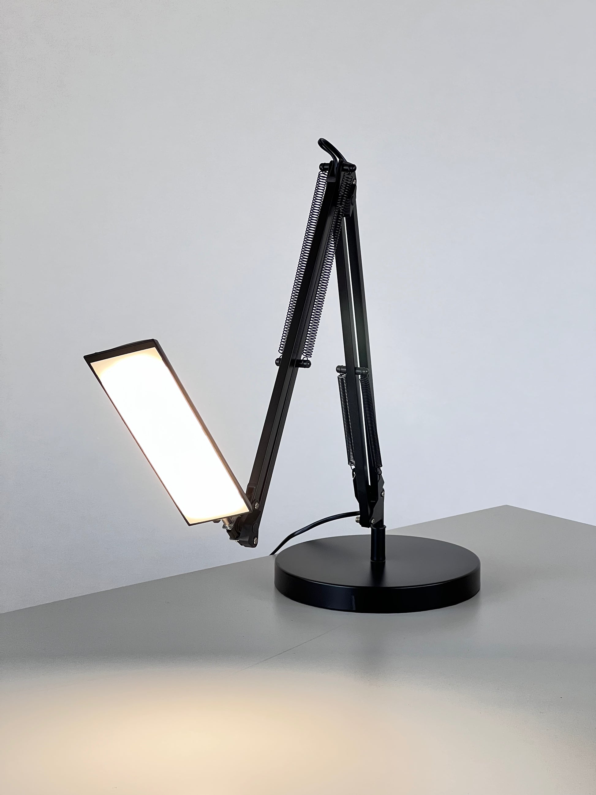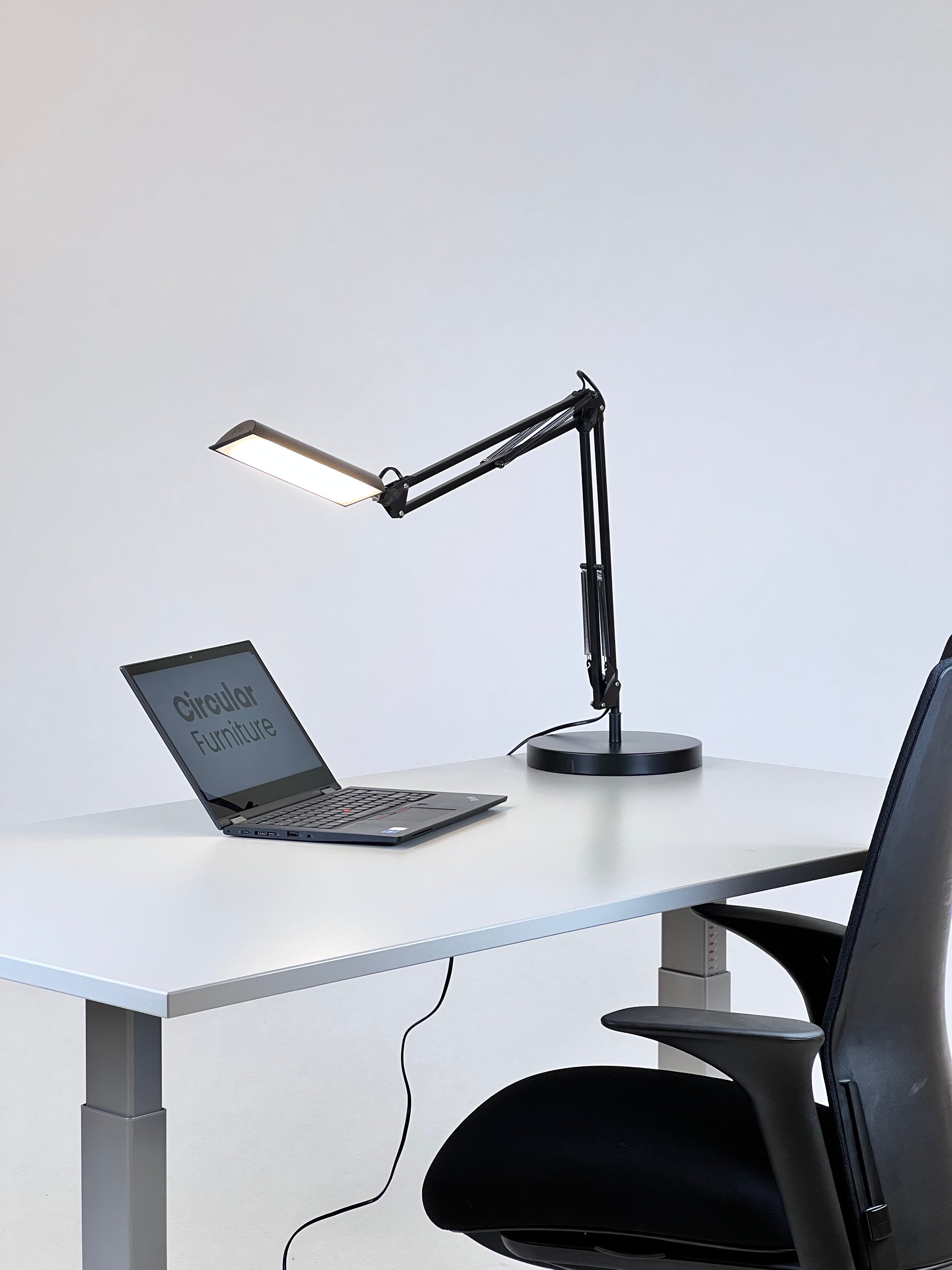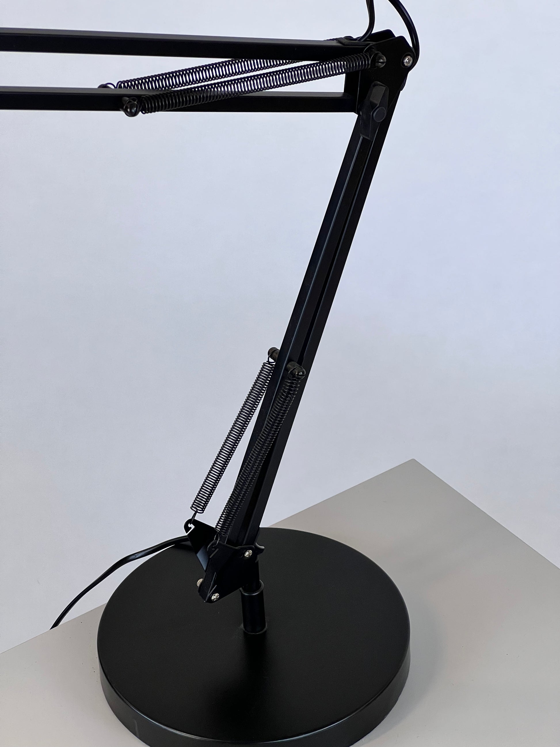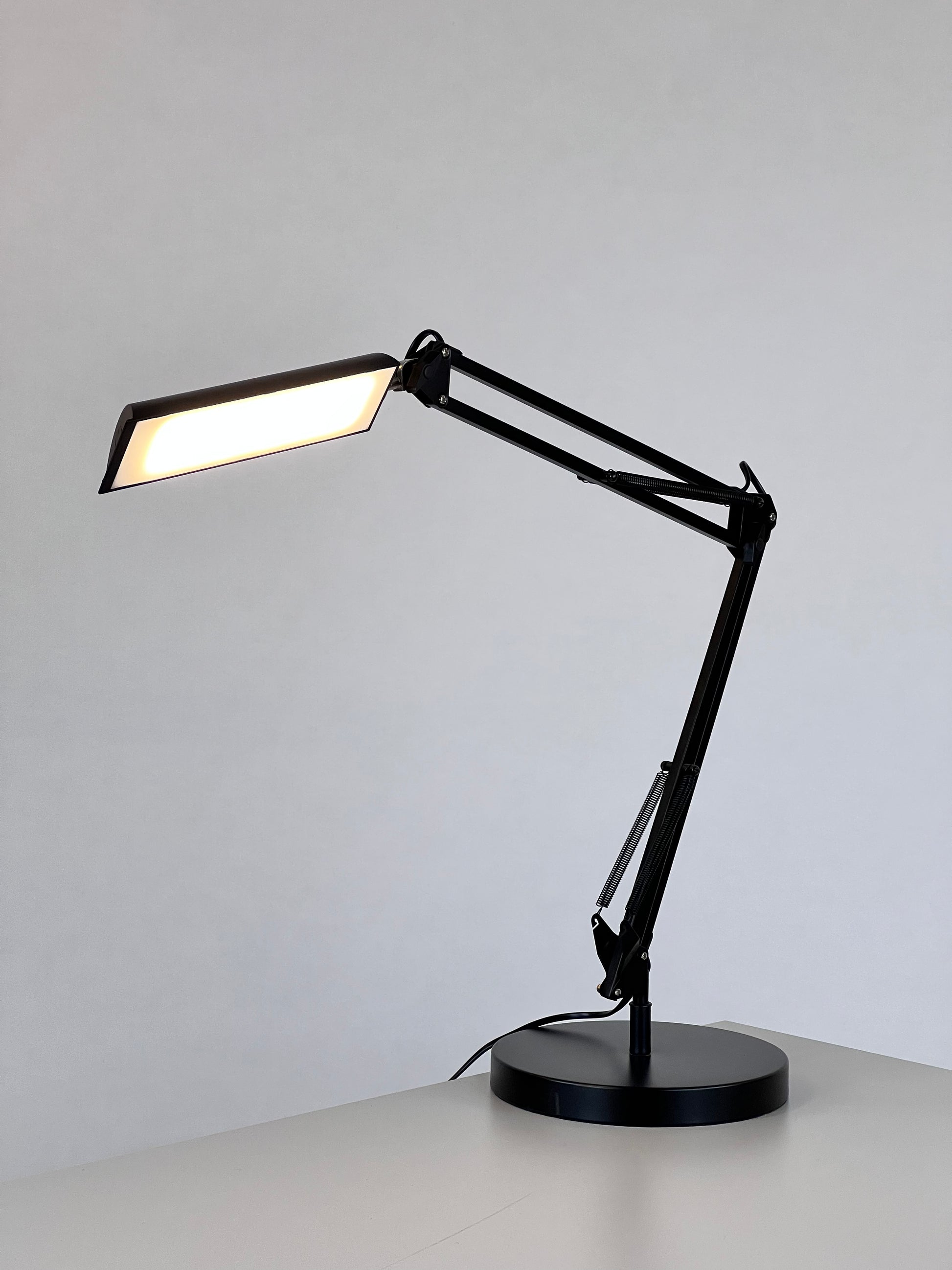 Swingo er den moderne udgave af den kendte og klassiske arkitektlampe. Den parallelførte, fjederbelastede arm gør Swingo let at indstille til et hvert formål. En utrolig populær lampe til såvel arbejds- som hobbybordet. Swingo har en bevægelig arm, med 3 led, via den fjederbelastede arm, kan lampehovedet justeres til vandret position for at undgå direkte blænding. Lampen leveres med både bordfod og bordklemme.