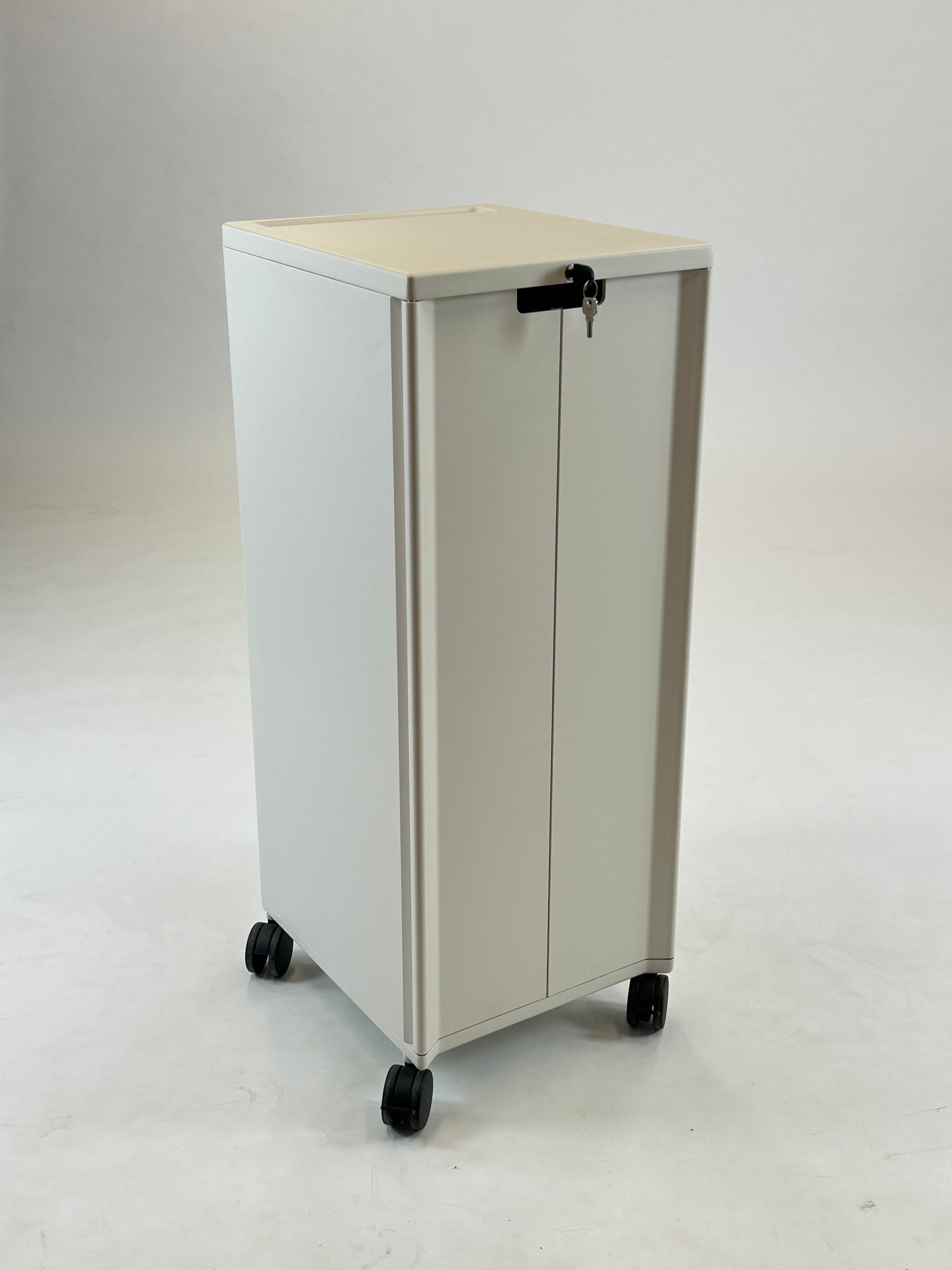 Denne elegante Caddy fra Vitra er en alsidig og låsbar opbevaringsenhed, der kombinerer mobilitet og funktionalitet. Udstyret med hjul og centrallås er den ideel til fleksible arbejdspladser og åbne kontormiljøer, hvor sikker og let tilgængelig opbevaring er afgørende.