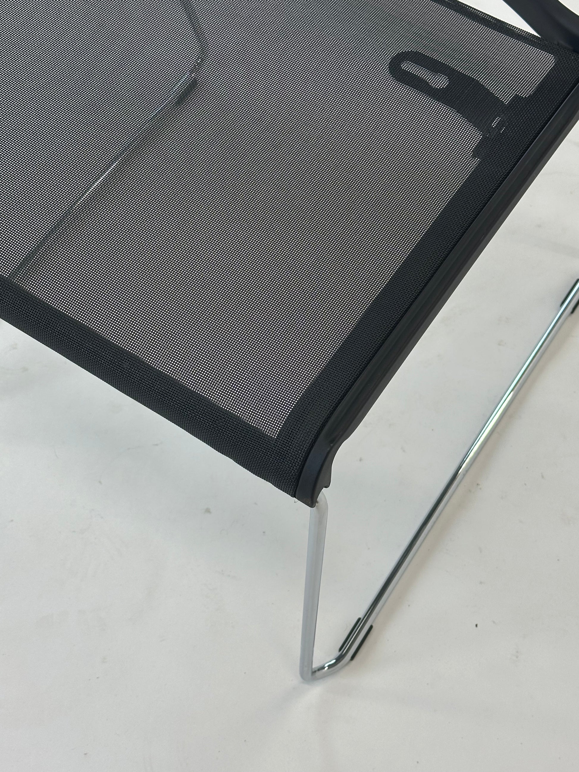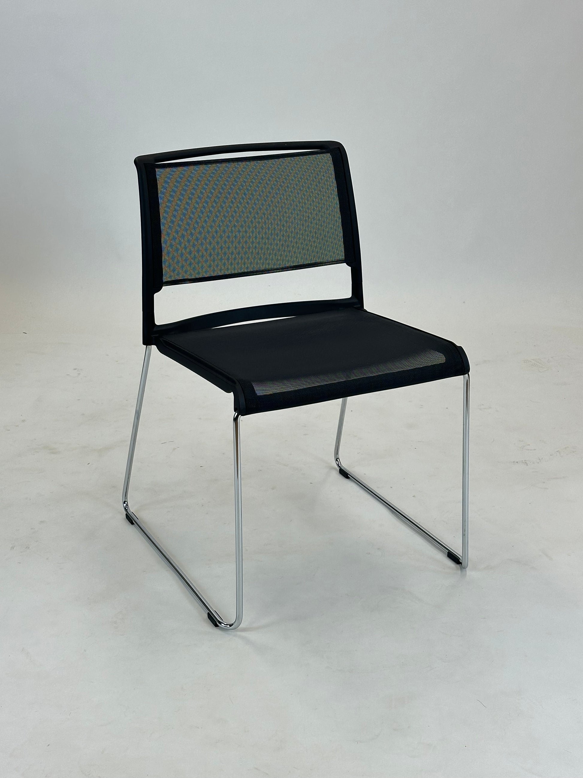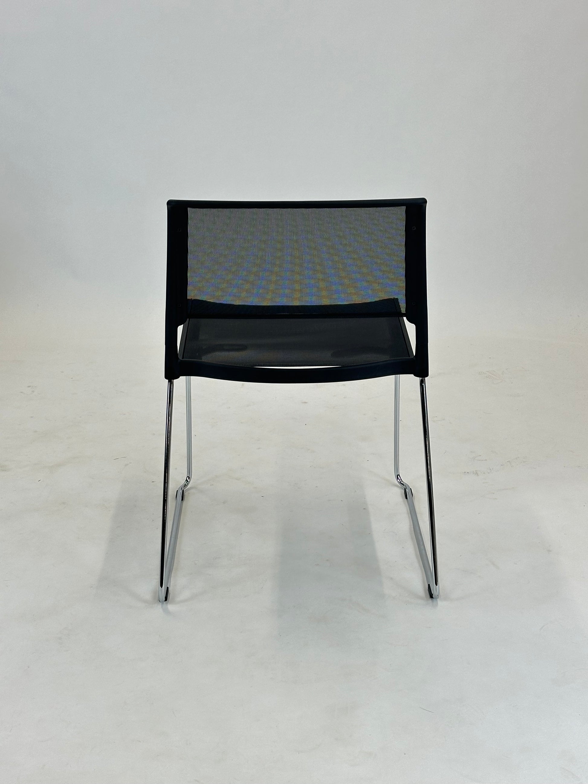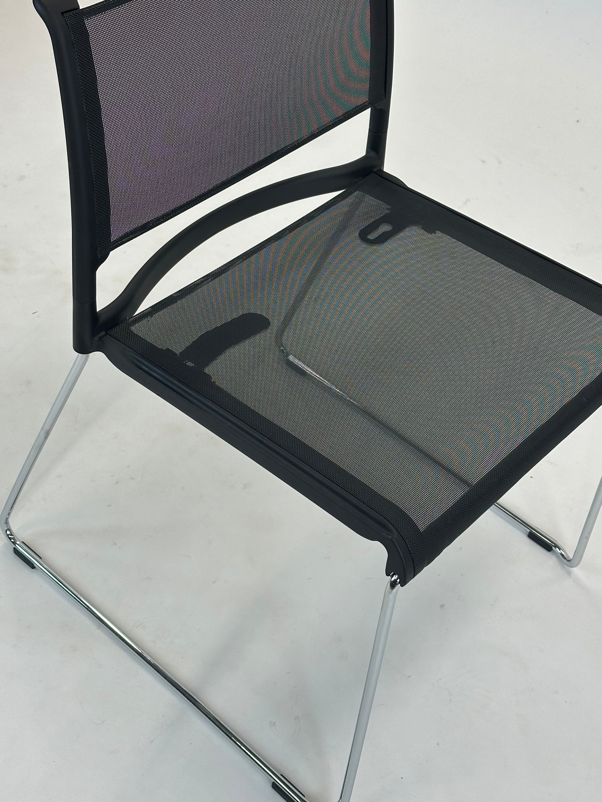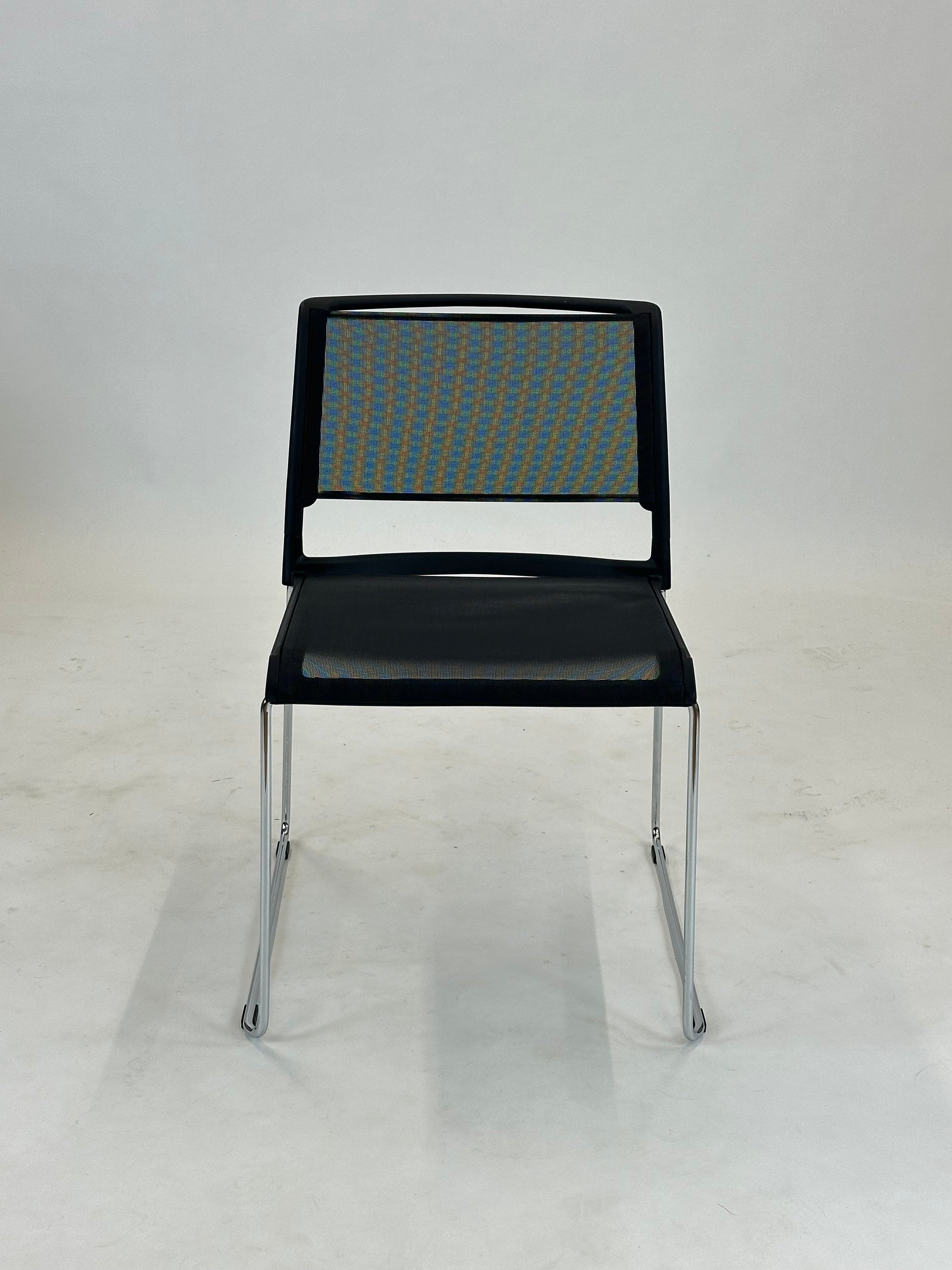 Sæde og ryg er udført i et slidstærkt og åndbart netmateriale, som giver fremragende komfort selv ved længere tids brug. Den åbne struktur skaber desuden et luftigt og moderne udtryk, der passer perfekt ind i nutidens arbejds- og fællesmiljøer. Stellet i forkromet stål giver stolen et elegant og tidløst udtryk, samtidig med at det sikrer stabilitet og lang holdbarhed.